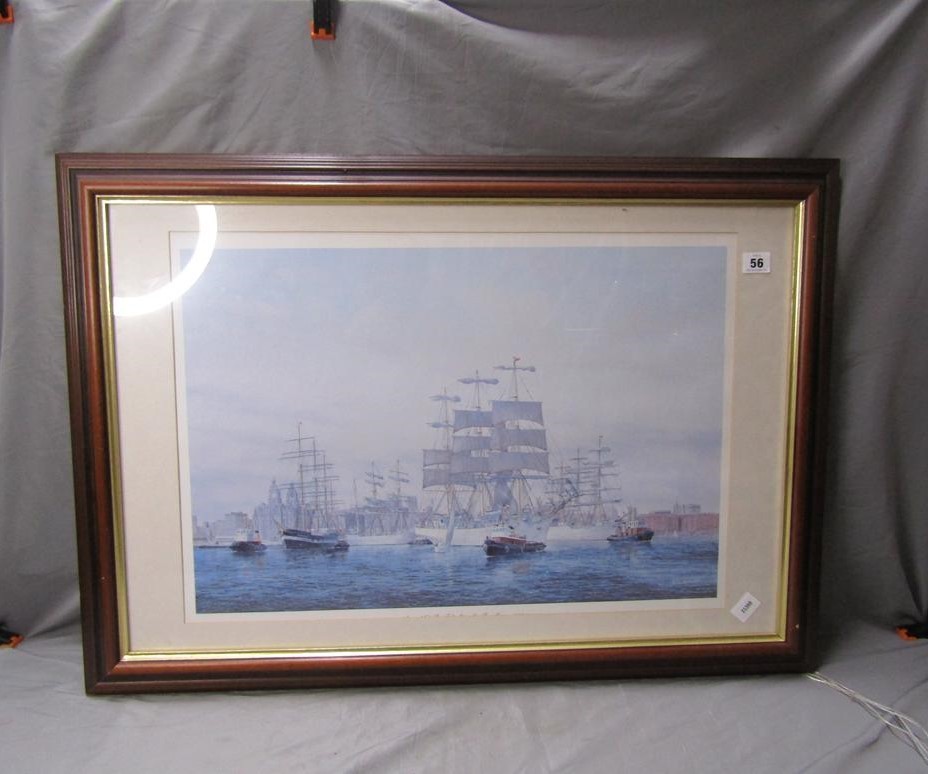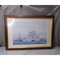 F/G COLOURED PRINT - MOORED SAILING VESSELS