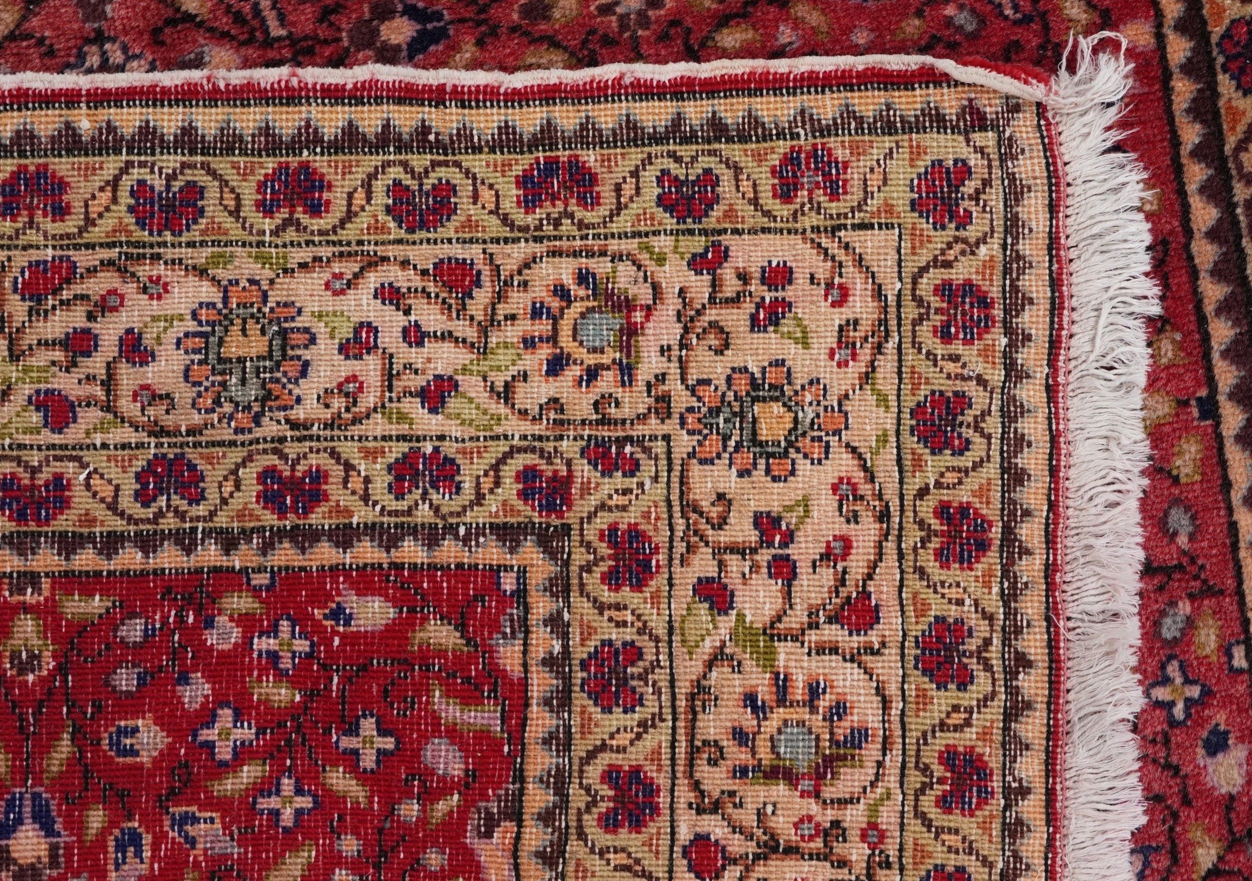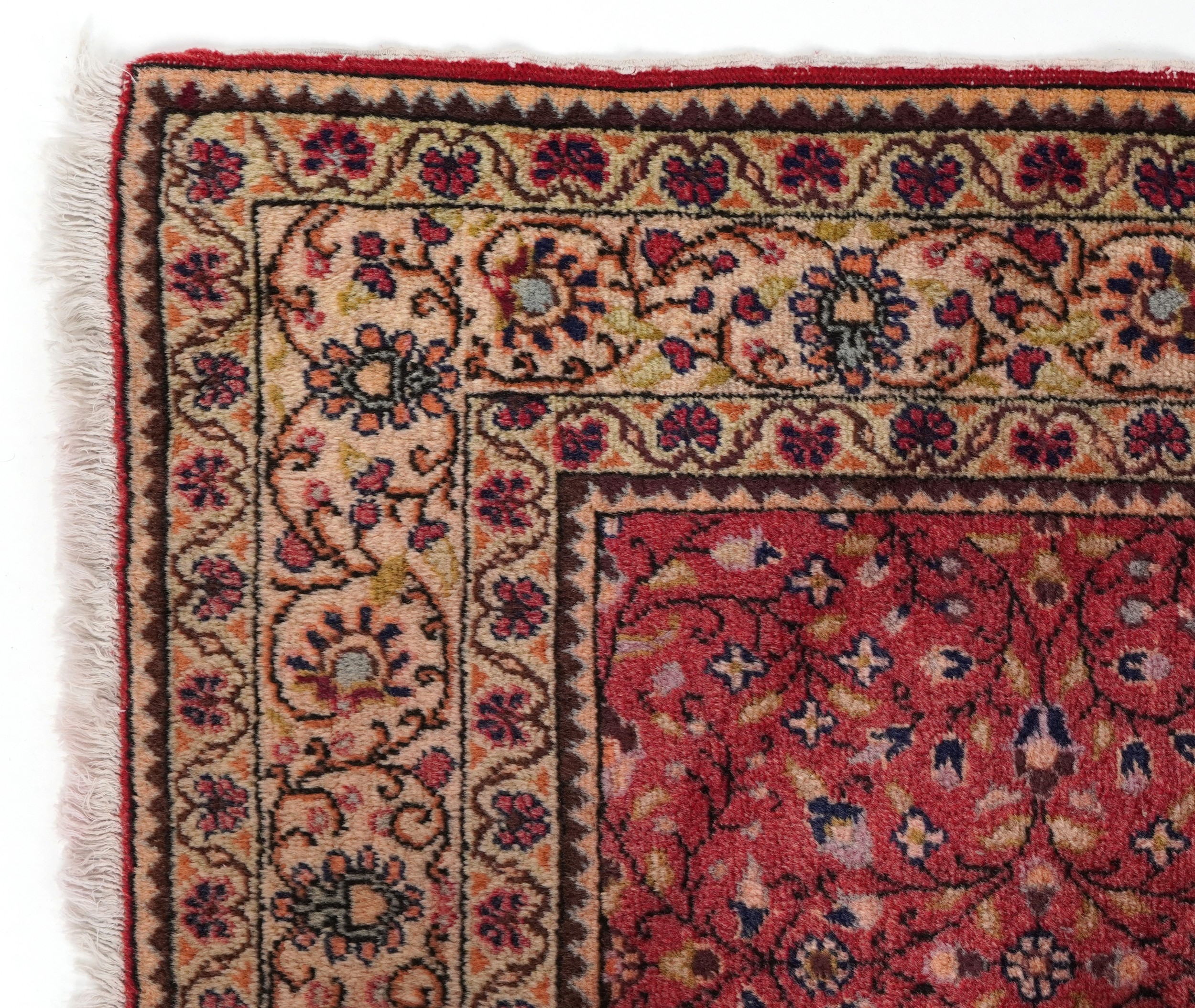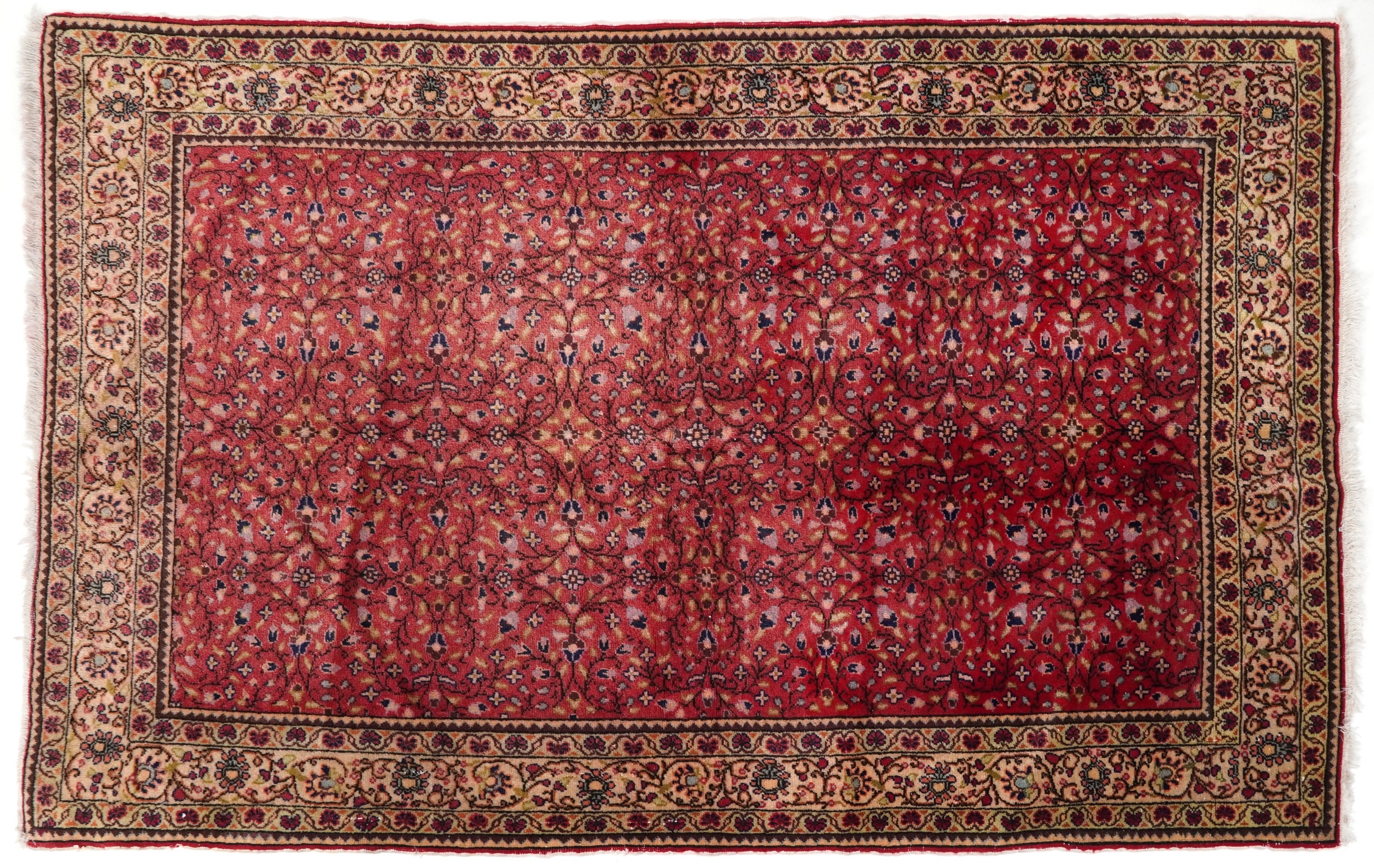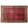 A Persian rug, 20th century, the red field with an overall scrolling flower head design within a complementary ivory border, 177cm x 120cm.