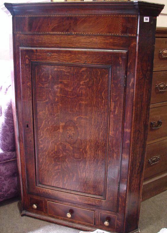 Beautiful Early Georgian Corner Cupboard With Draw Underneath And Inlay Below Pediment127 x 88 x 47