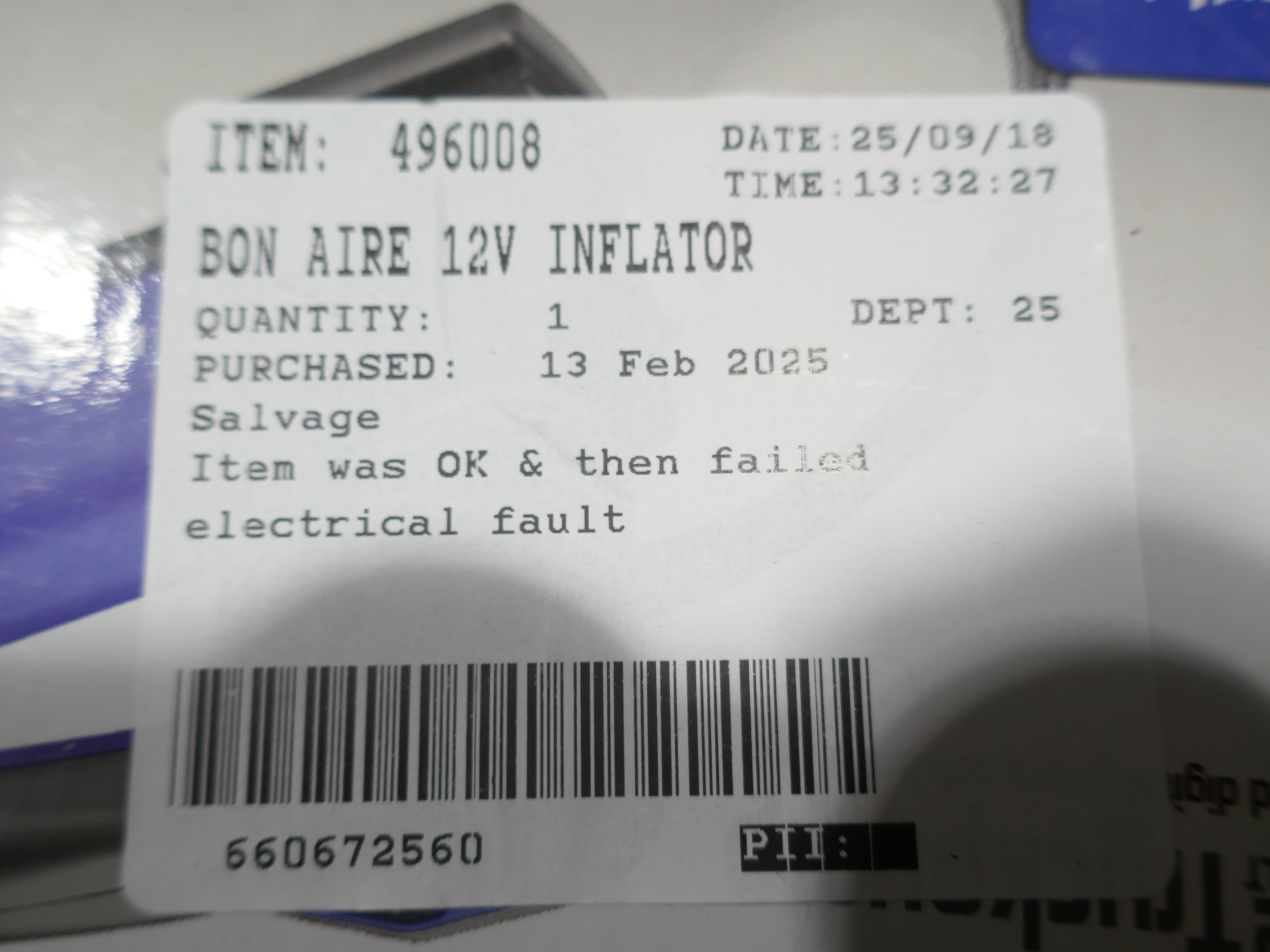 Bon Aire 12v tyre inflator, (372-294) *This lot is subject to VAT