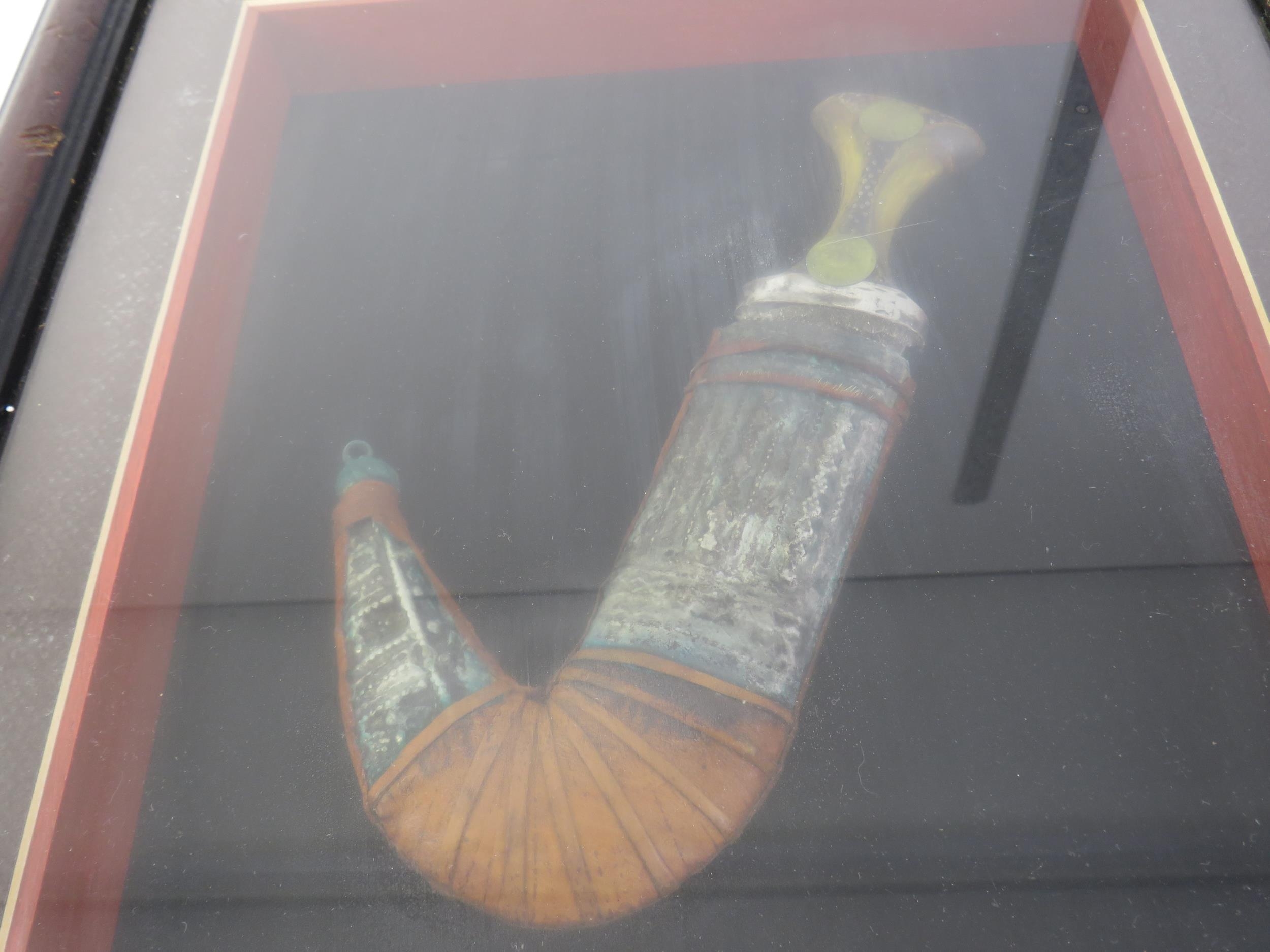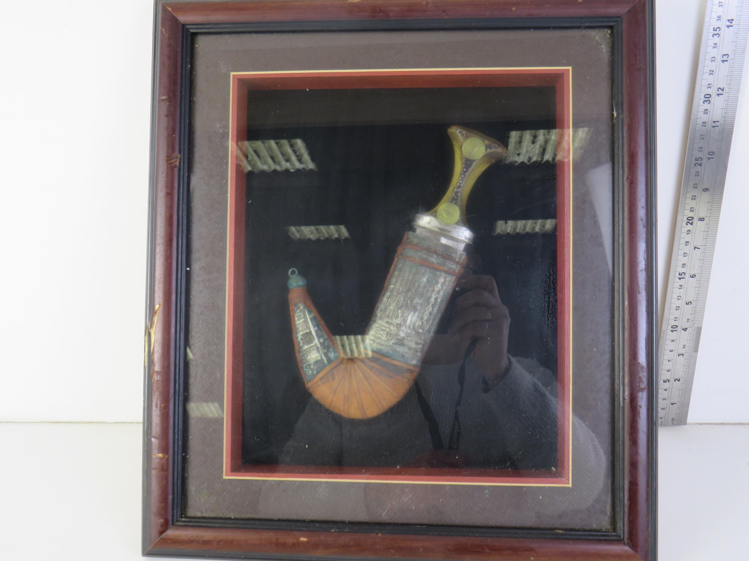 Jambiya yemen dagger bone handle displayed in a frame