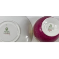 Imagine warm mince pies in front of a roaring fire using this ruby-coloured china - a WEDGWOOD WHITEHALL powder ruby tea service and part dinner sevice to include 6 cups, 6 saucers (15cm), 6 plates (15cm), 2 square cake plates (24x24cm), a milk jug, a sugar bowl (stamped Coronation Year 1954-1954 to base), 6 twin-handled soupbowls with underplates (16cm dia), 6 plates (23cm), 6 plates (27cm) (2 with very light scratch mark)