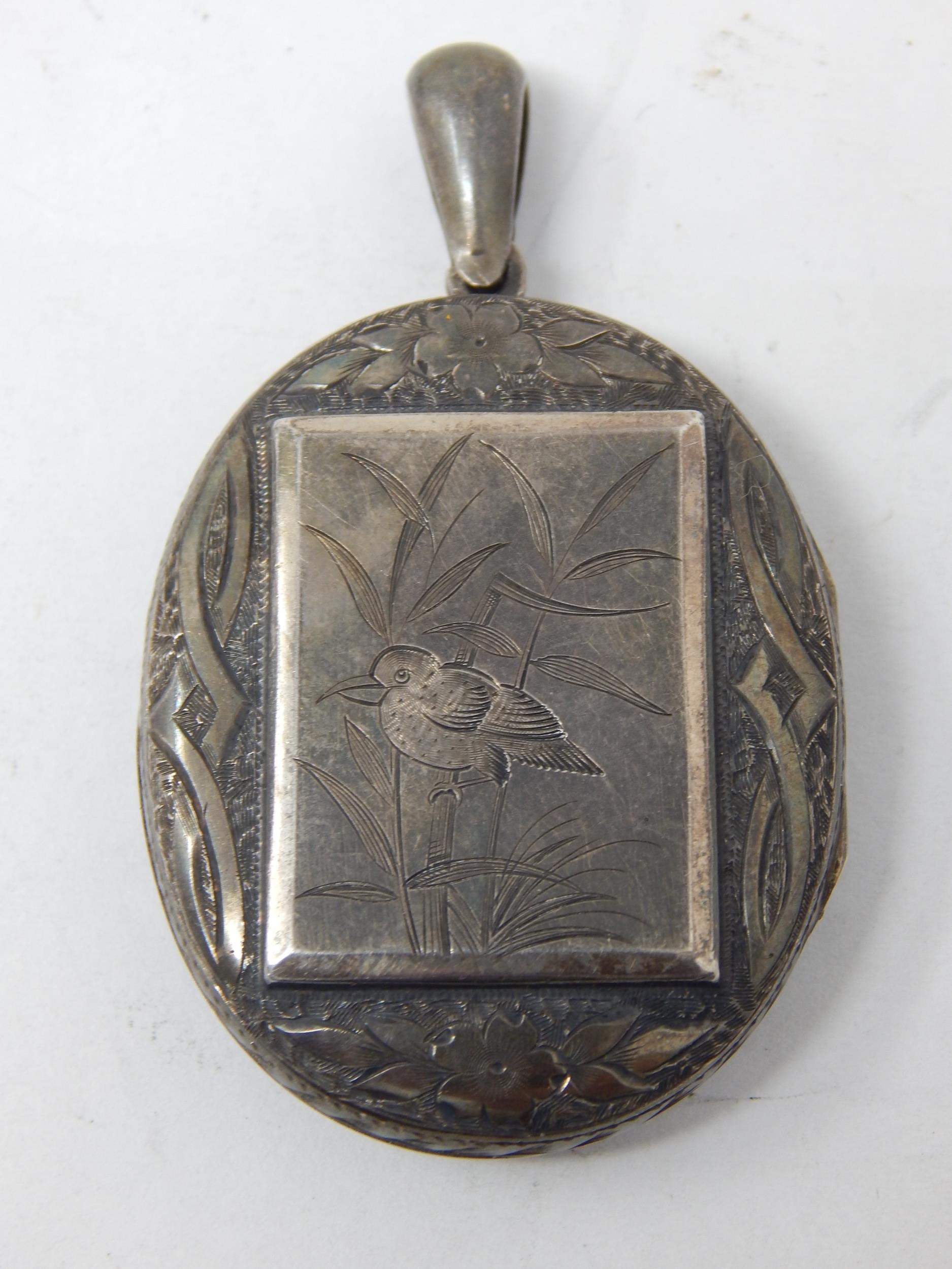 Large C19th Silver Locket: Measuring 4.5cm x 3.4cm not including suspension loop