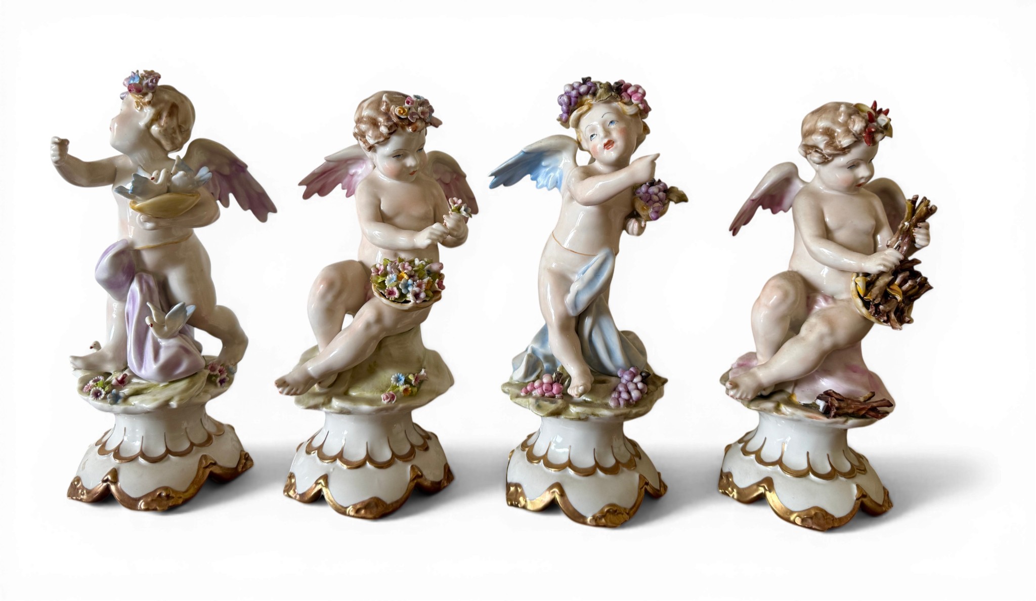 Four Capodimonte cherub figures depicting the four seasons. 23cm h.