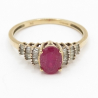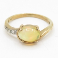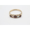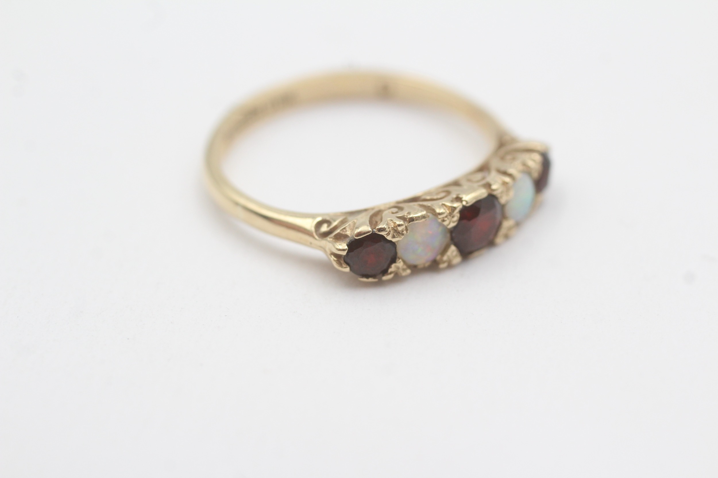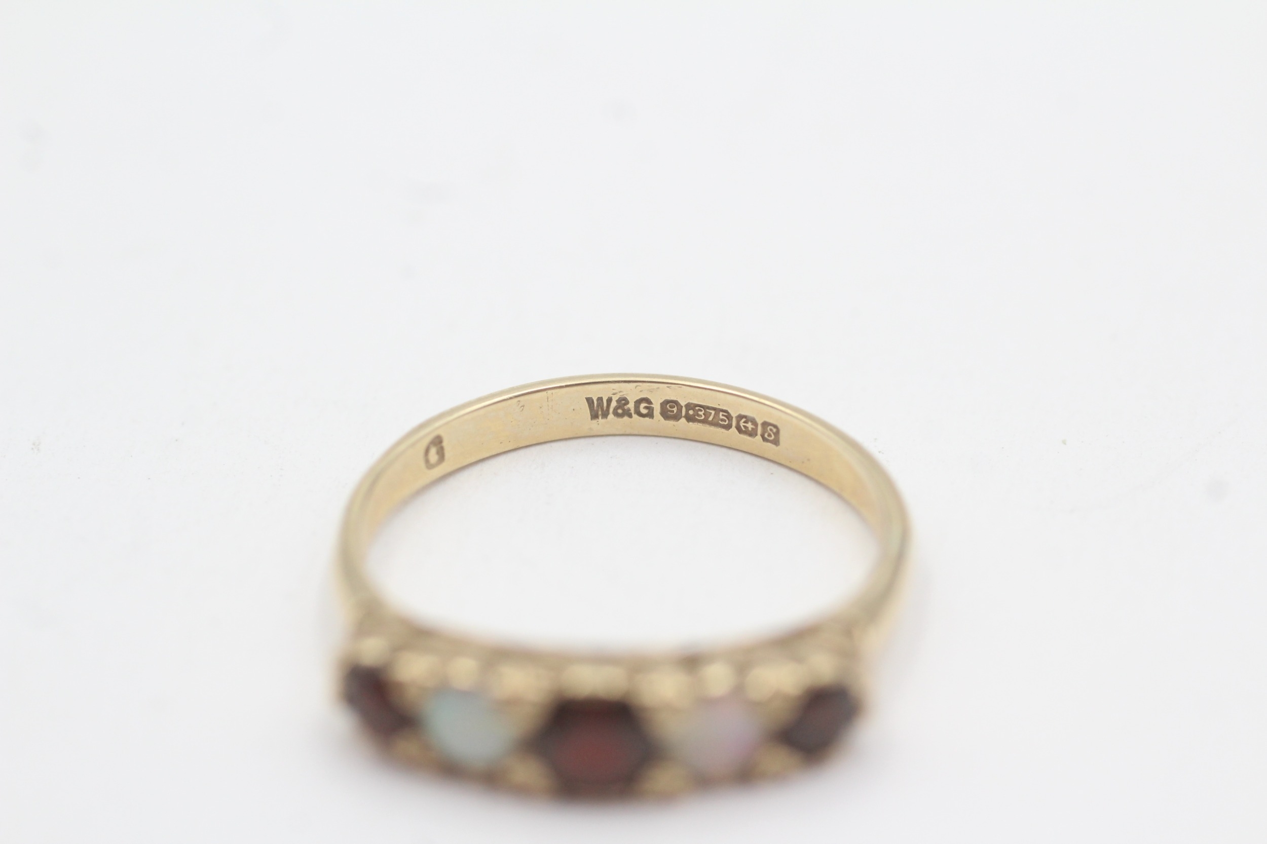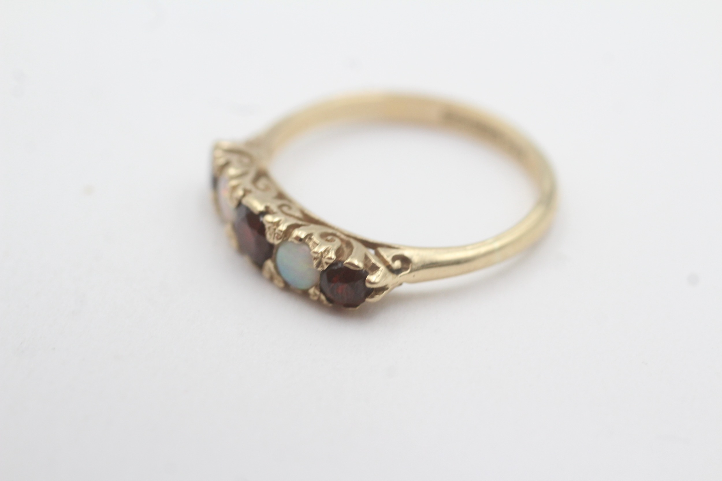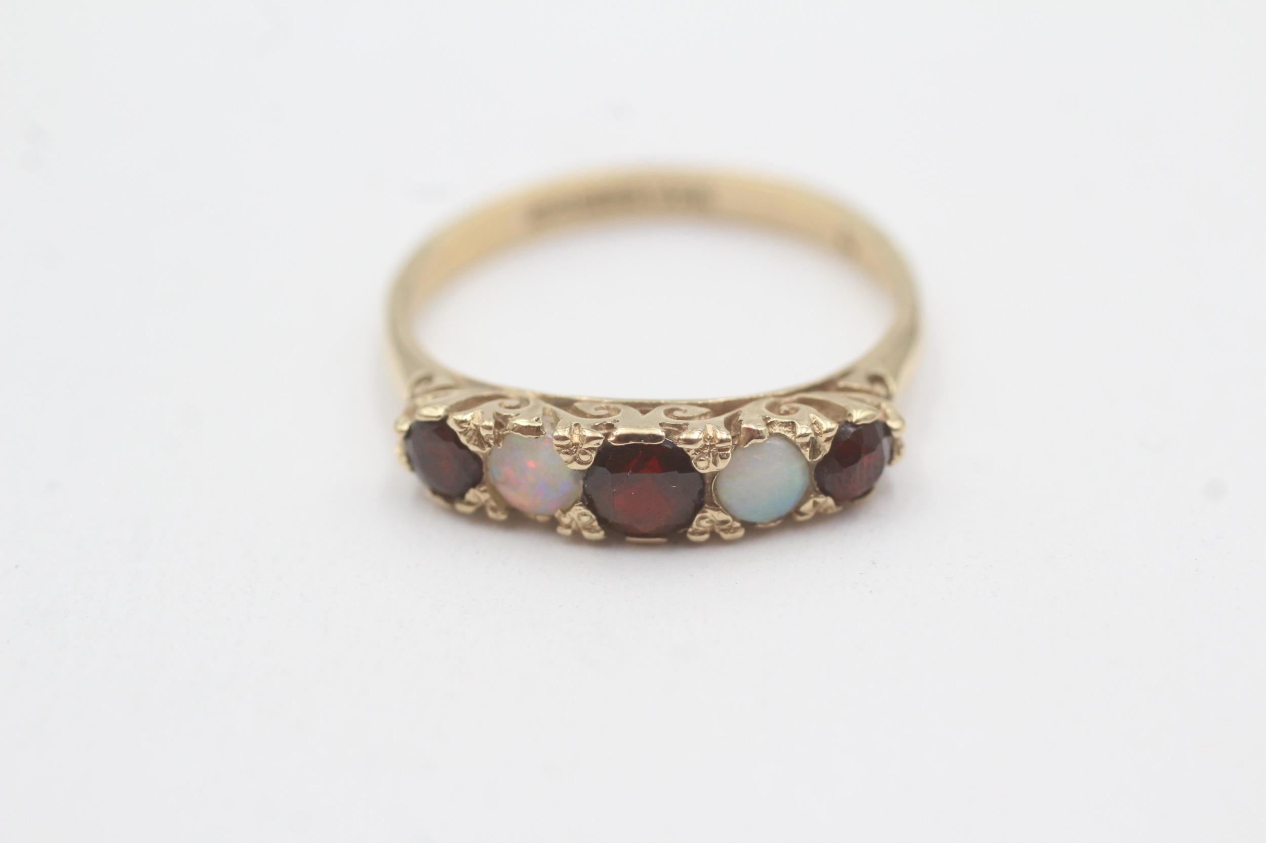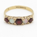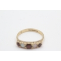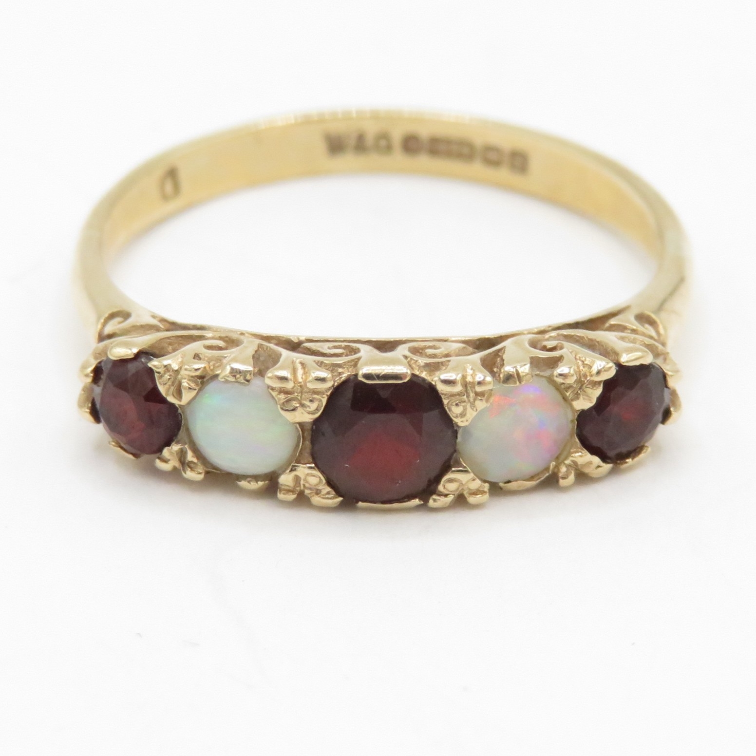 9ct gold garnet and opal five stone ring (2.4g) Size P 1/2