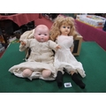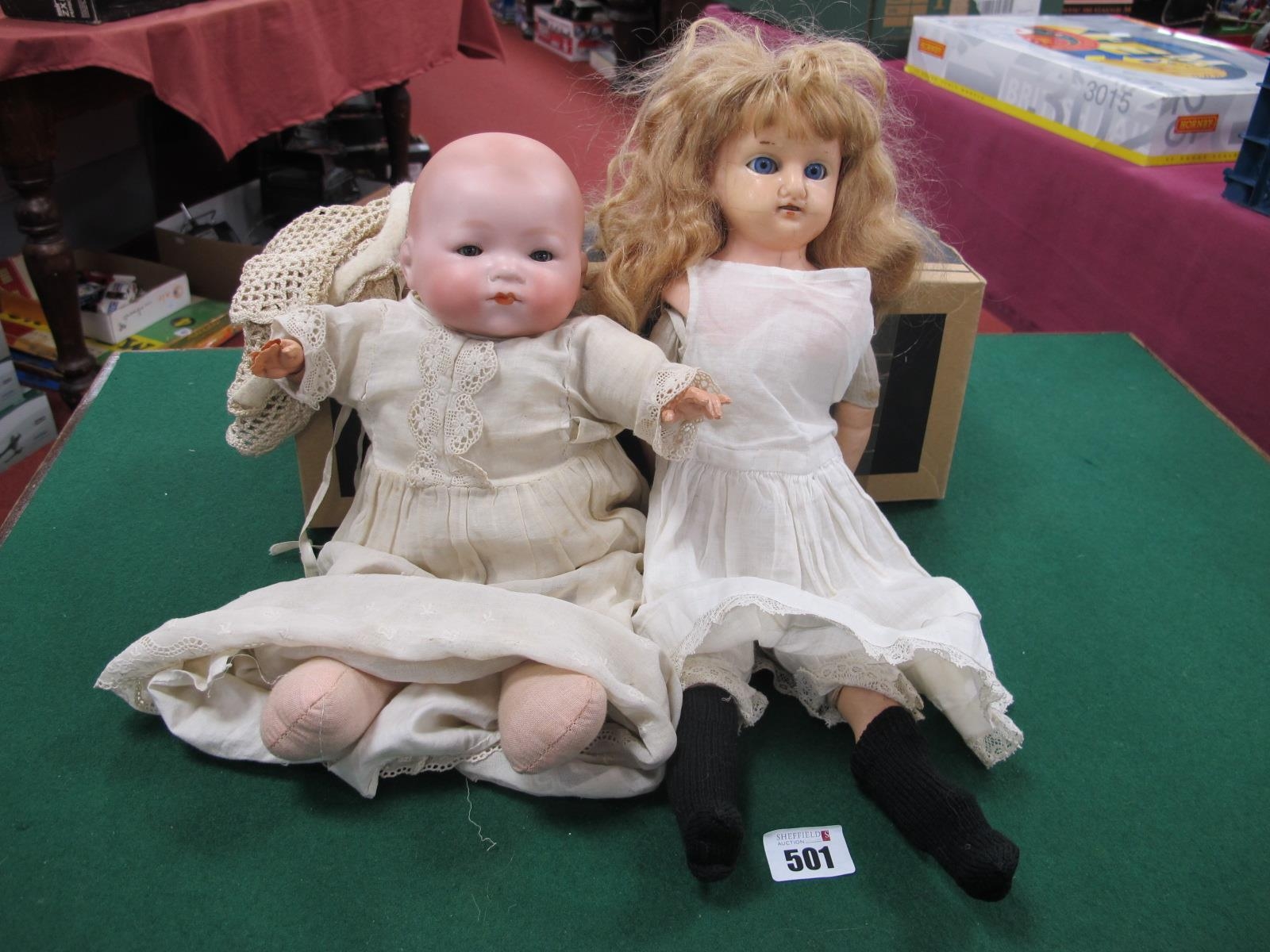 Two Adapted Vintage Dolls, to include a Bisque Headed doll marked A.M, cloth body, plastic hands (damaged).
