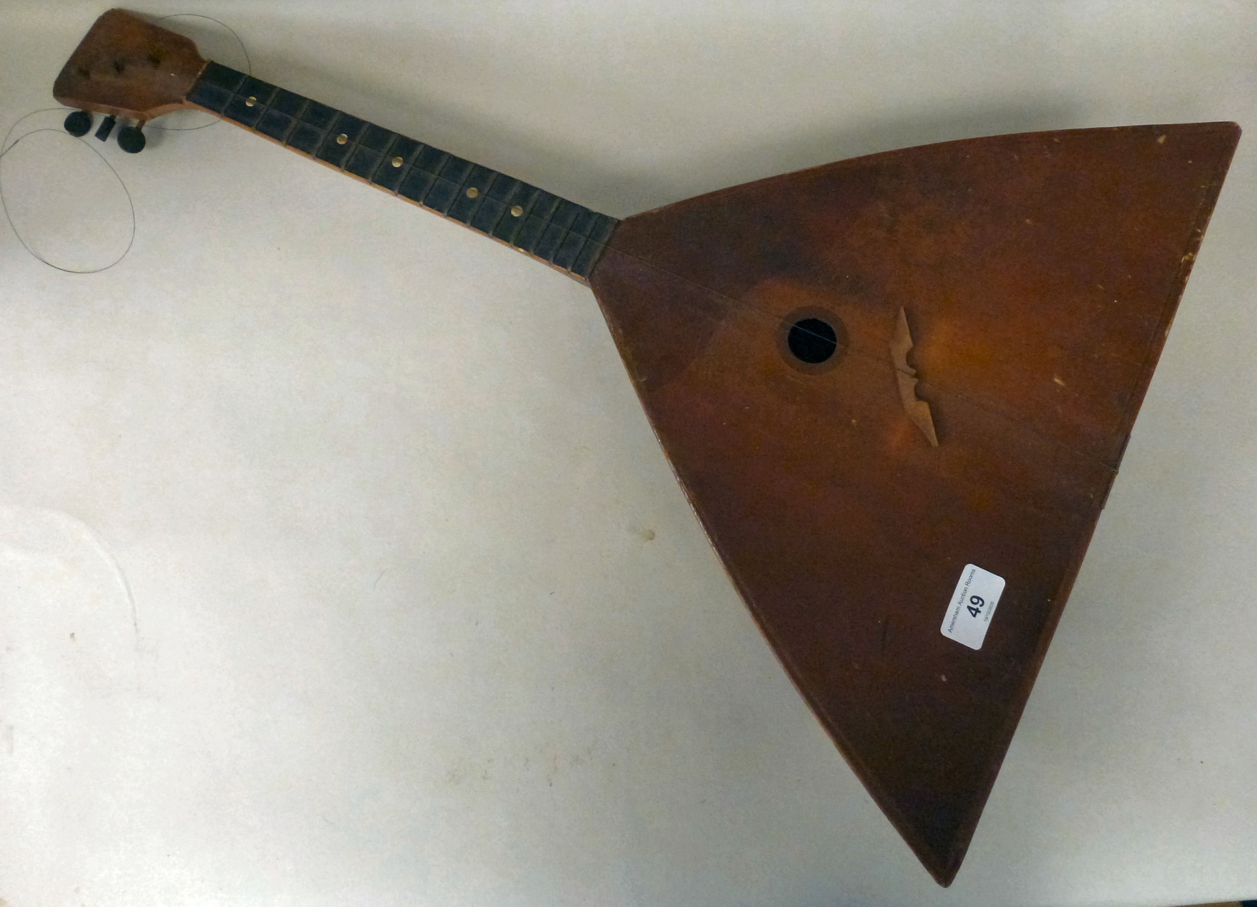 A Russian wooden balalaika of triangular form