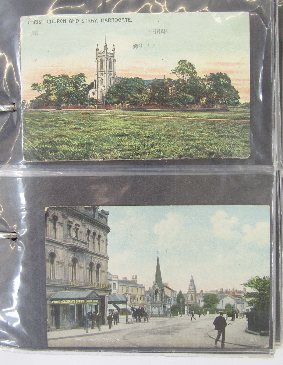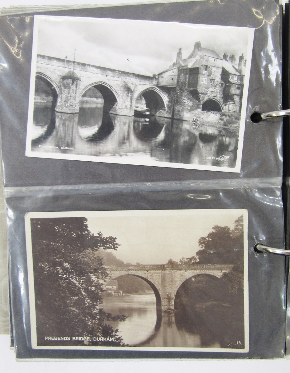 Early 20th century and later postcards including UK topographical scenes, Winter Gardens Sunderland, Clifton Suspension Bridge Bristol, Wells market place, early 20th century French cards including Eiffel tower, scenes of Barcelona and Monserrat (3 albums)