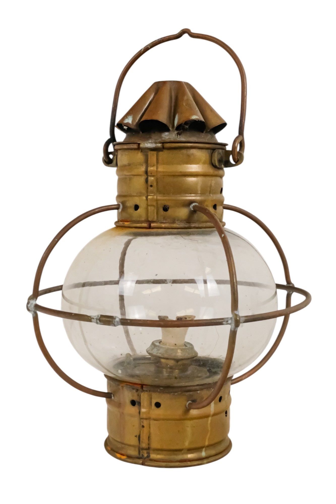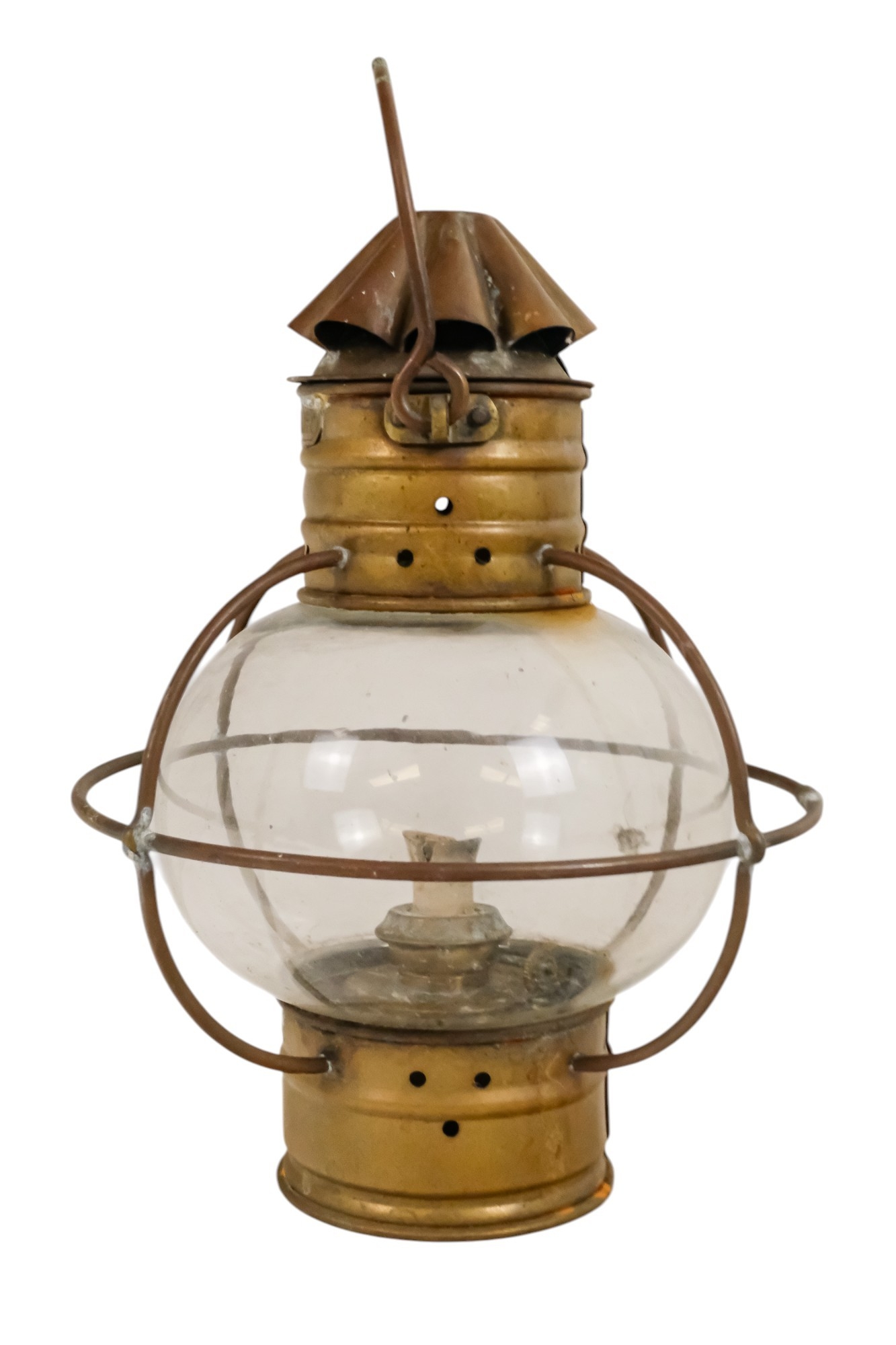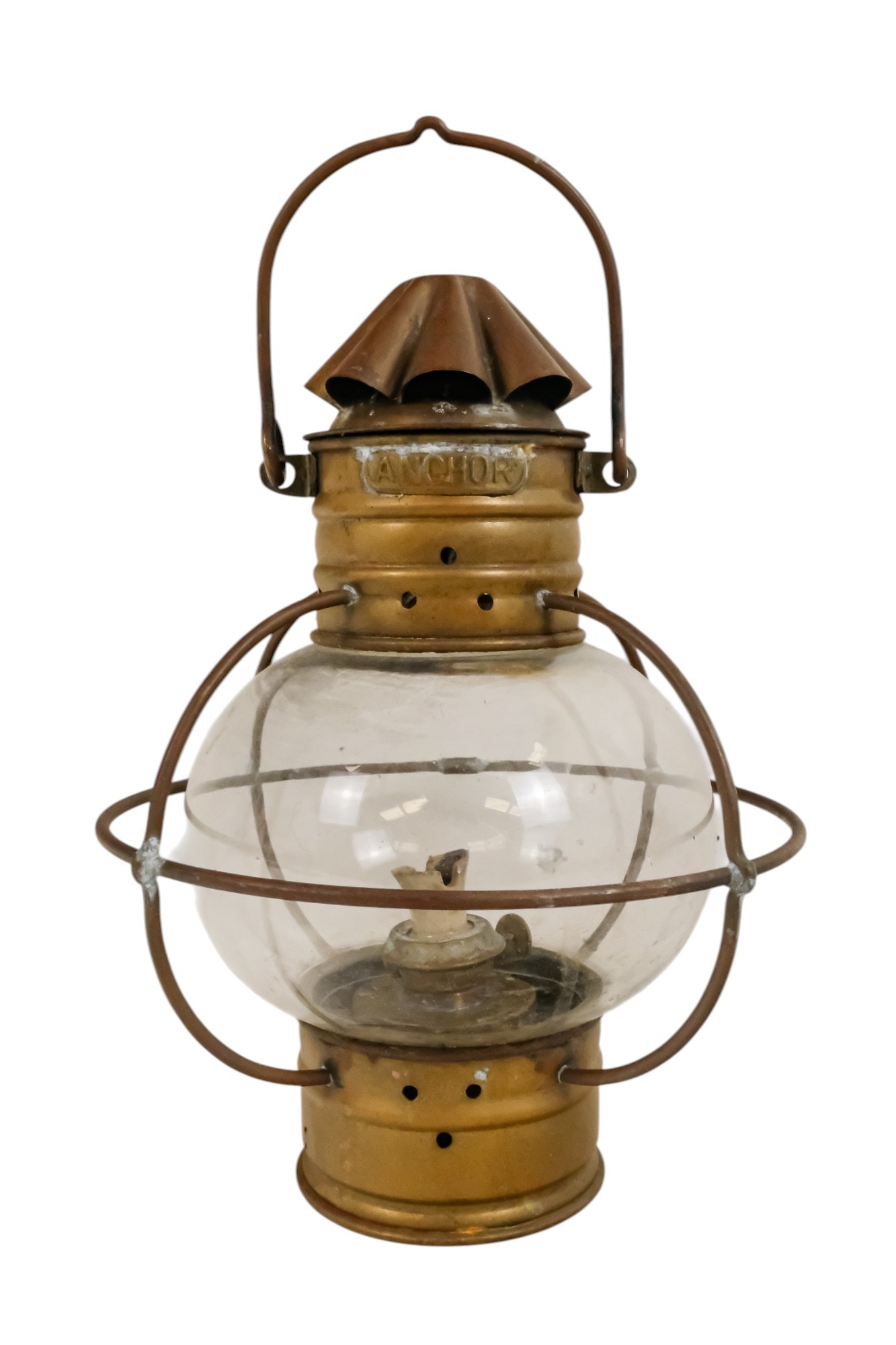 An early 20th century brass anchor light - with clear glass, 32cm high.