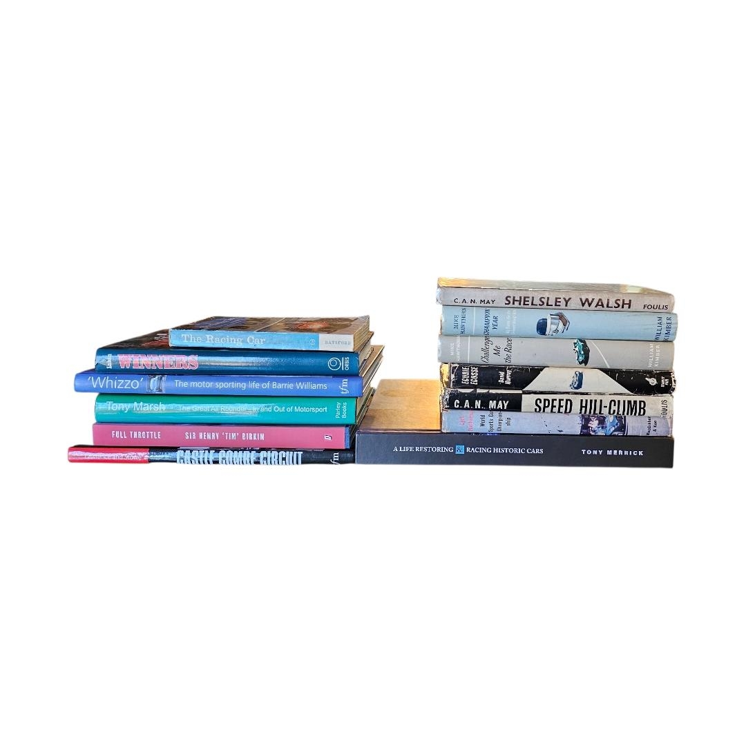 Titled ‘A Life Restoring and Racing Historic Cars’, published 2020, together with a collection of motor racing books including ‘World Sport Car Championship’, ’Speed Hill Climb David Murray ‘Ecurie Ecosse’, ‘Challenge Me The Race’, ‘Winners’, by Brian Laban and a set of ‘The Amateur Mechanic’ hardback books.