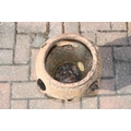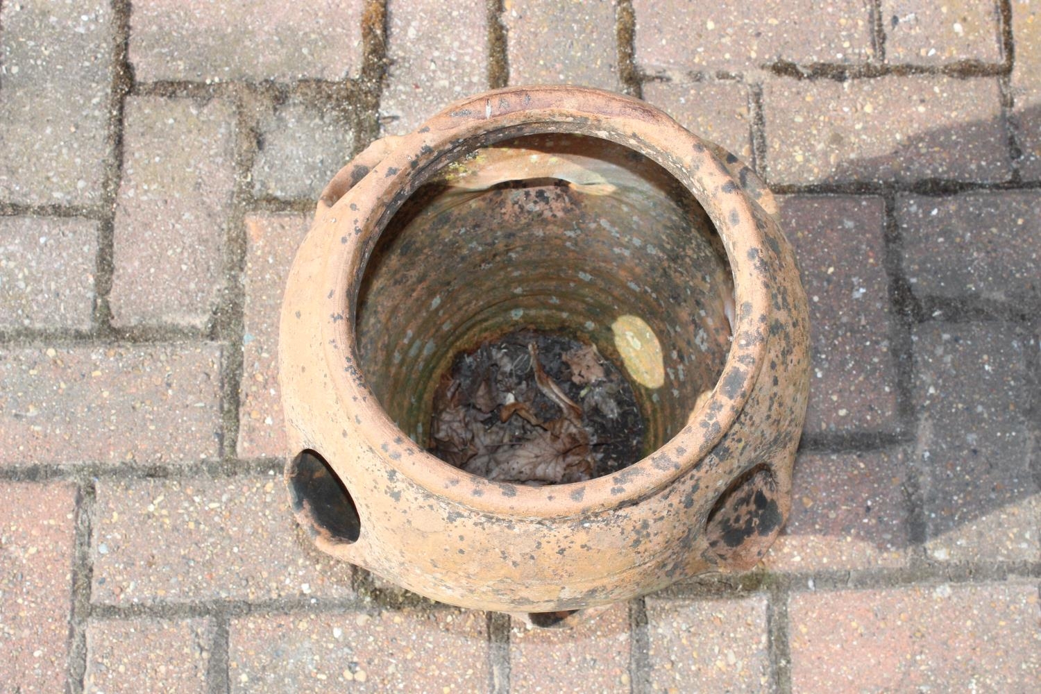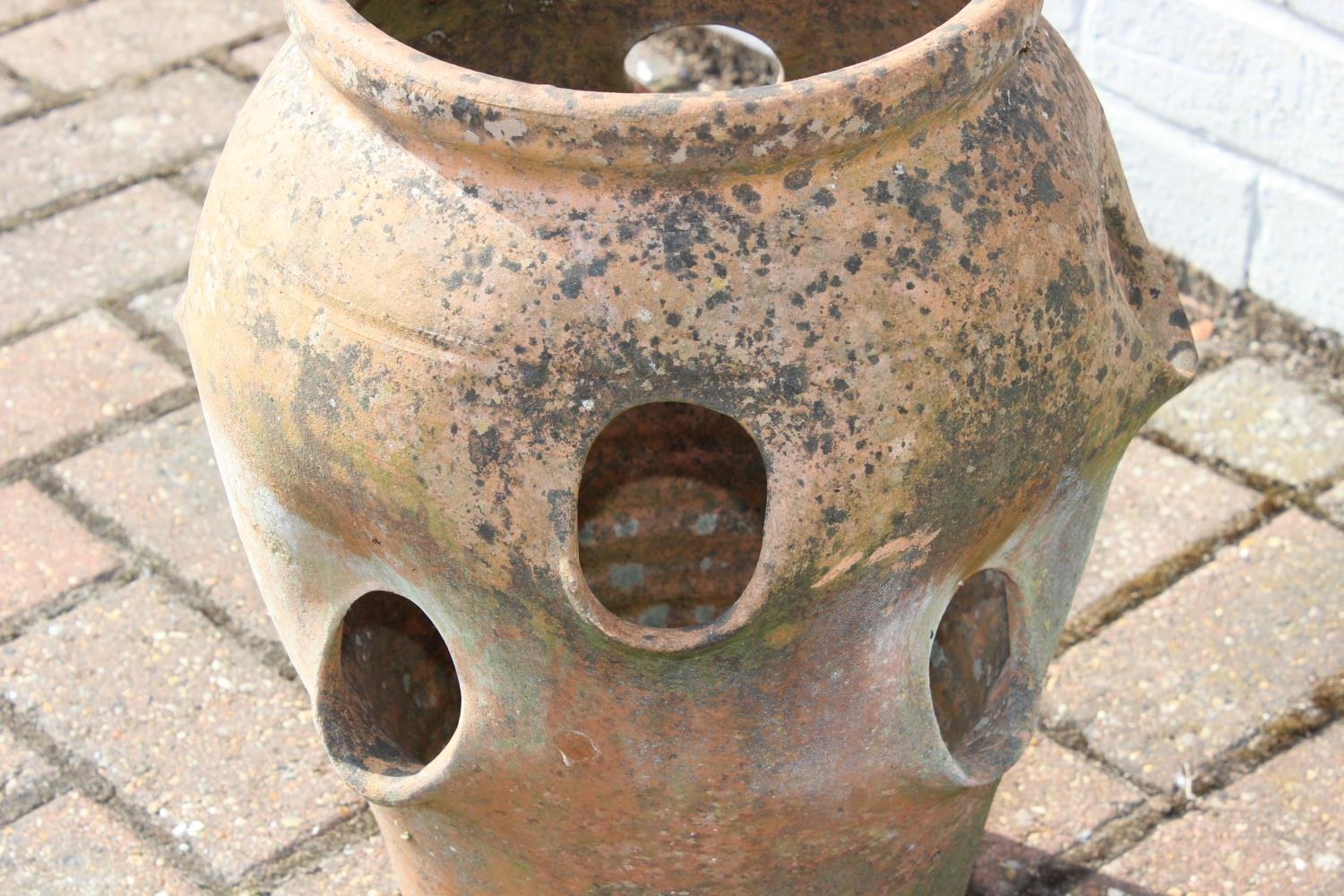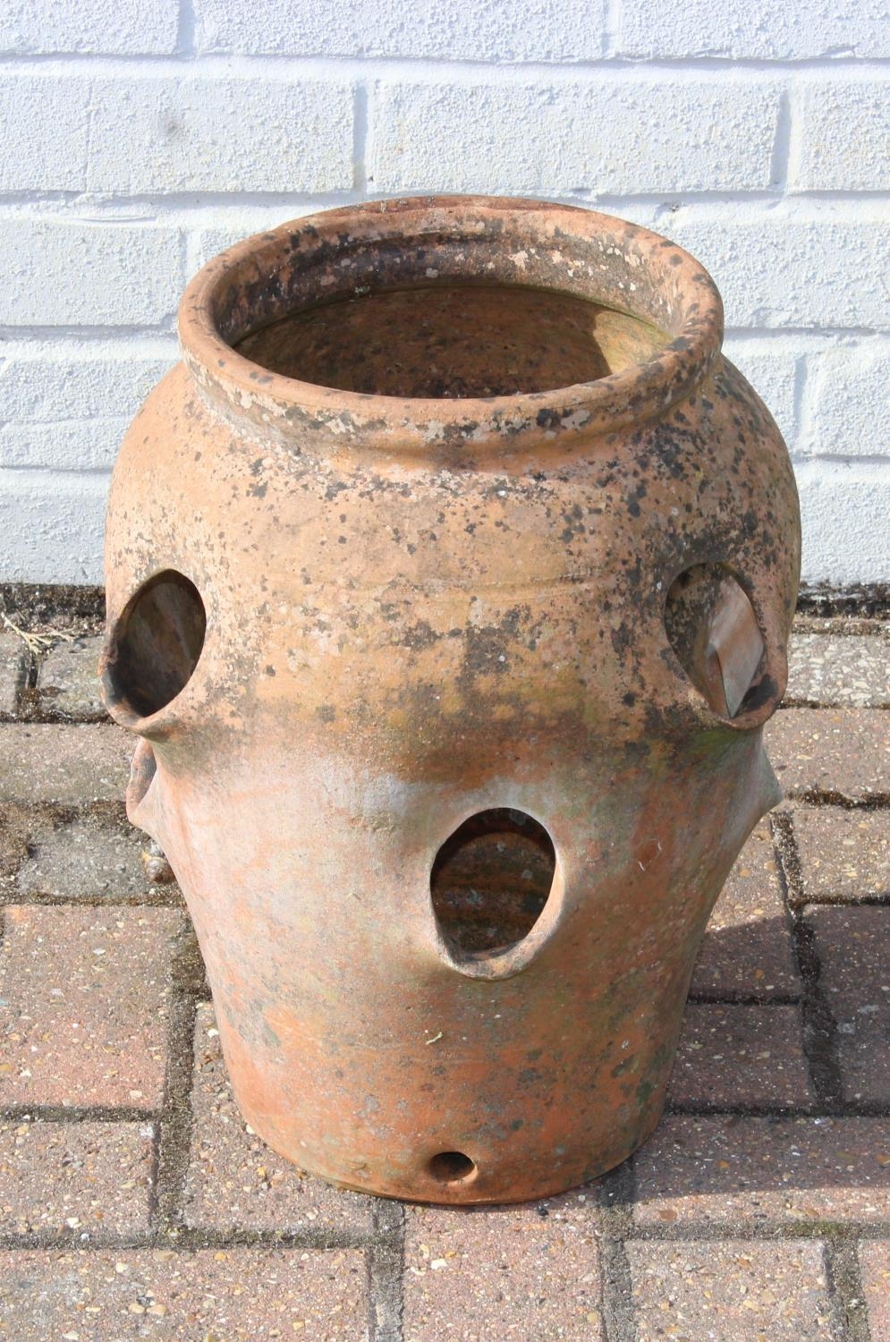 A vintage weathered terracotta garden strawberry planter, 42cm tall, one of four available in the sale