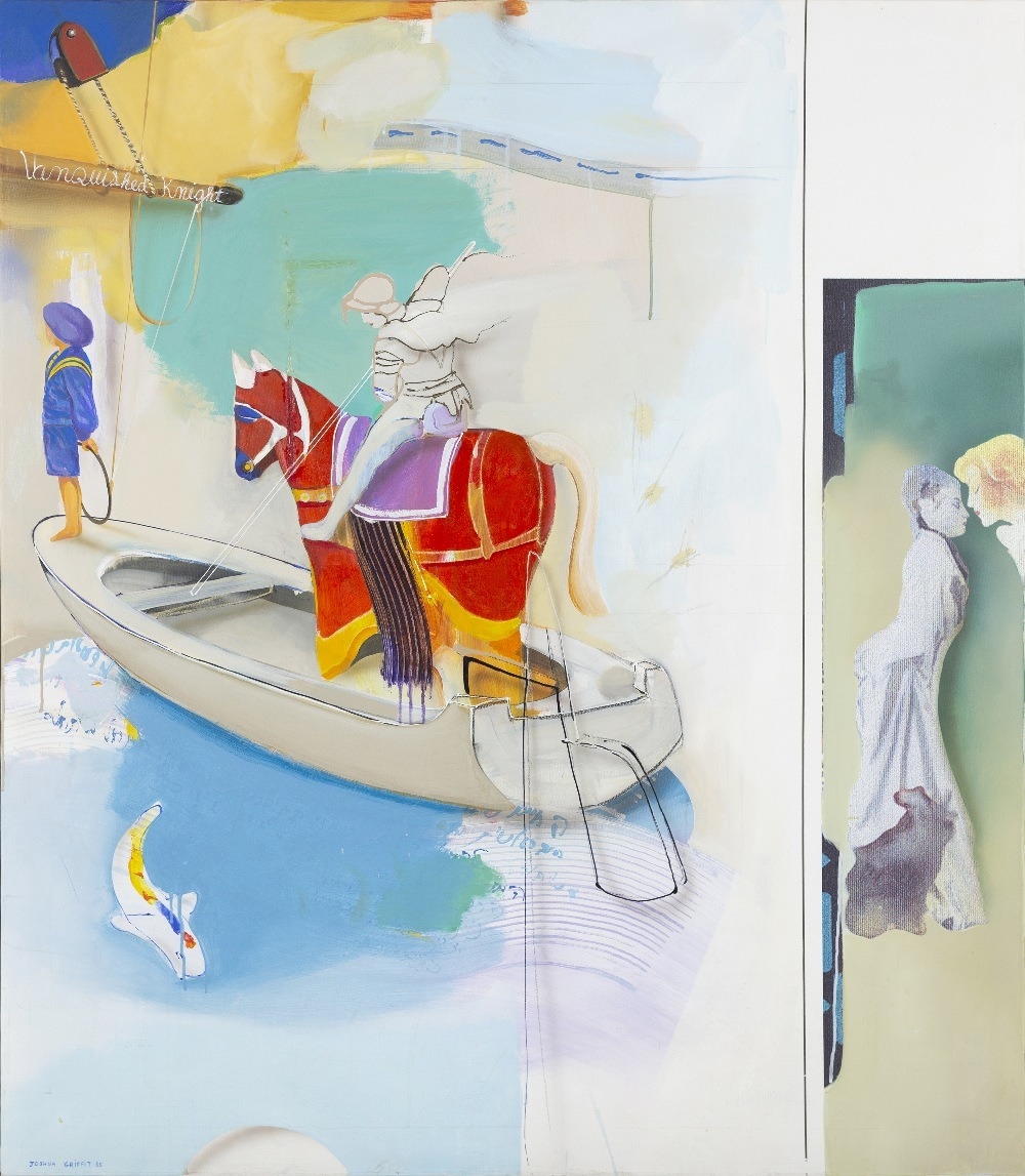 oil on canvas, signed and dated lower left 'Joshua Griffit 95', titled upper left 'Vanquished Knight', 140 x 121.8 cm (VAT Charged on the Hammer Price)