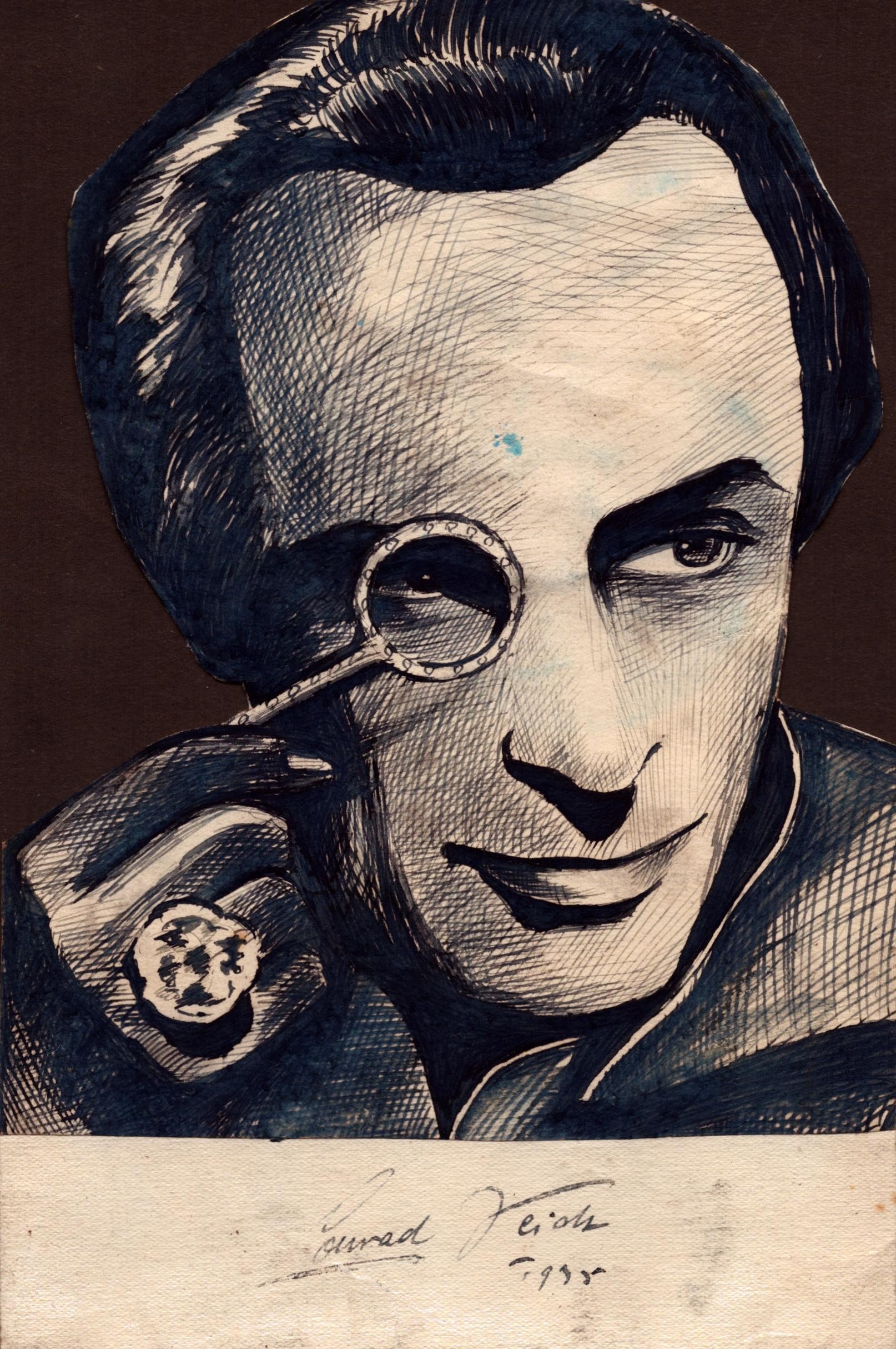 Conrad Veidt signed 9x6inch sketch dated 1935.