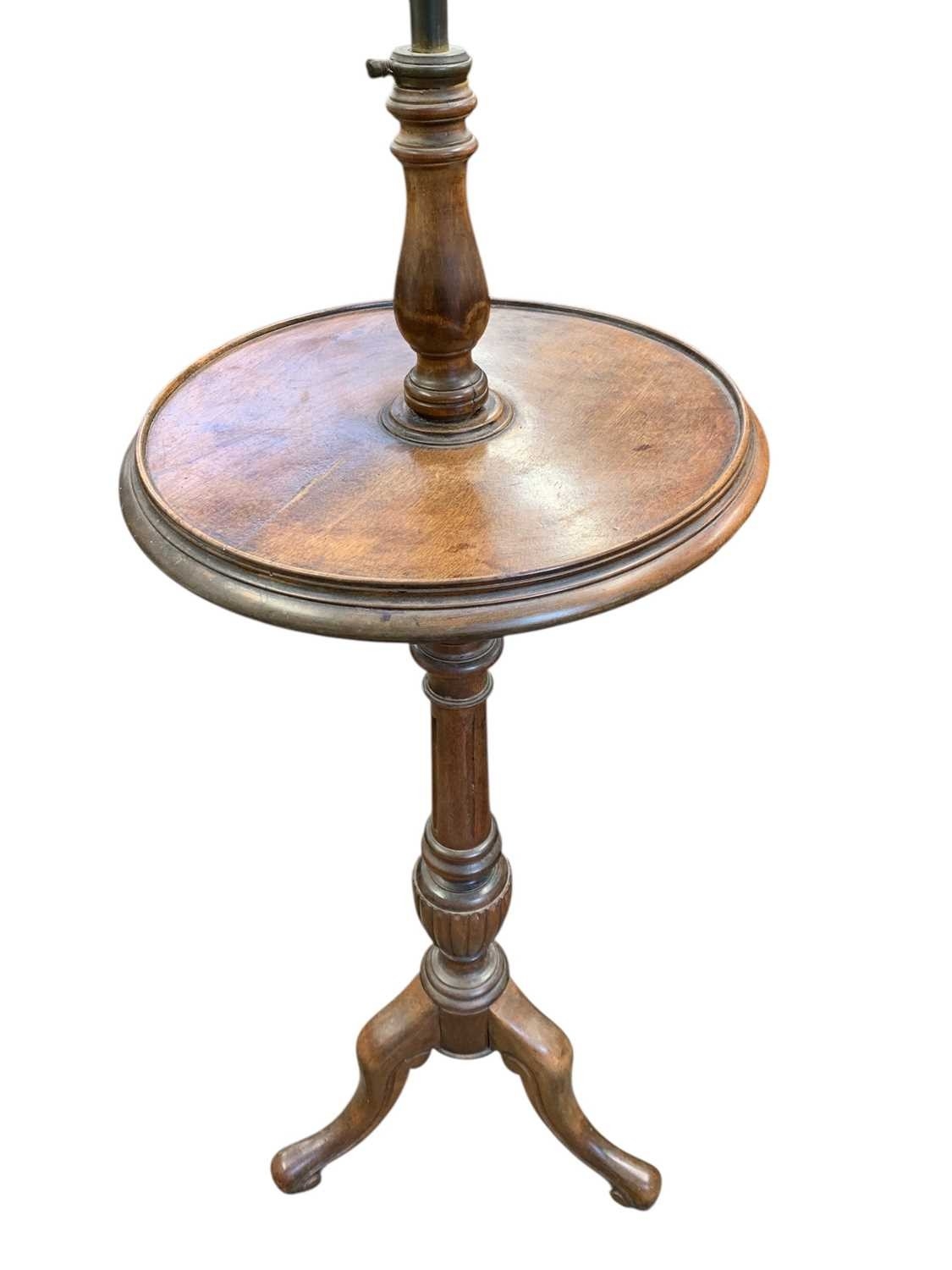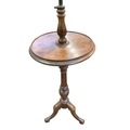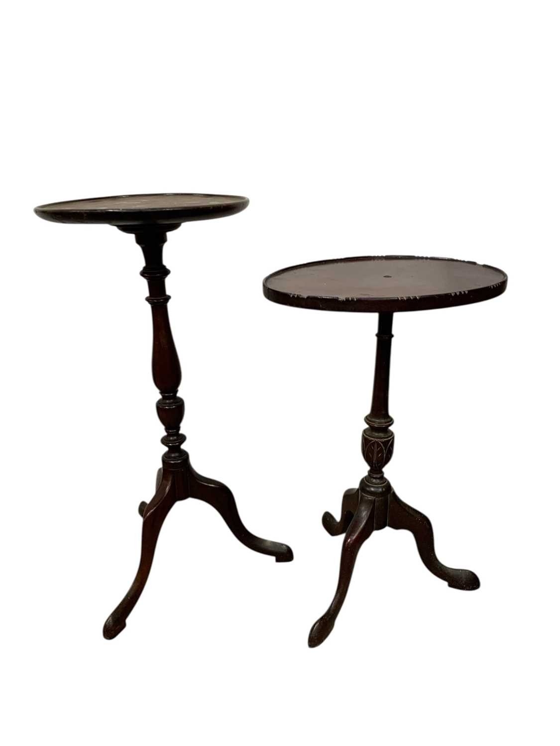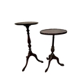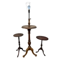 A mahogany and stained beech tripod lamp table. Early 20th century, height 129cm, together with two wine tables (3).