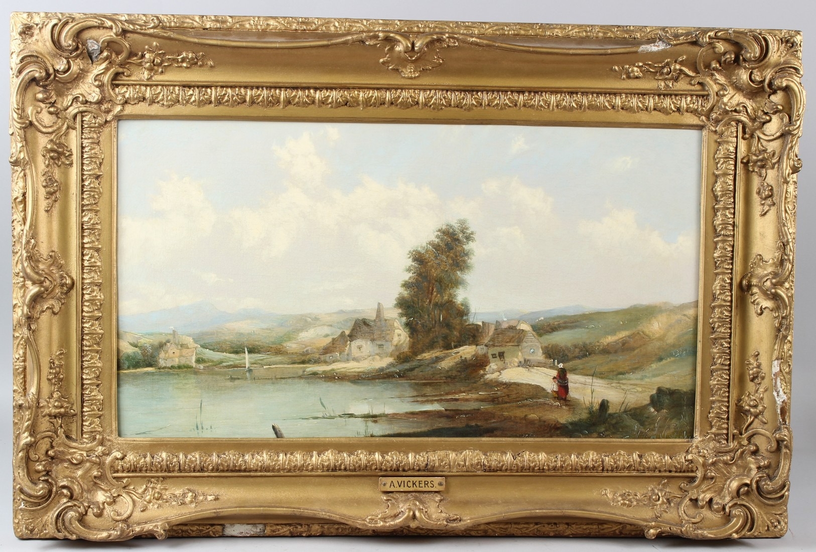ALFRED VICKERS River landscape oil on canvas 36 x 65.5cm