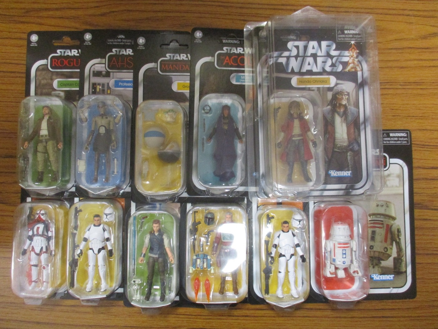 Star Wars. Hasbro. The Vintage Collection figures range, generally mint in near mint bubble packs, includes Cal Kestis, Captain Cassian Andor, Cobb Vanth (Mandalorian Armor), Hondo Ohnaka, etc. Qty 11 (½B)