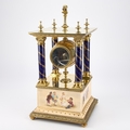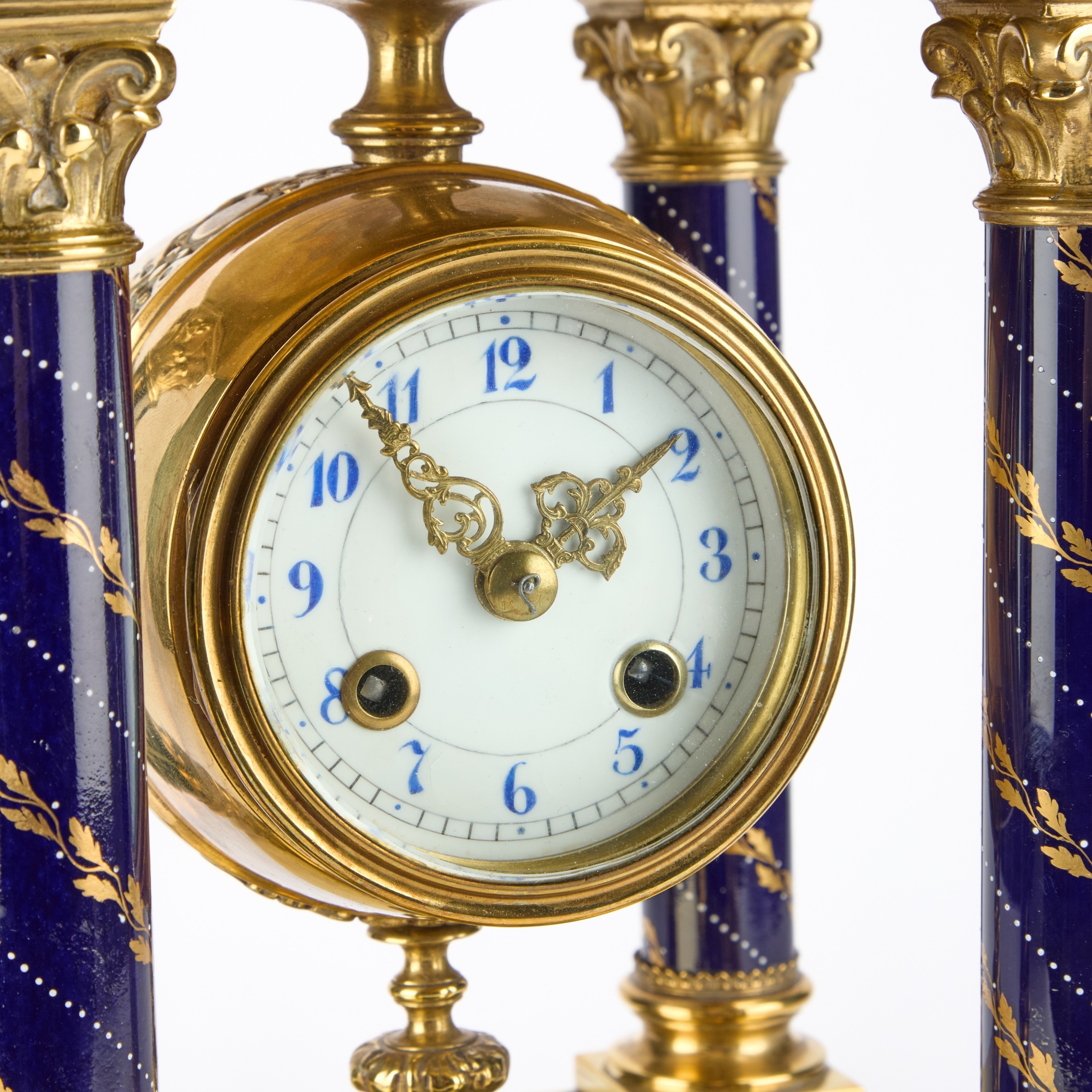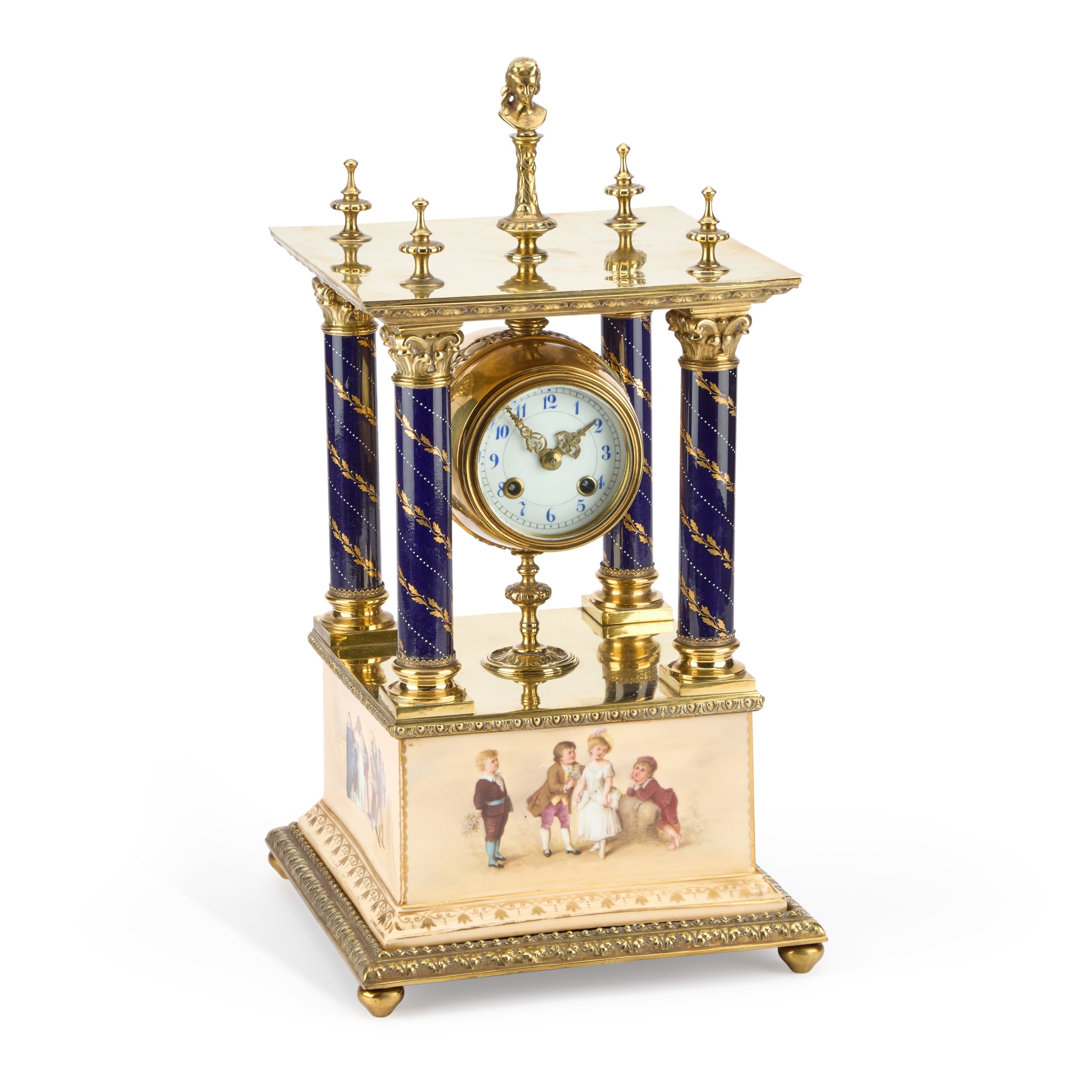 A CONTINENTAL BRASS-MOUNTED PORCELAIN PORTICO CLOCK LATE 19TH/ EARLY 20TH CENTURY, IN THE VIENNA STYLE