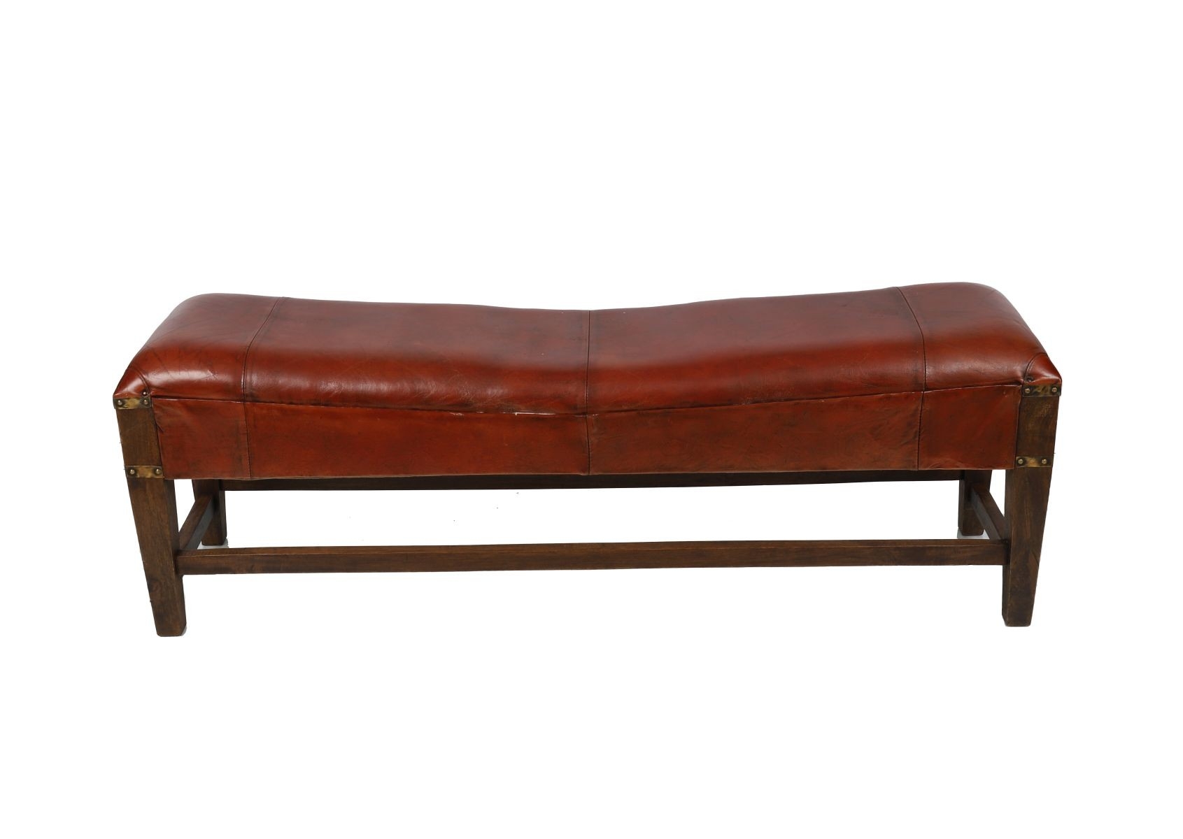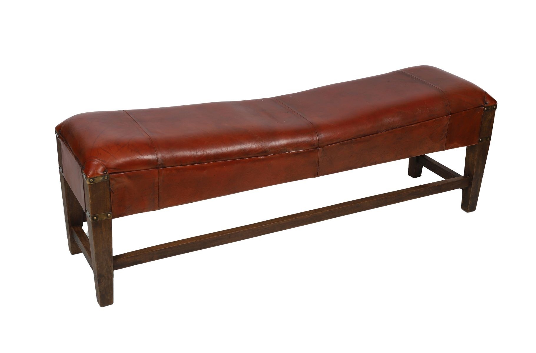 A vintage gymnasium pommel horse, upholstered in tan leather and raised on a stained wooden frame. 53 cm. high; 152 cm. wide; 40 cm. deep EQUESTRIAN INTEREST Tuesday 25th November 2025 11:14:06