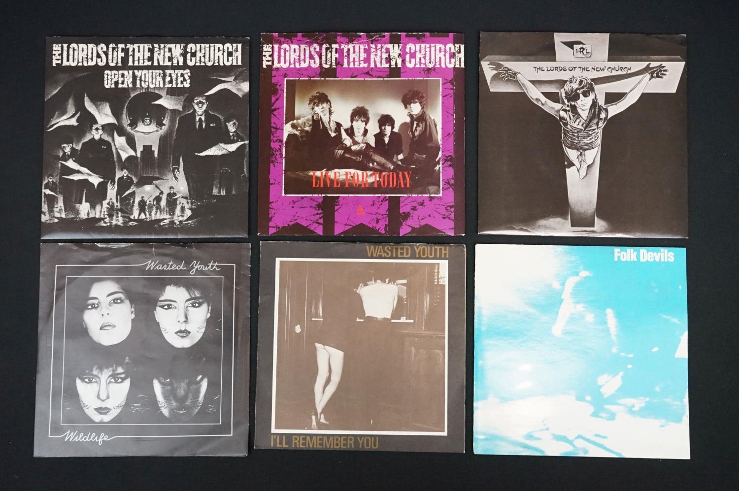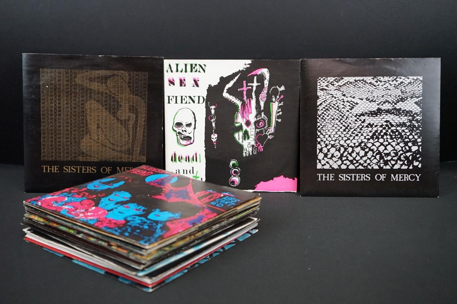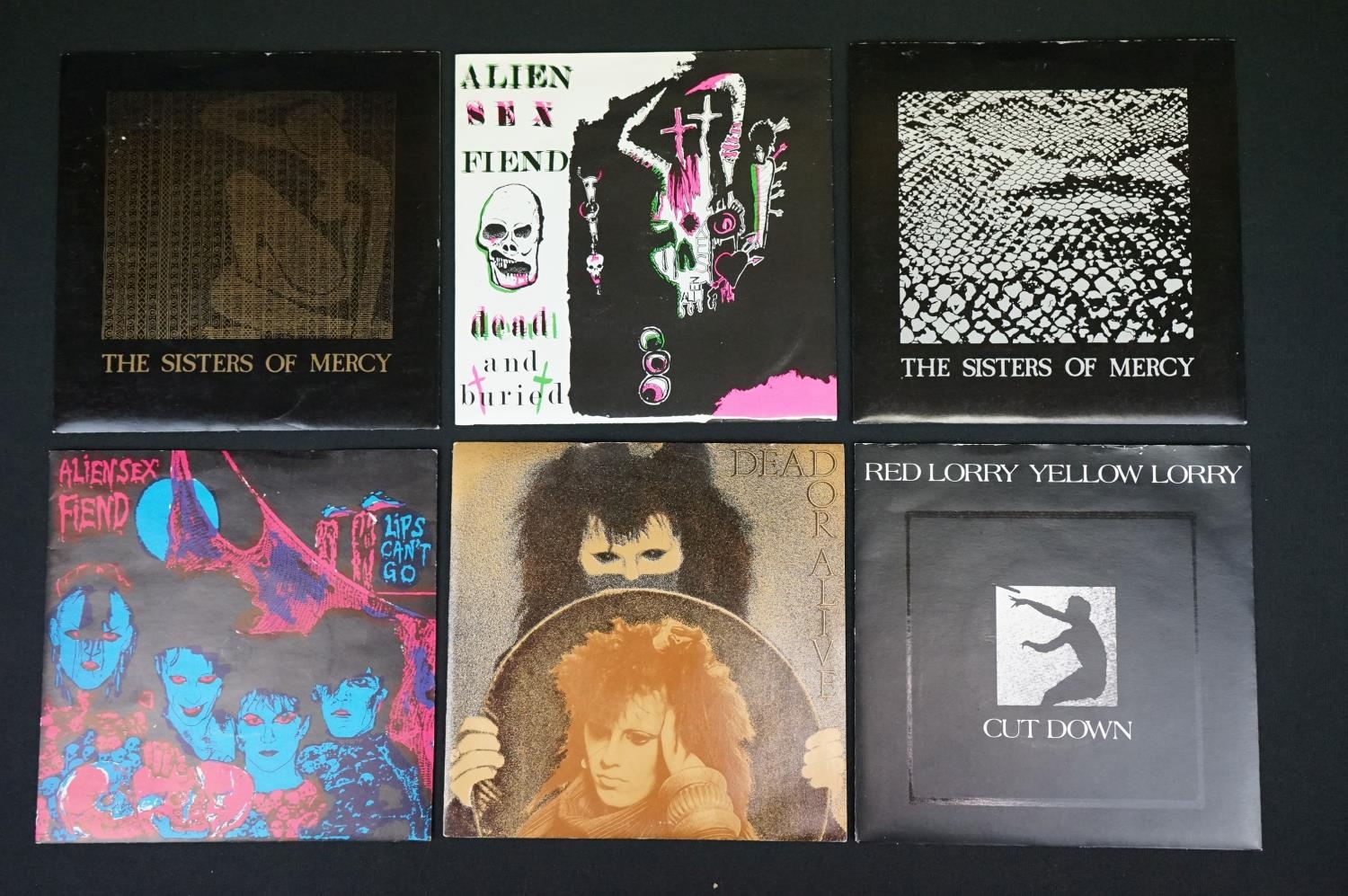 Vinyl - Goth Rock - 24 UK Original 7” singles to include: The Sisters Of Mercy (2 titles), Alien Sex Fiend (2 Titles), Dead Or Alive, Red Lorry Yellow Lorry, Skeletal Family, Sex Gang Children (2 titles), Xmal Deutschland, Last Salute, Flesh For Lulu, The Lords Of The New Church (3 titles), Wasted Youth (2 Titles), Folk Devils, Cuddly Toys, The Lucy Show, SPK (2 titles), Zebra I, Luddites. Condition generally VG+ / EX