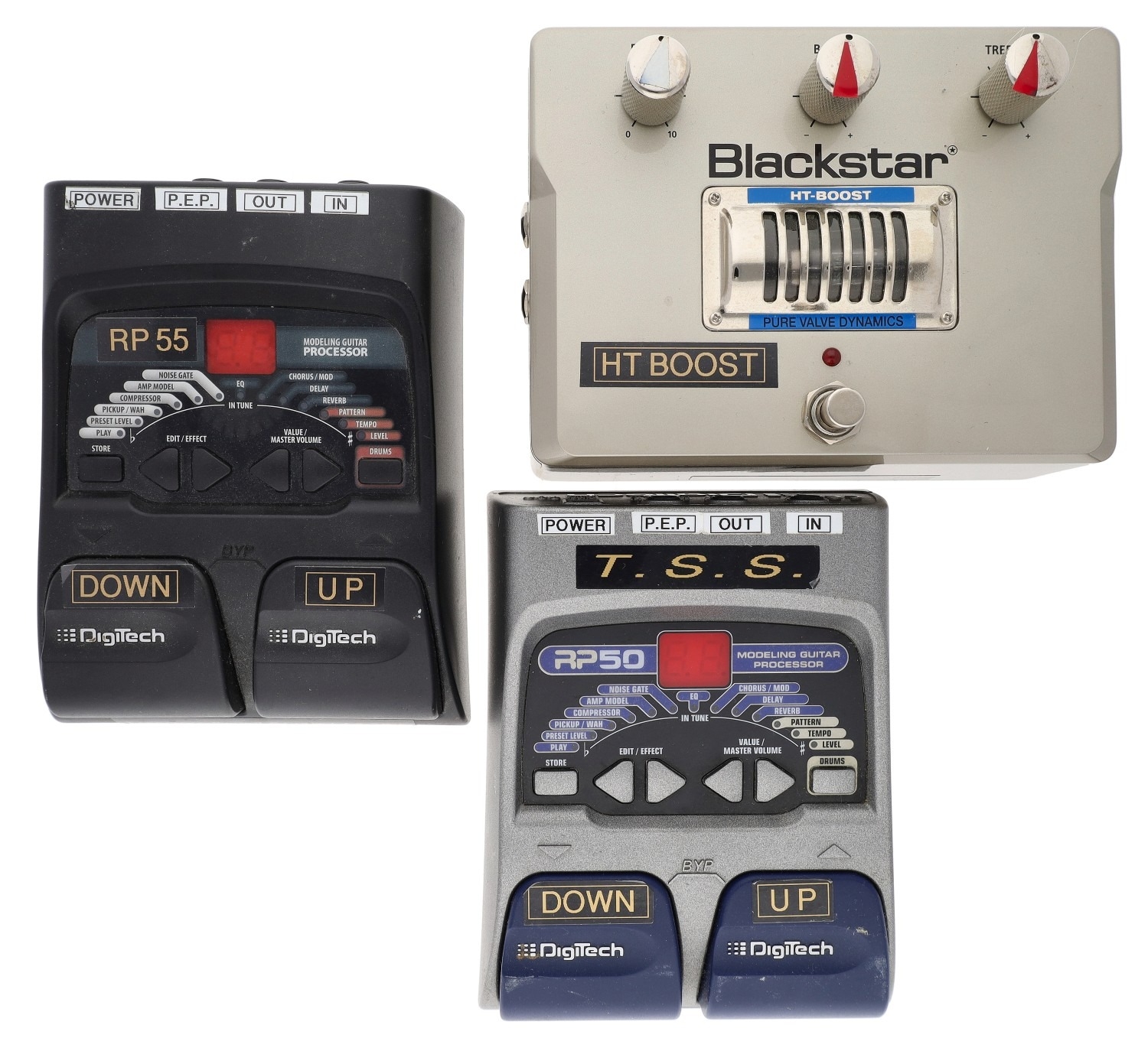 Blackstar Amplification HT Boost guitar pedal; together with a DigiTech RP50 multi-effects guitar pedal and a DigiTech RP55 guitar pedal (3)