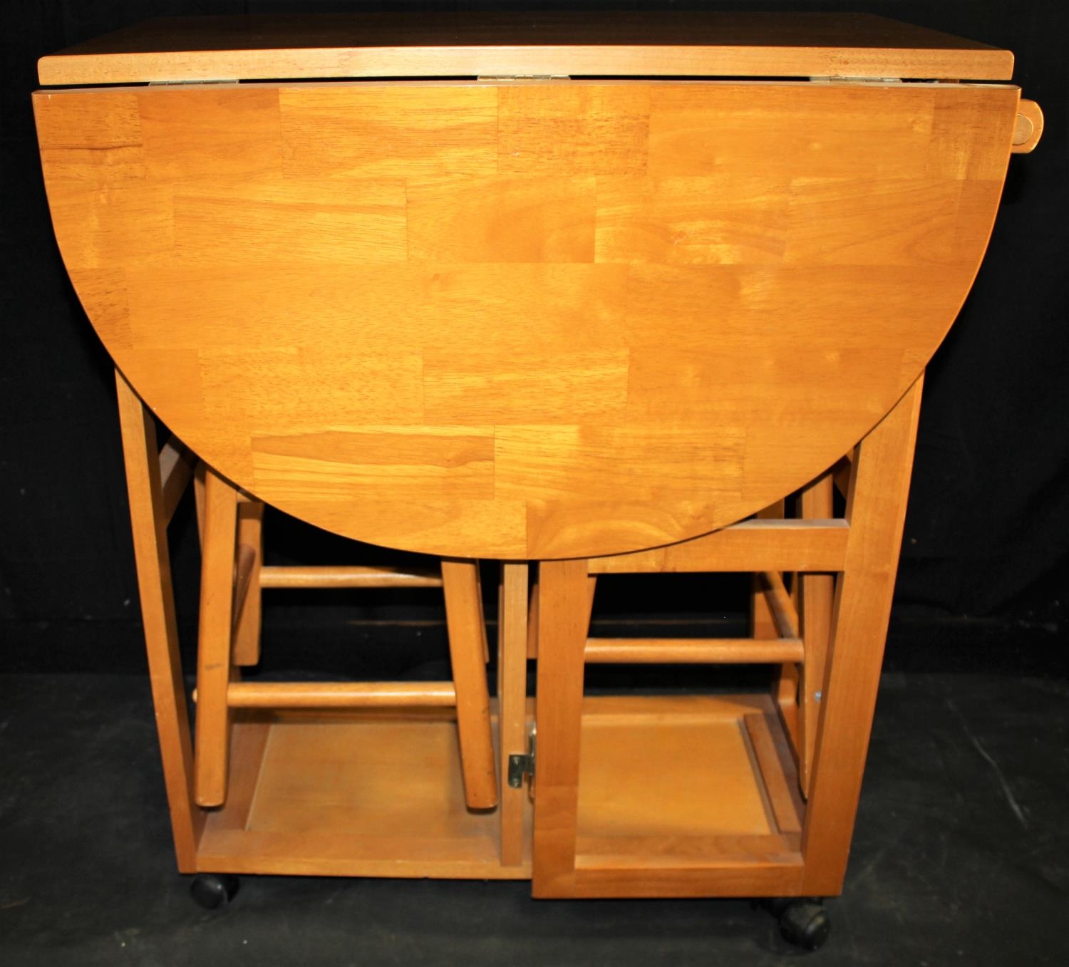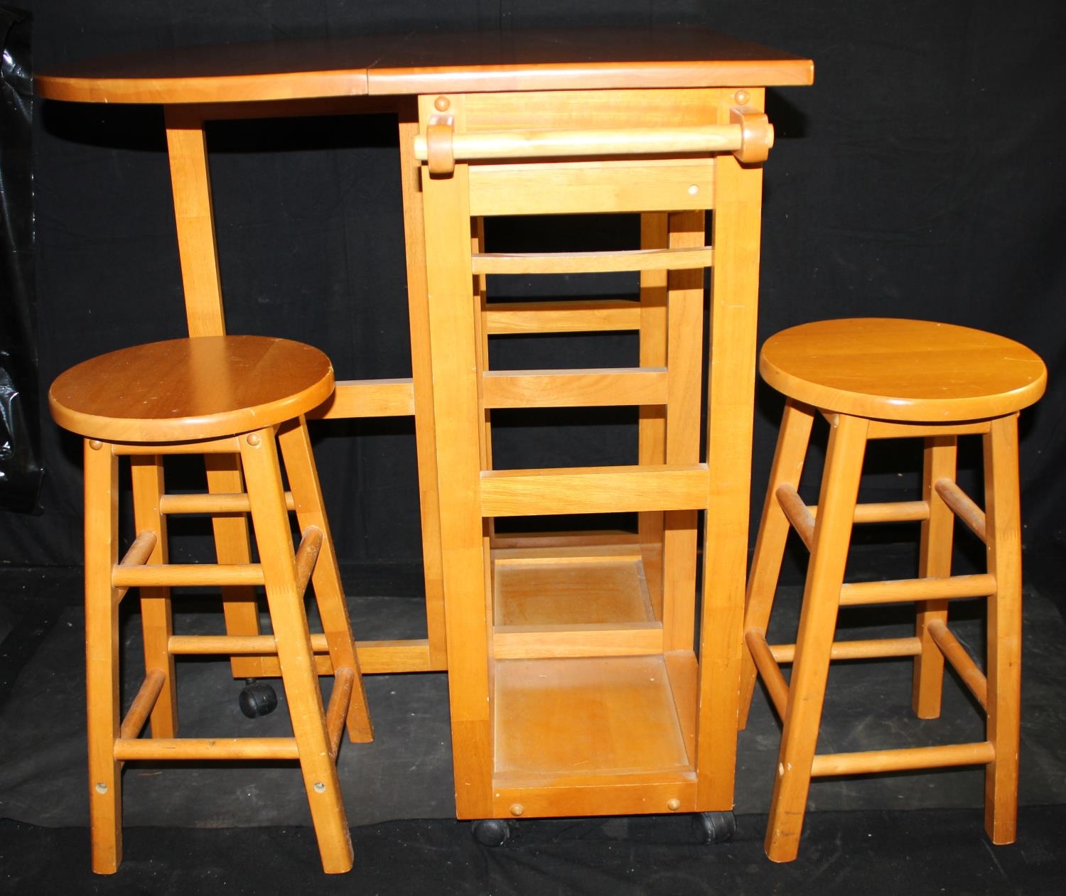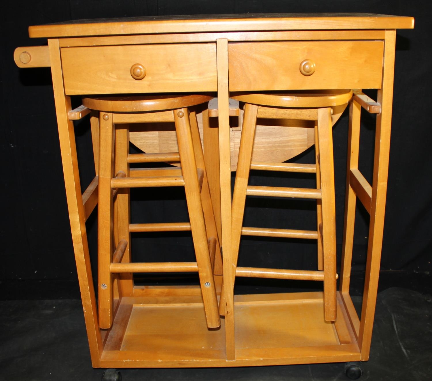 DROP LEAF BREAKFAST BAR TROLLEY FITTED 2 STOOLS