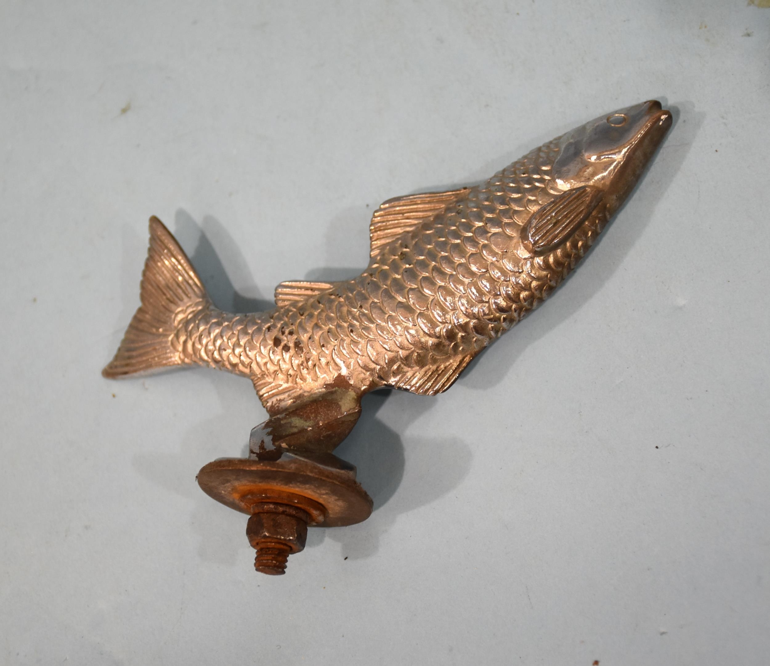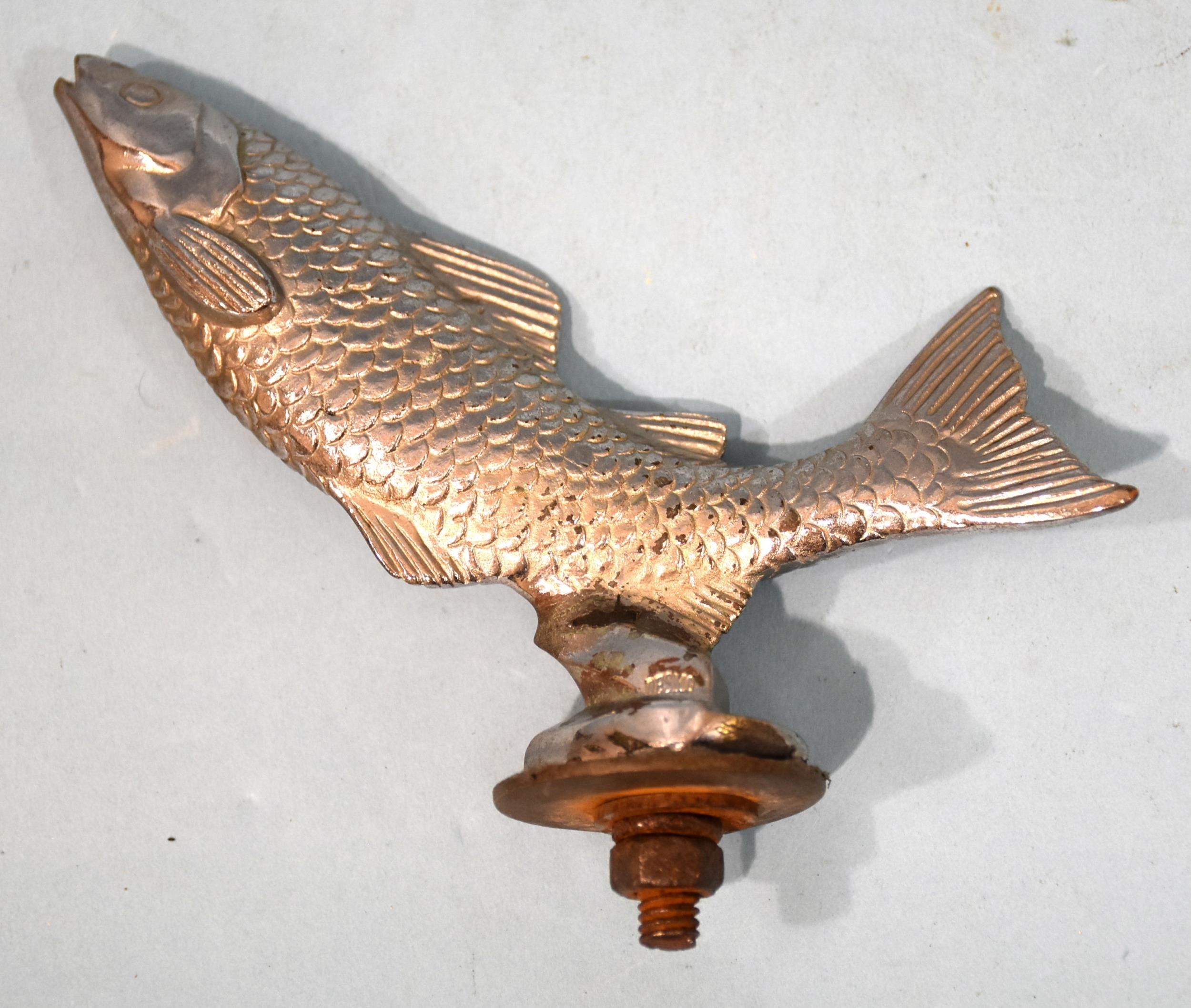 A Desmo chrome-plated leaping salmon car mascot, 16cm long.