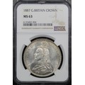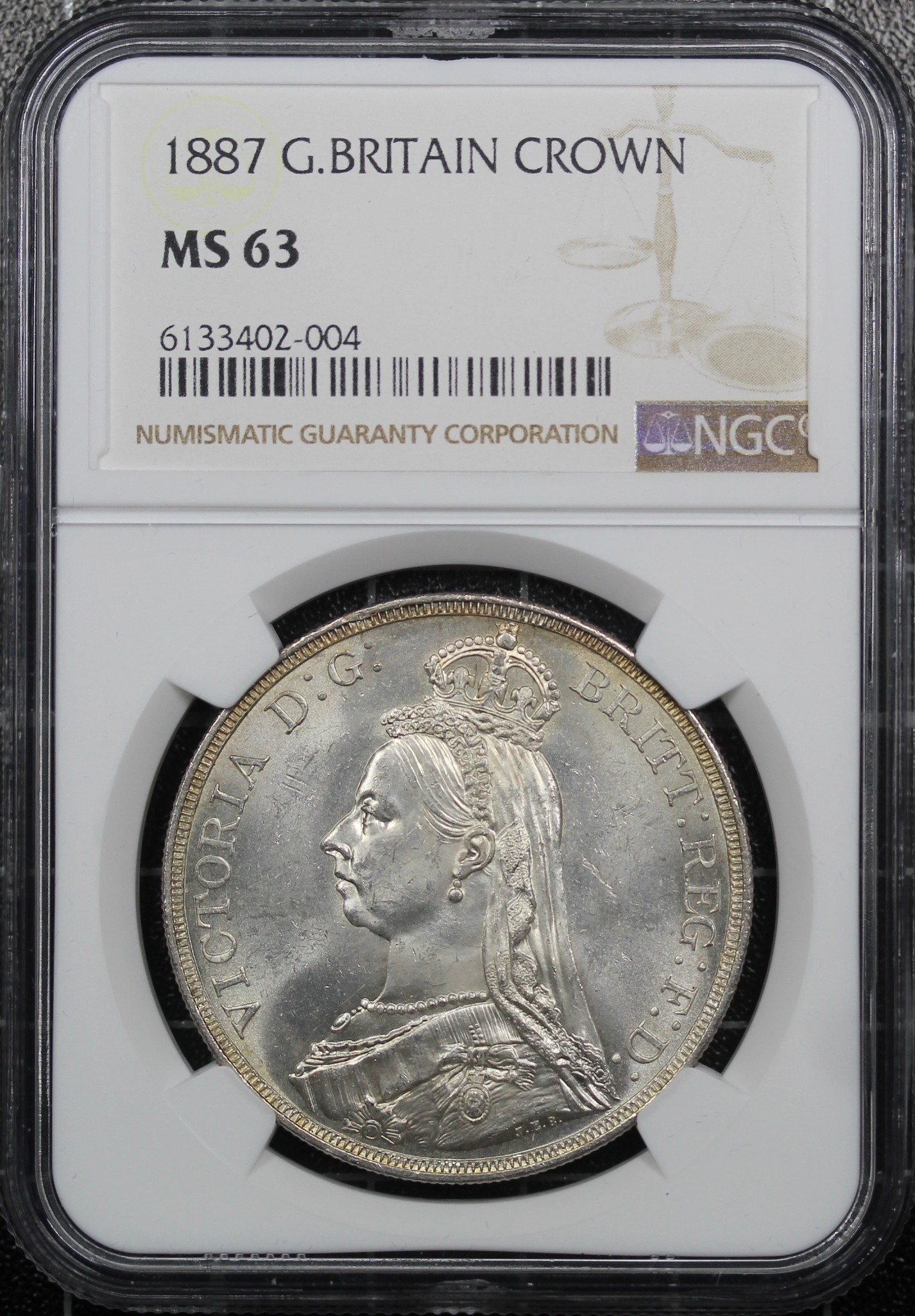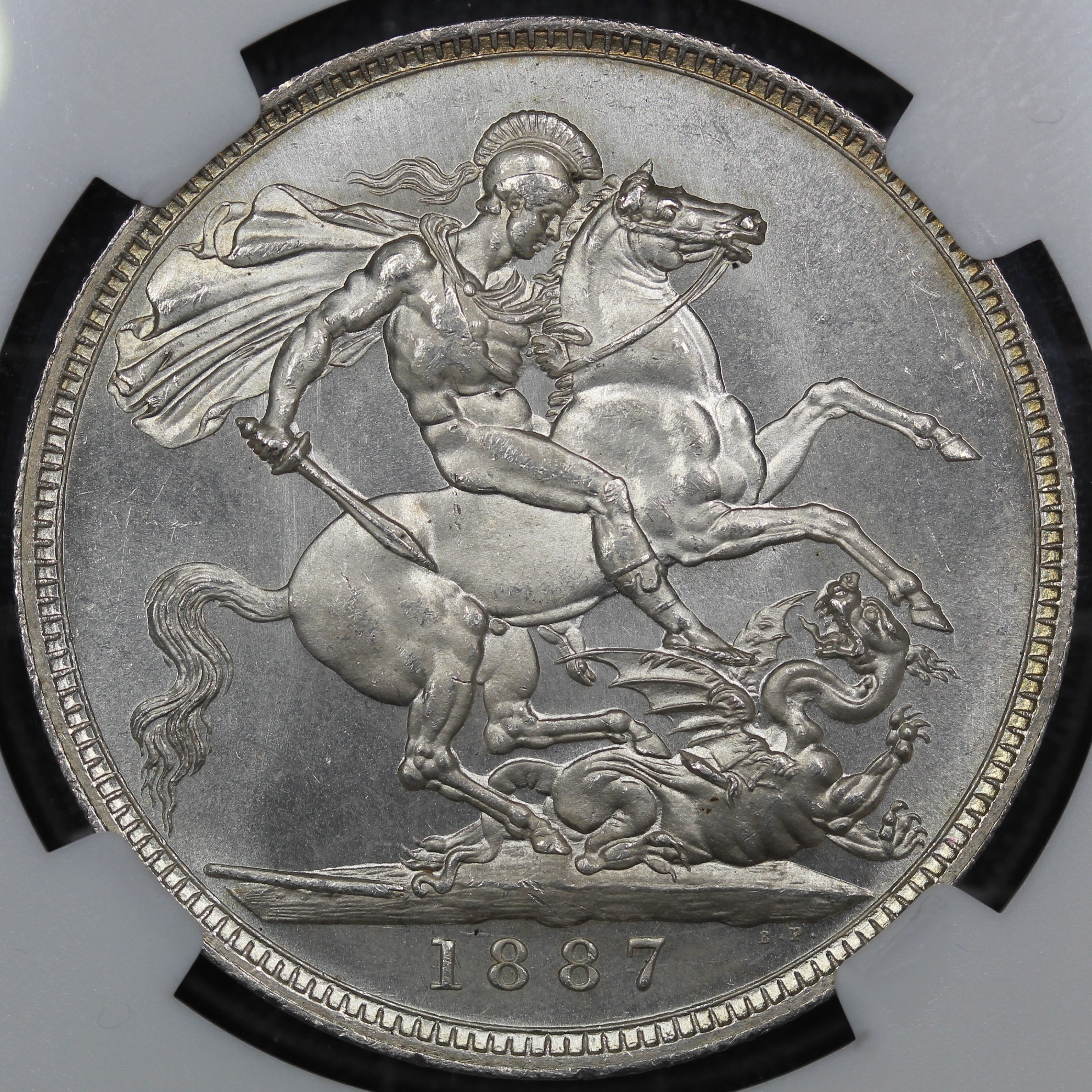 1887 Crown, Victoria (ESC 296, Bull 2585, S.3921). Graded NGC MS63, uncirculated or near with some obverse field marks and full mint lustre.