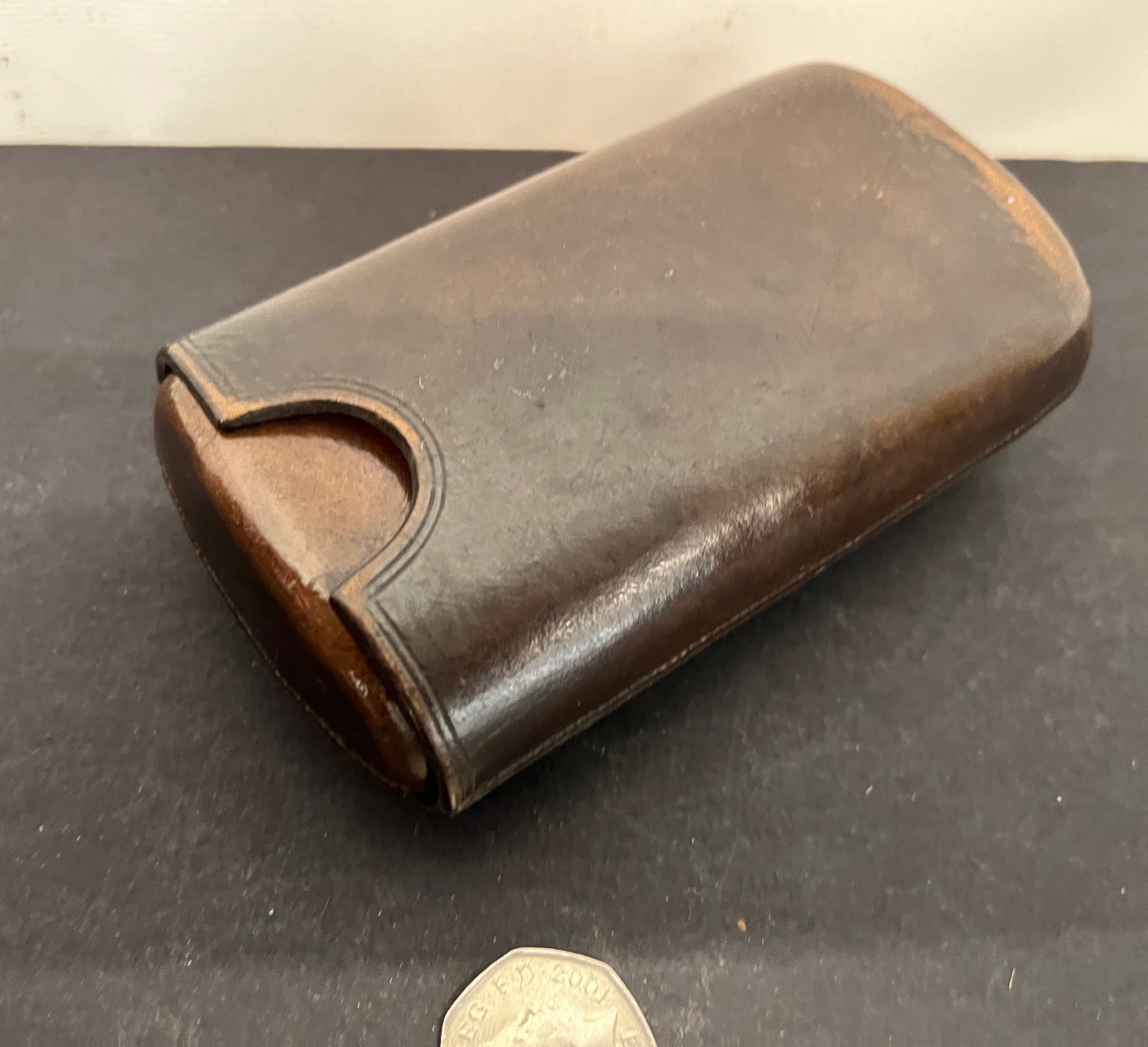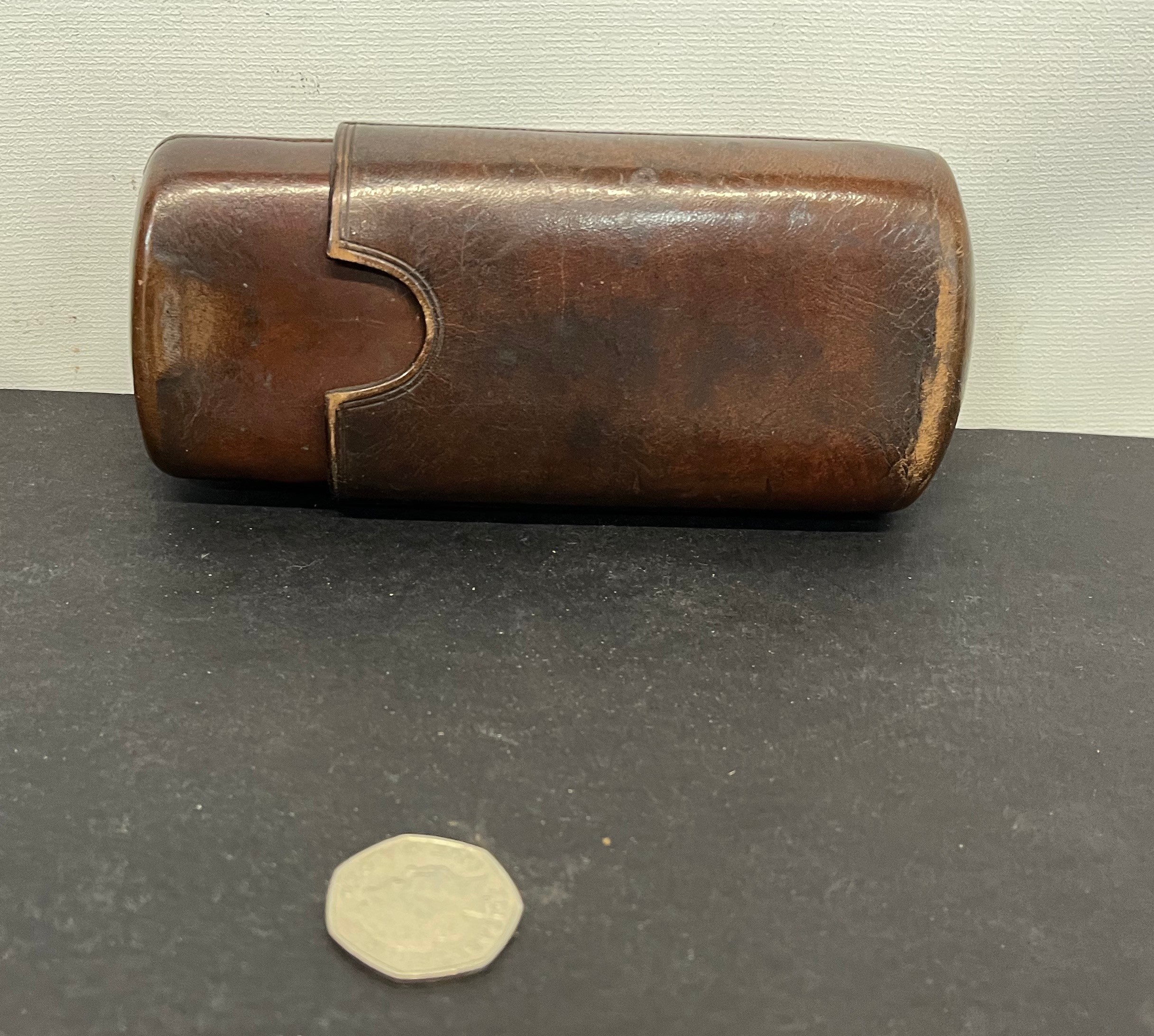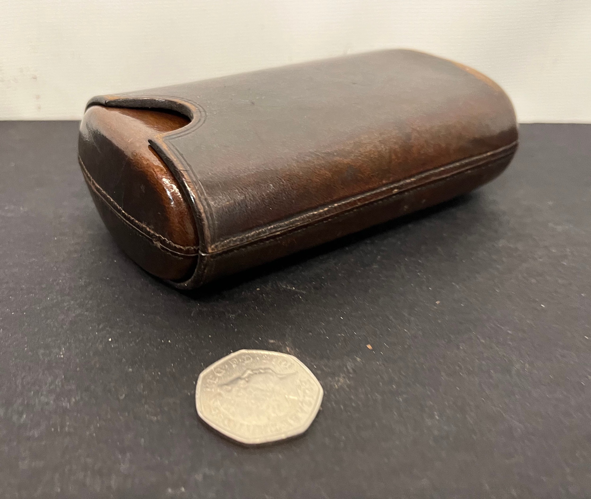 Leather cigar case with a couple of residents included. 5 inches long when fully closed.