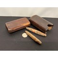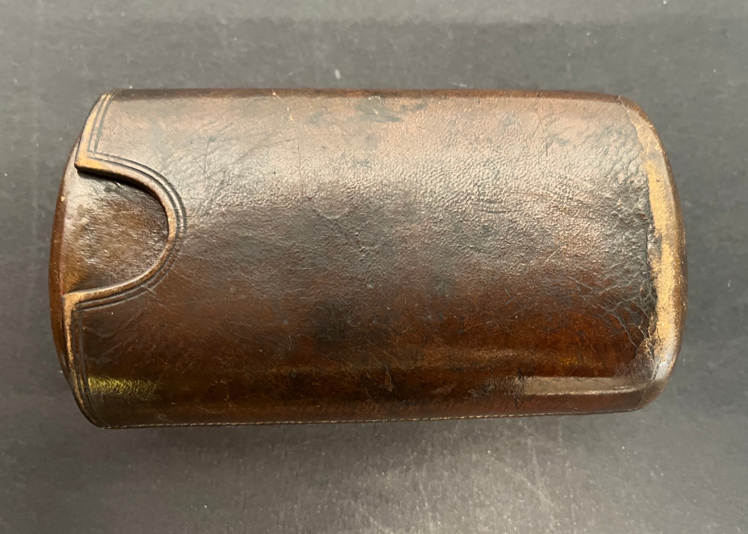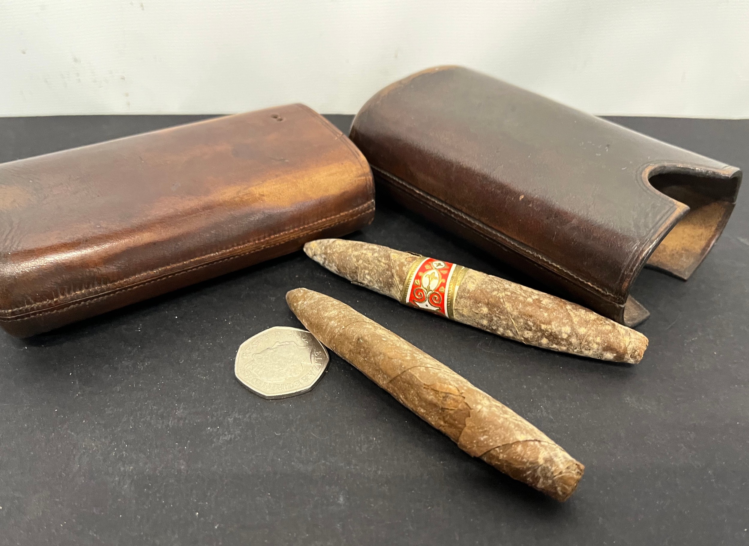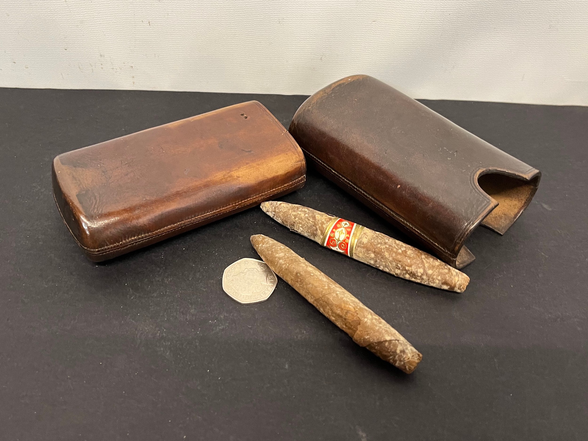 Leather cigar case with a couple of residents included. 5 inches long when fully closed.