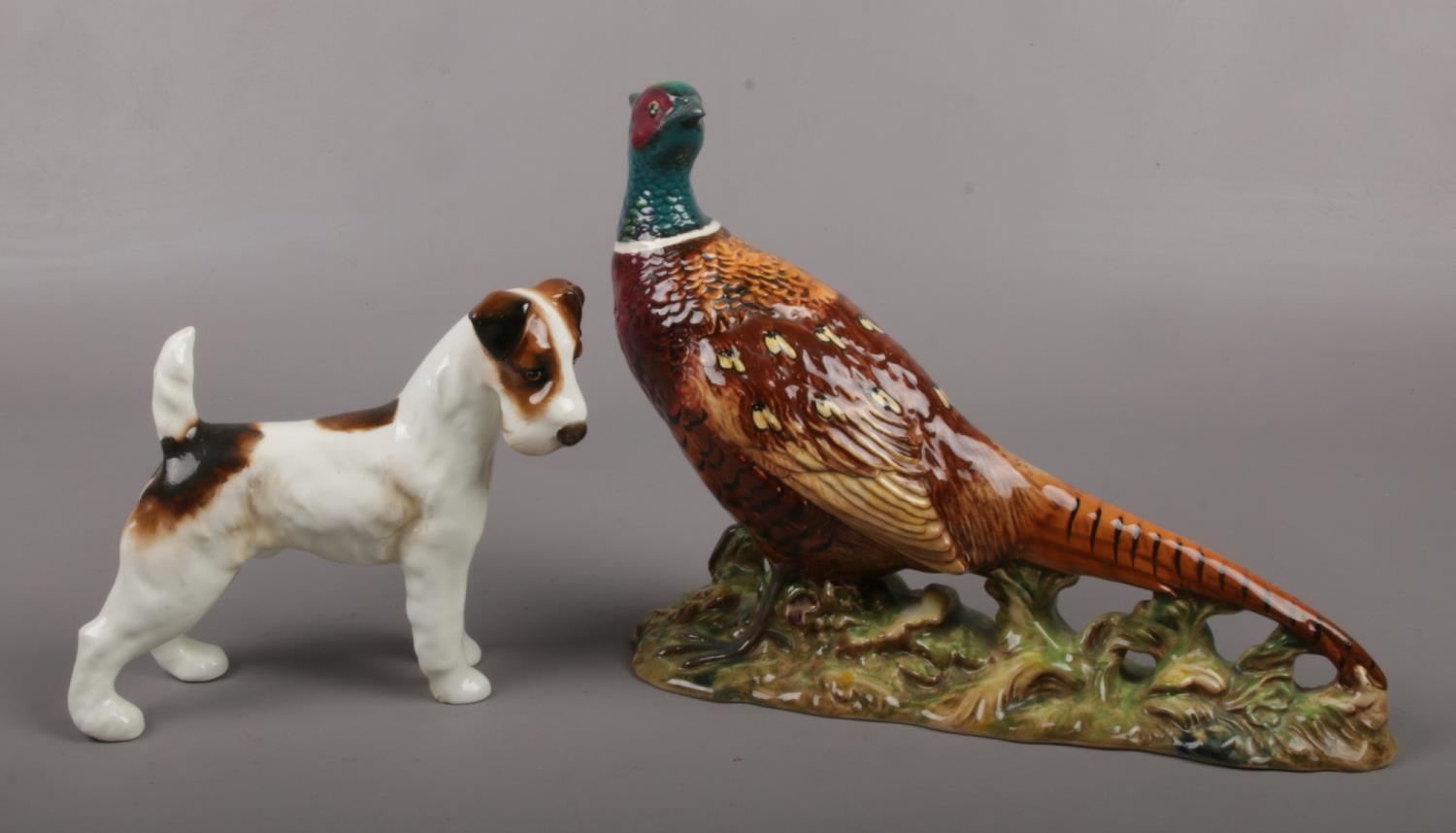 A Beswick model of a pheasant on naturalistic base model 1225 and a Royal Doulton fox terrier HN943.
