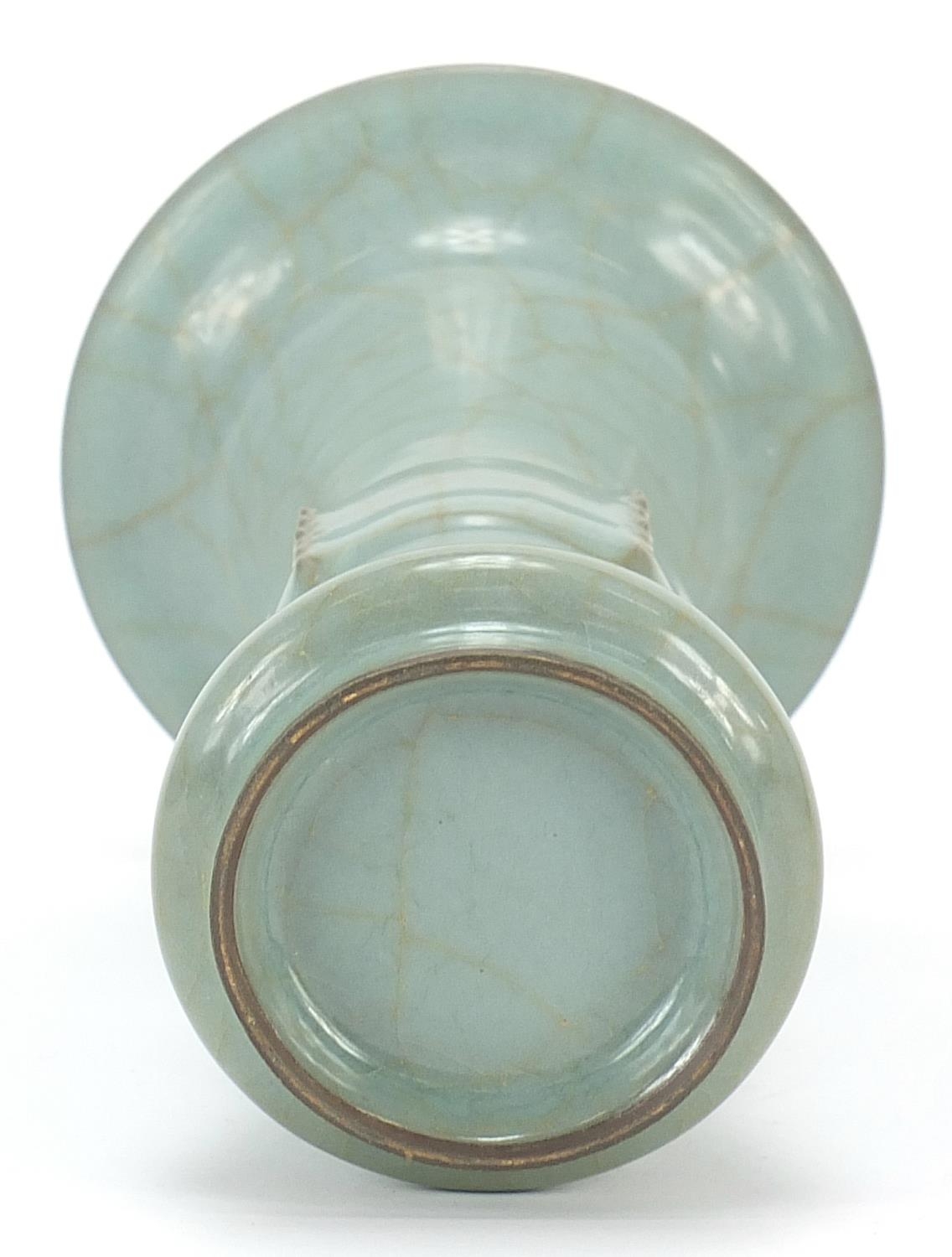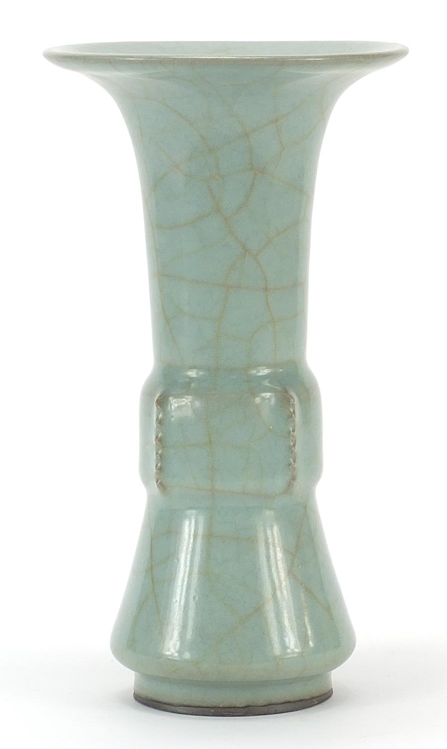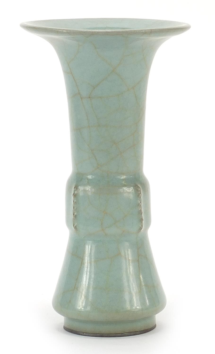 Chinese porcelain Gu beaker vase having a celadon crackle glaze, 23cm high