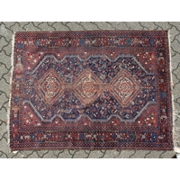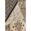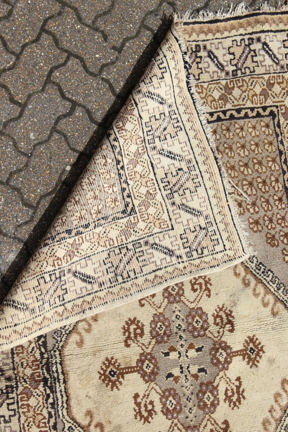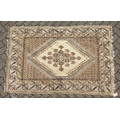 A PERSIAN RUG brown and cream with large medallions.