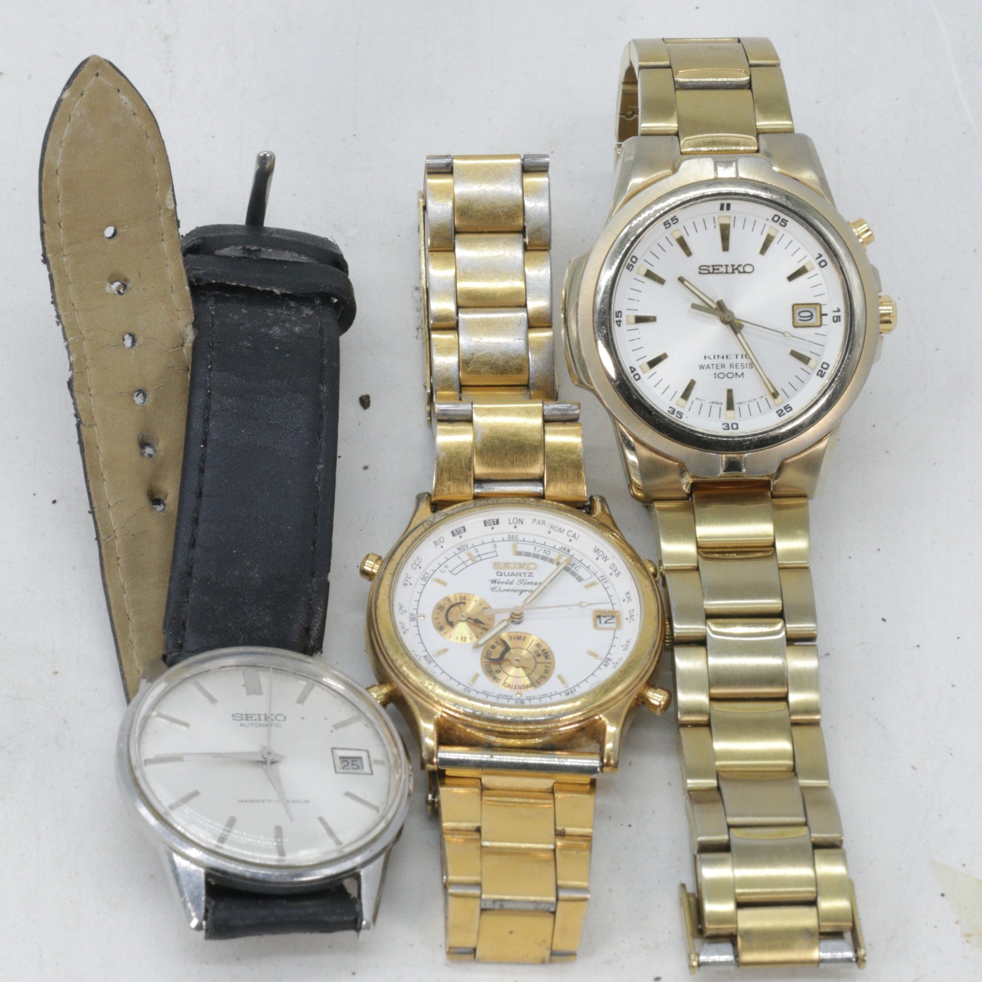 A Seiko 5M62 0B90, 6m15 7031, and 7625 1990 wristwatches