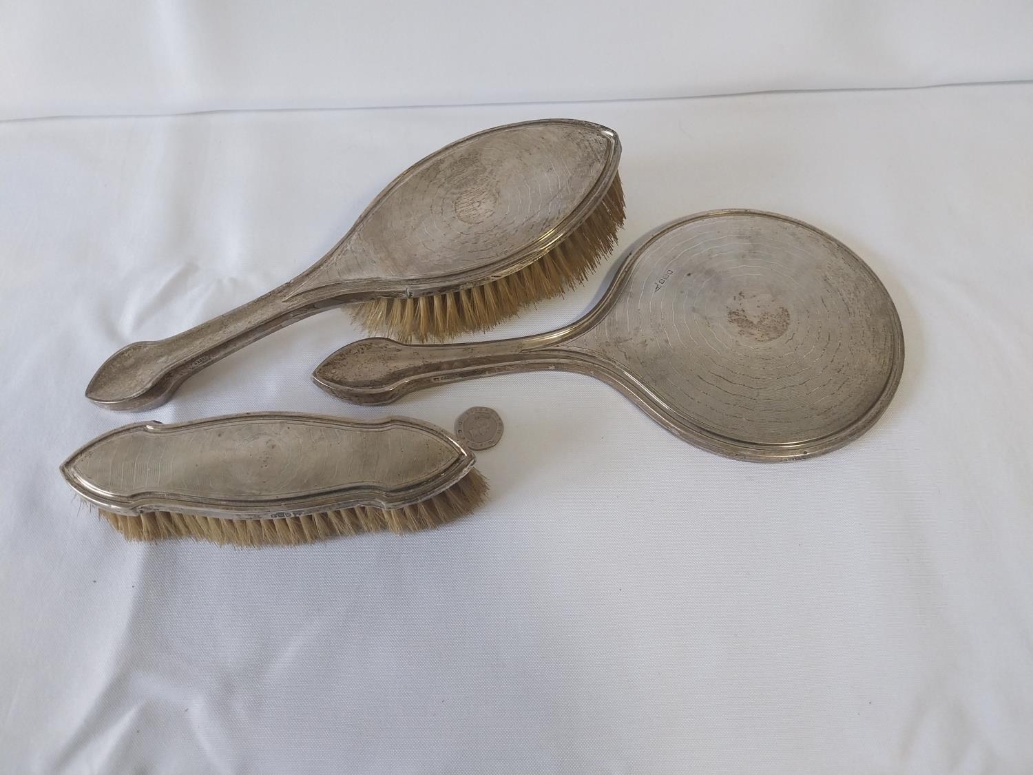 HM Silver dressing table trio including mirror By Walker & Hall c1904