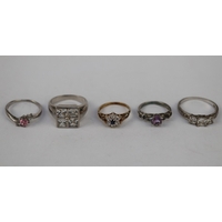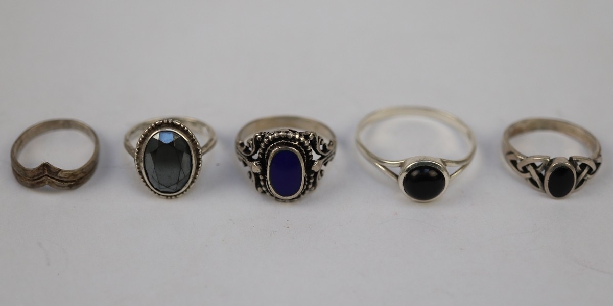 5 silver stone set rings