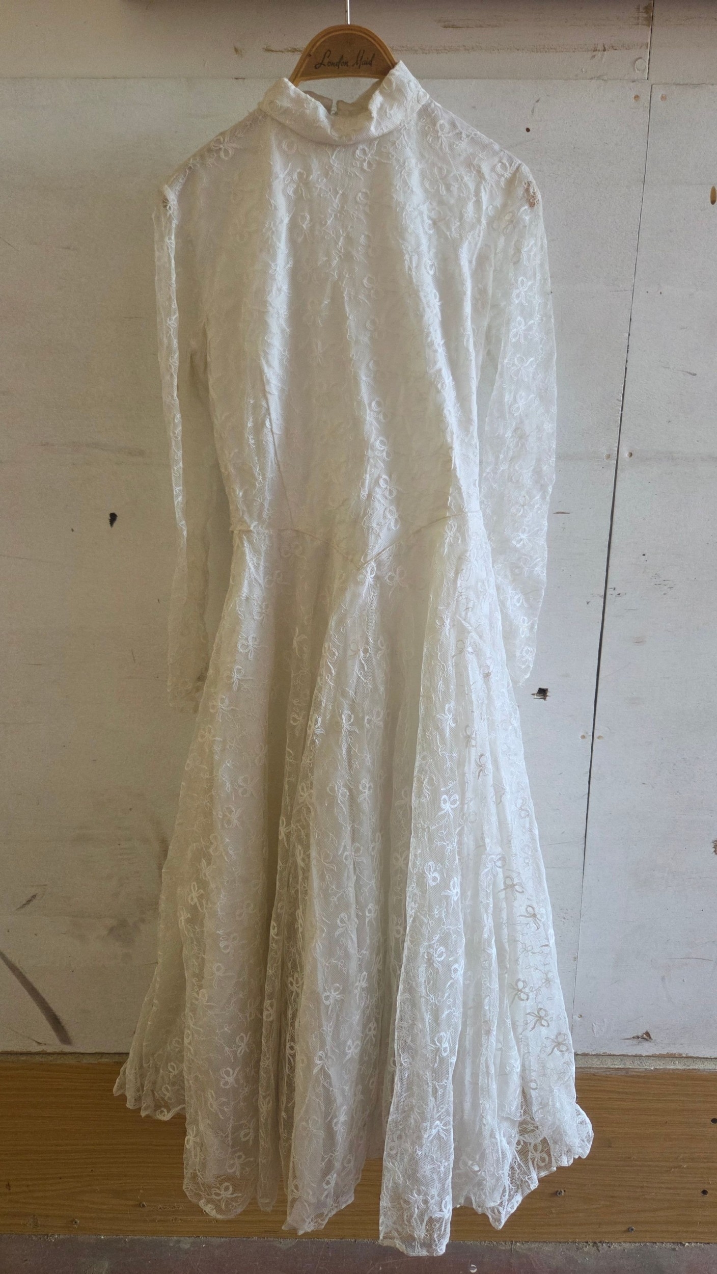 Mid-20th Century White Lace Wedding Gown Attributed to London Maid