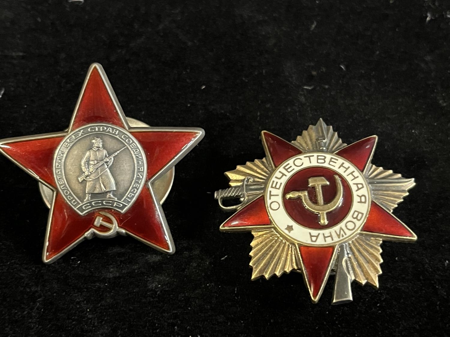 Two Soviet Russian military medals, a Order of the Red Star and a Order of the Great Patriotic War