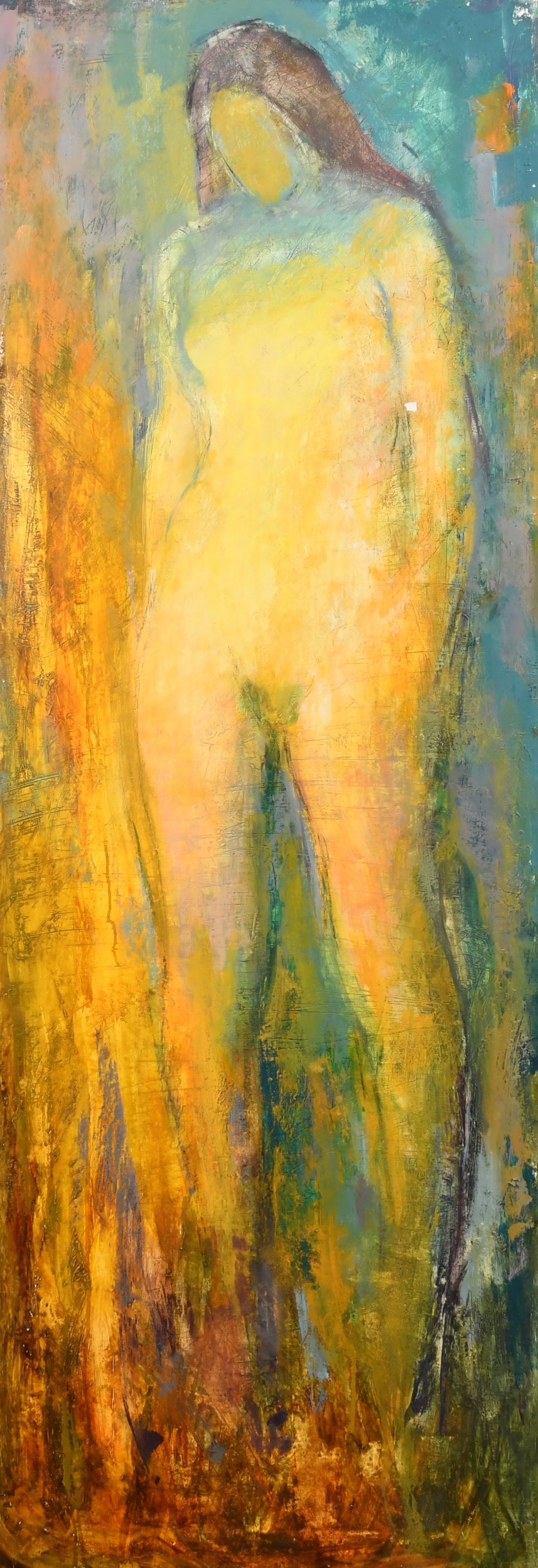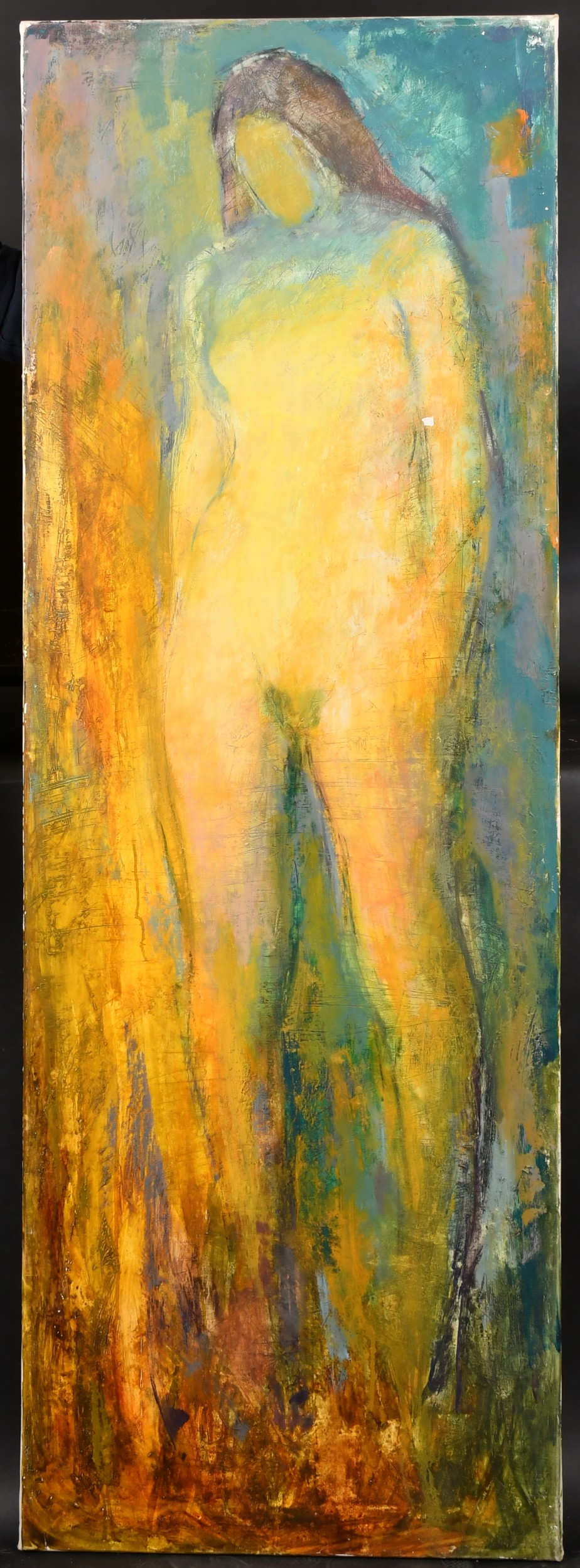 Zsuzsi Roboz (1929-2012) Hungarian. Standing Nude, Oil on canvas, unframed 60" x 20" (152.5 x 50.8cm)