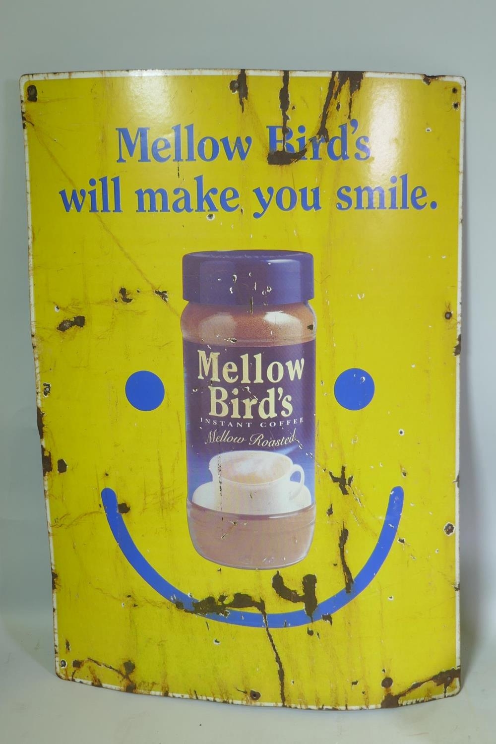 An original enamel 'Mellow Birds - Instant Coffee' advertising sign, 60 x 85cm