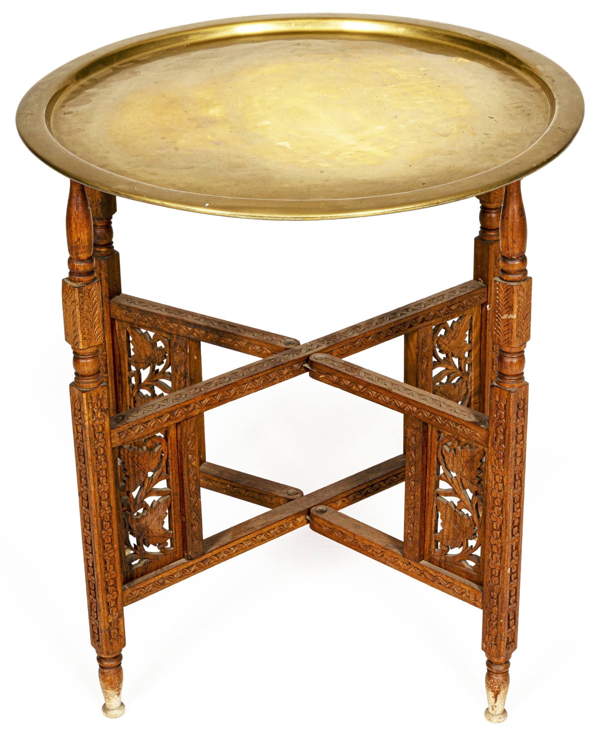 A MORROCAN-STYLE BRASS TRAY-ON-STAND