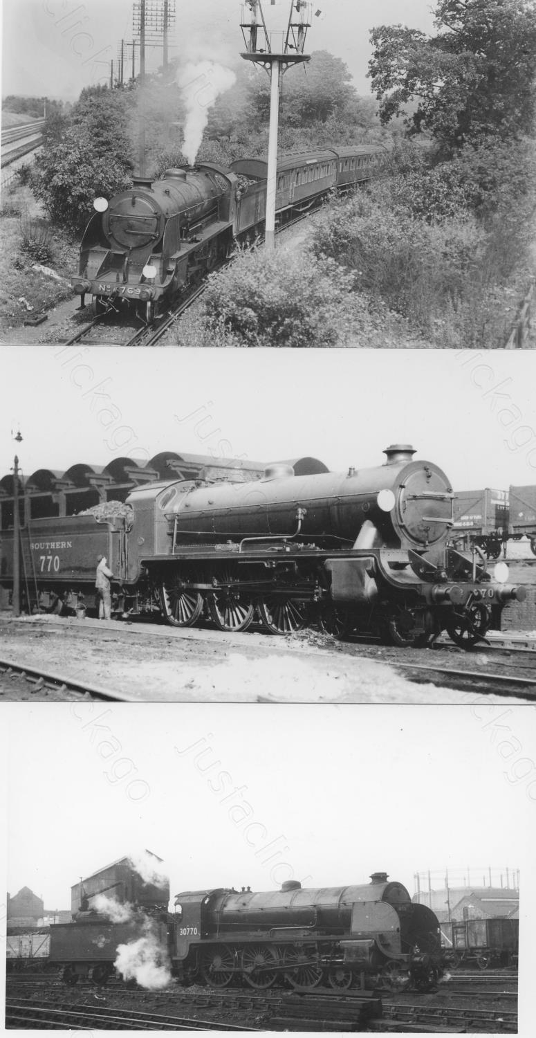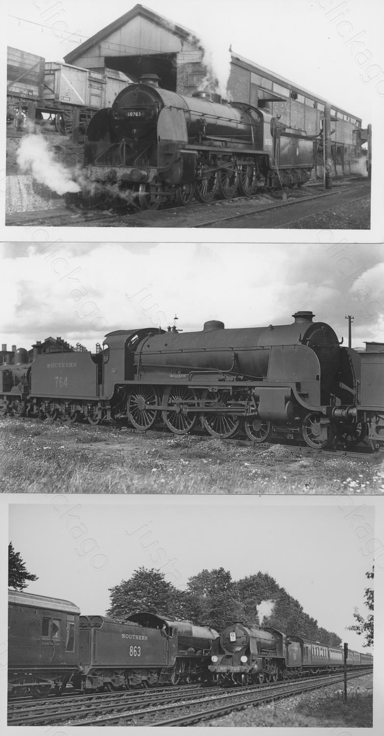 We are delighted to offer these original darkroom prints from the "Casserley Collection". The negative collection was sold at an earlier auction and these prints are from Richard Casserley's extensive collection. The prints are signed on the reverse and are fully captioned including the negative number. They include R.M. Casserley and H.C. Casserley prints. There may be minor duplication. Rare opportunity. Approx. 180, black & white darkroom prints, postcard size (a few smaller prints noted). This selection features ex-Southern Railway and constituent locomotives plus a few stations in the Southampton area, dating from the 1920's to the 1960's. Locations include: Southampton, Bishops Waltham Station, Swaythling, St Denys, Fareham, Southampton Docks and Pier, Gosport (closed), Bromley, Nine Elms, Salisbury, Wadebridge, Exmouth Junction, Wenford Clay Works and others. No copyright, sample illustrated.