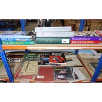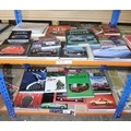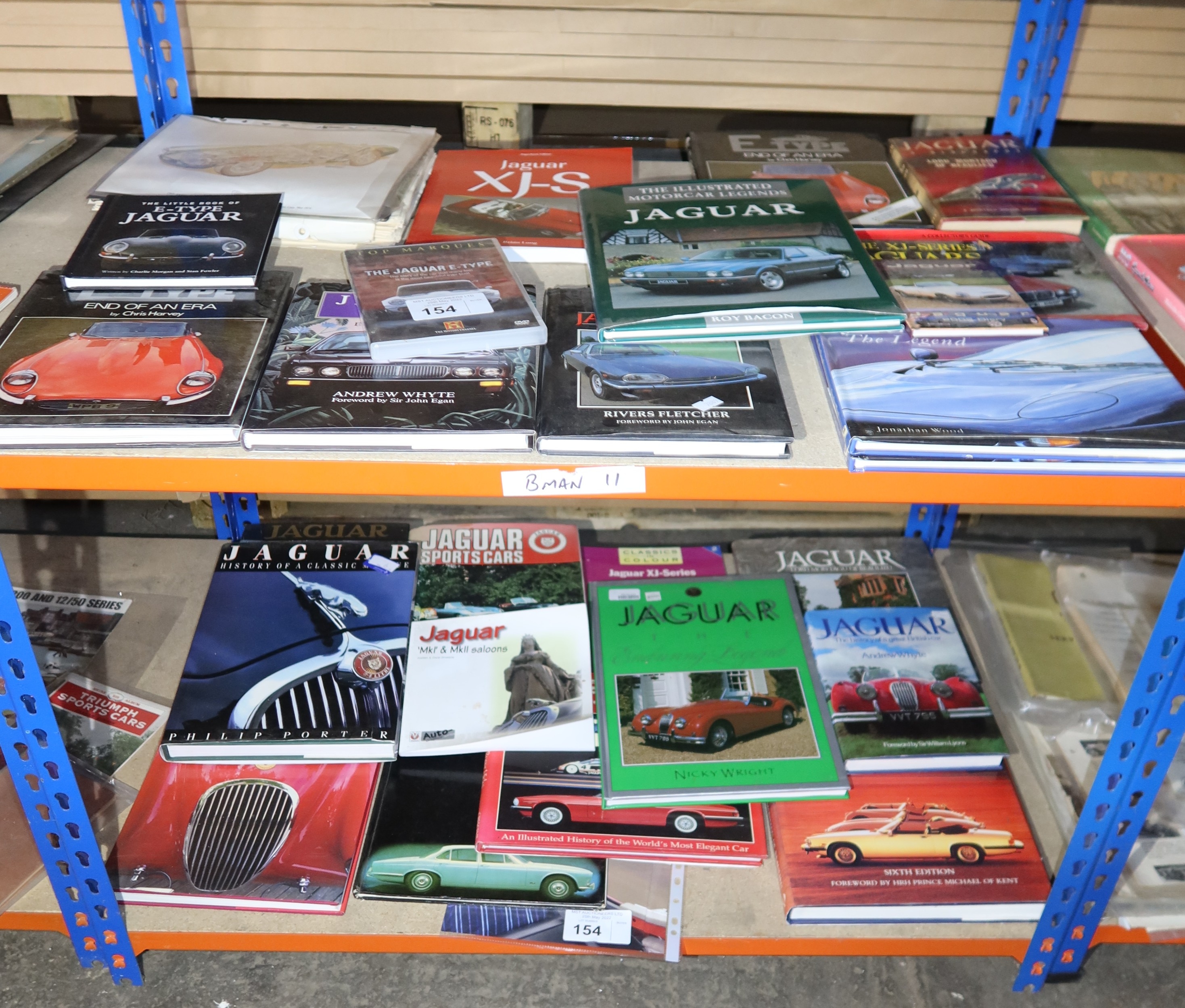 A quantity of various Jaguar books and an E-type DVD. Contents of 2 shelves