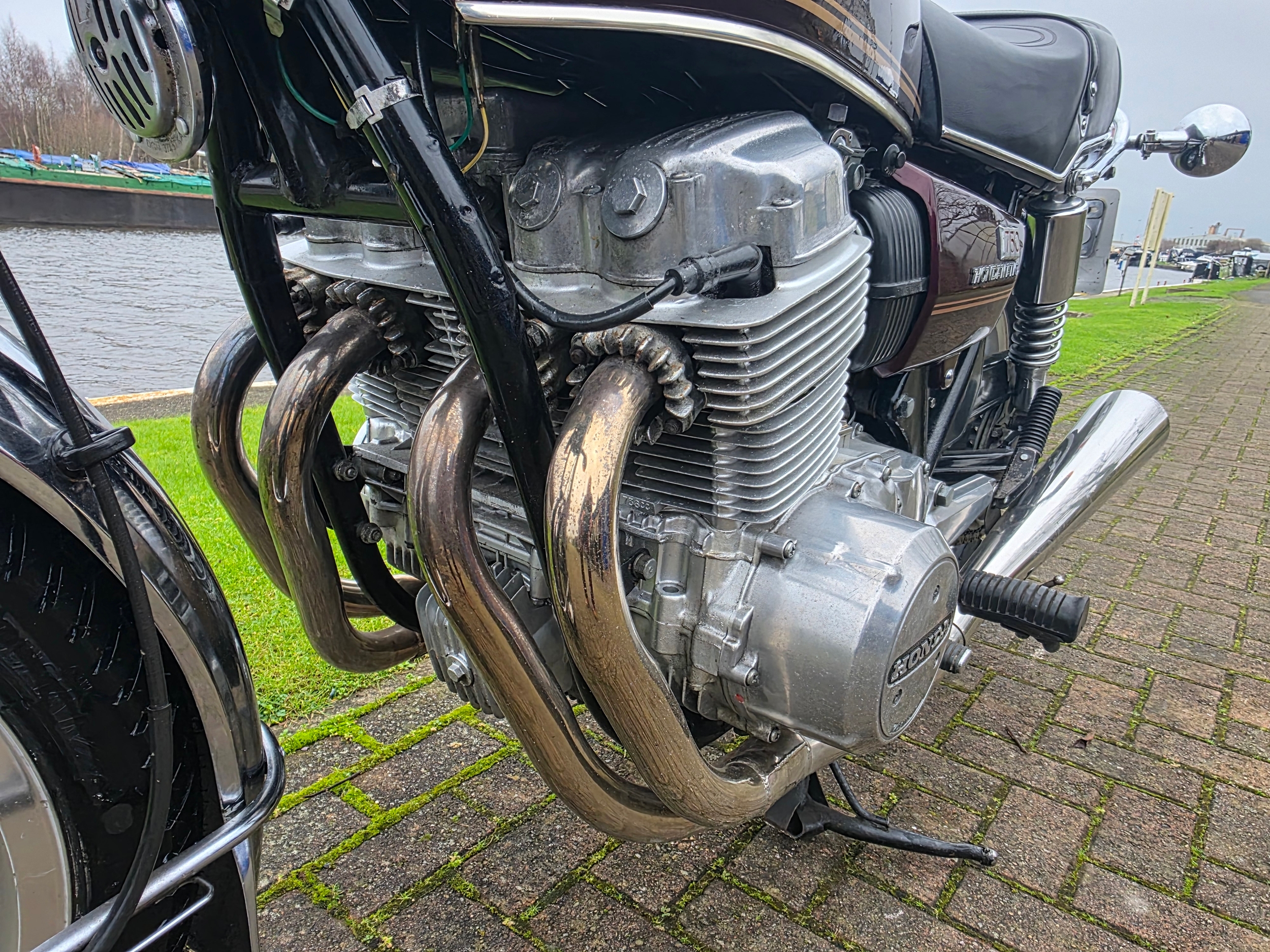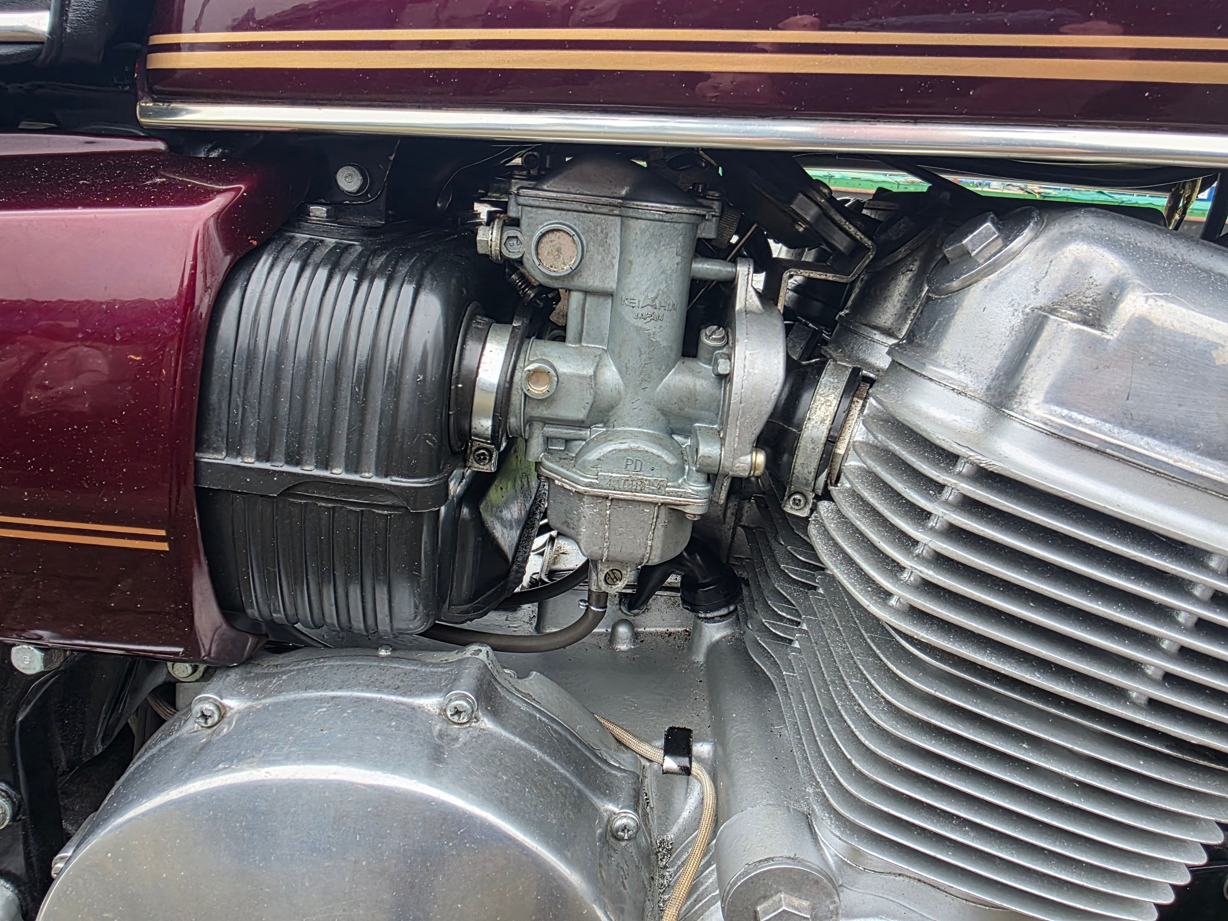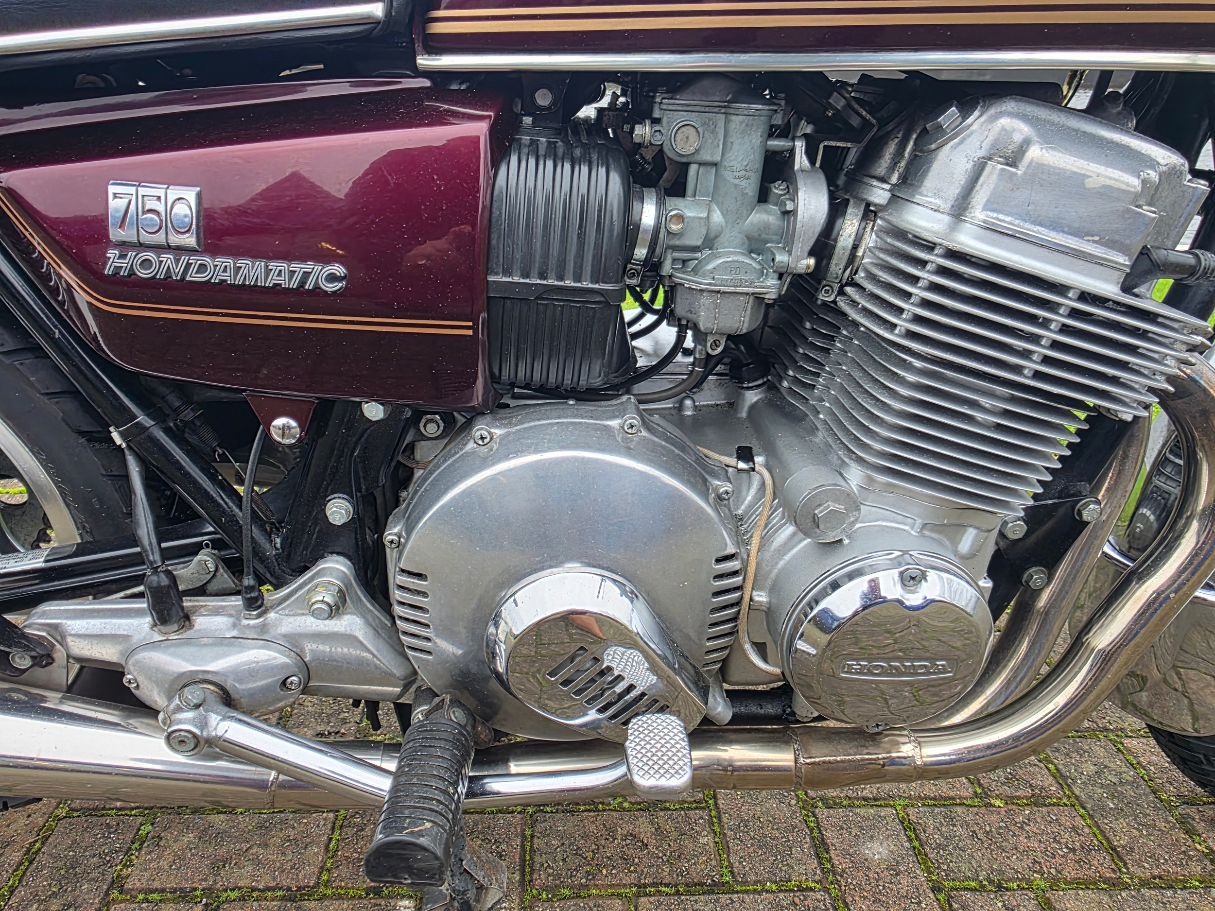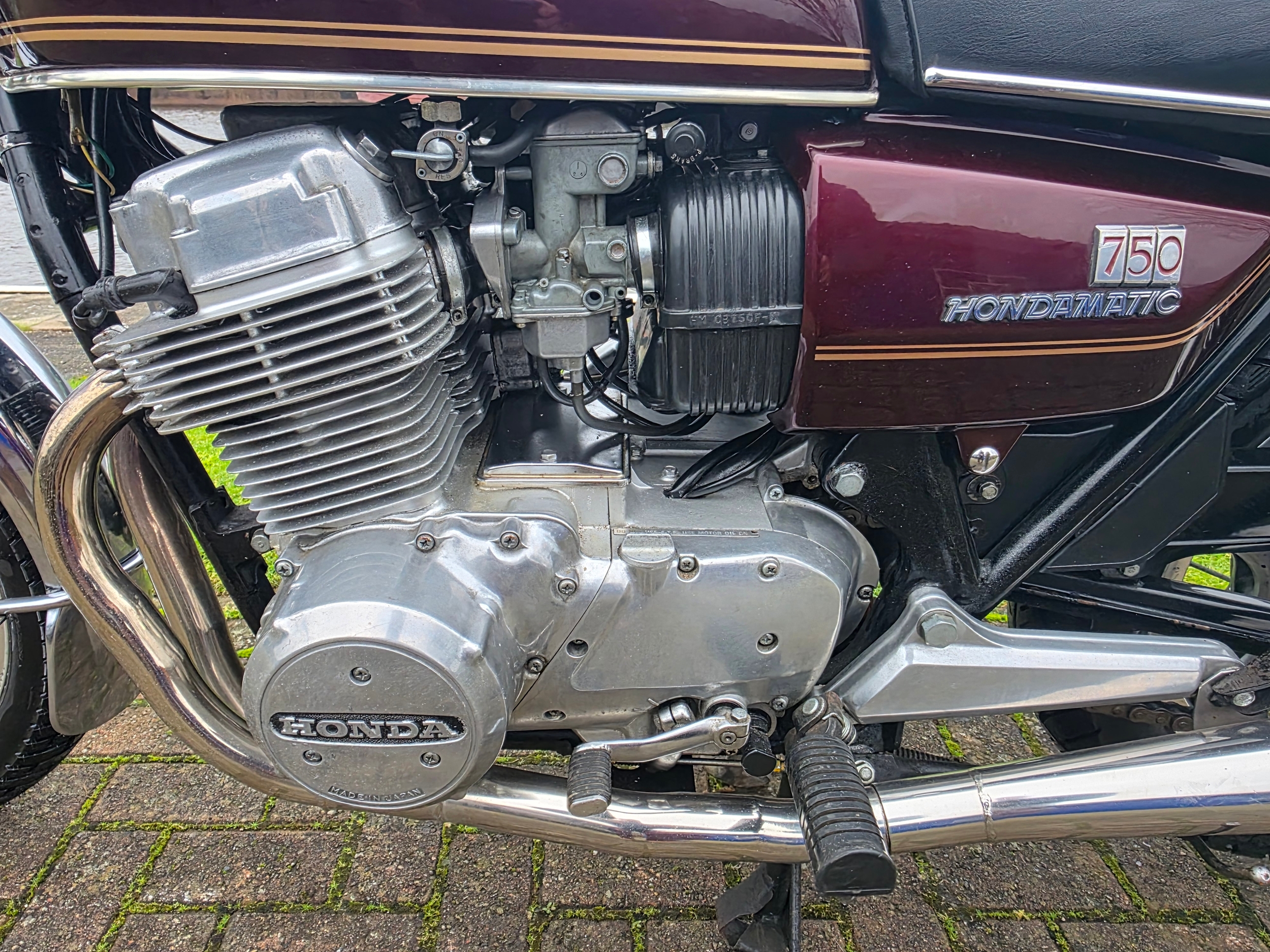Revisions to the combustion chambers lowered compression, which, with smaller carbs, camshaft changes and a four-into-one exhaust revised the power curve for more low-down thrust to suit the characteristics of the torque converter. An accelerator pump fitted to the number two carburettor (but feeding all four) helped to alleviate a known flat spot off idle in the standard power delivery of the Honda CB750F.