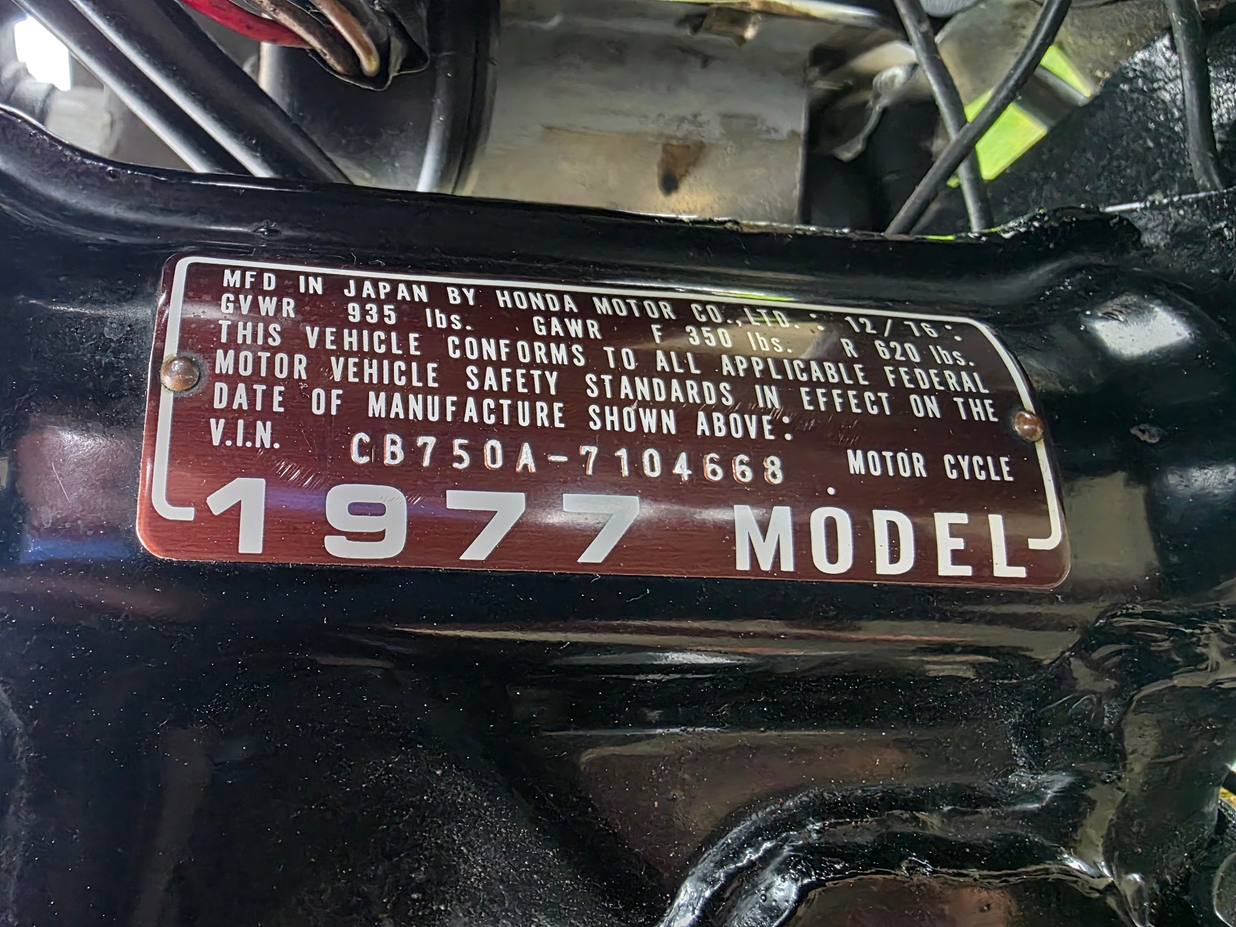 1977 Honda CB750A, Automatic, 736cc. Registration number TJT 259R. Frame number CB750A 71084668. Engine number 750AE 7104668.