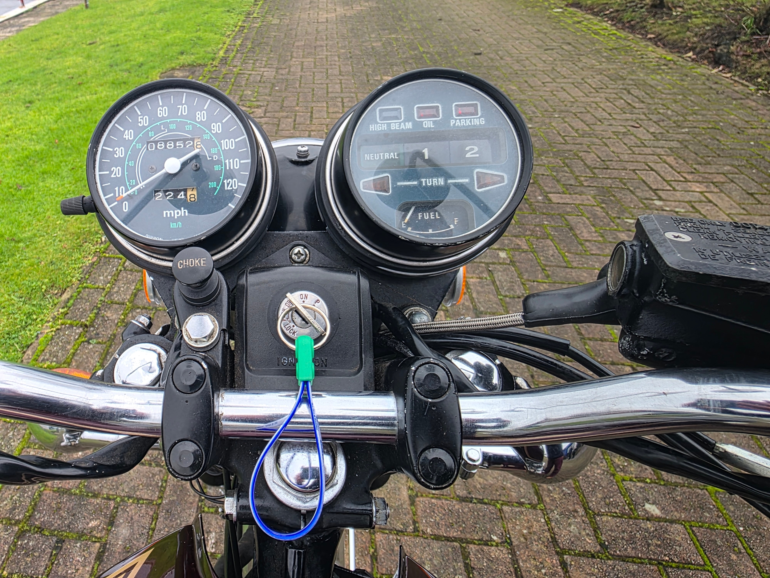 Imported in 1998, a 2002 MOT shows 8337 miles on the odometer, today it shows 8852 miles. Our vendors has stripped the carbs, ultrasonically cleaned and balanced them. He states it is running well.