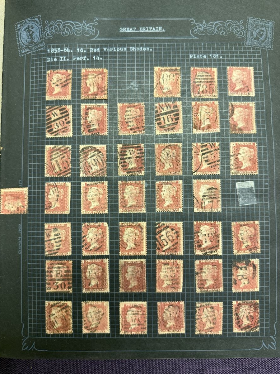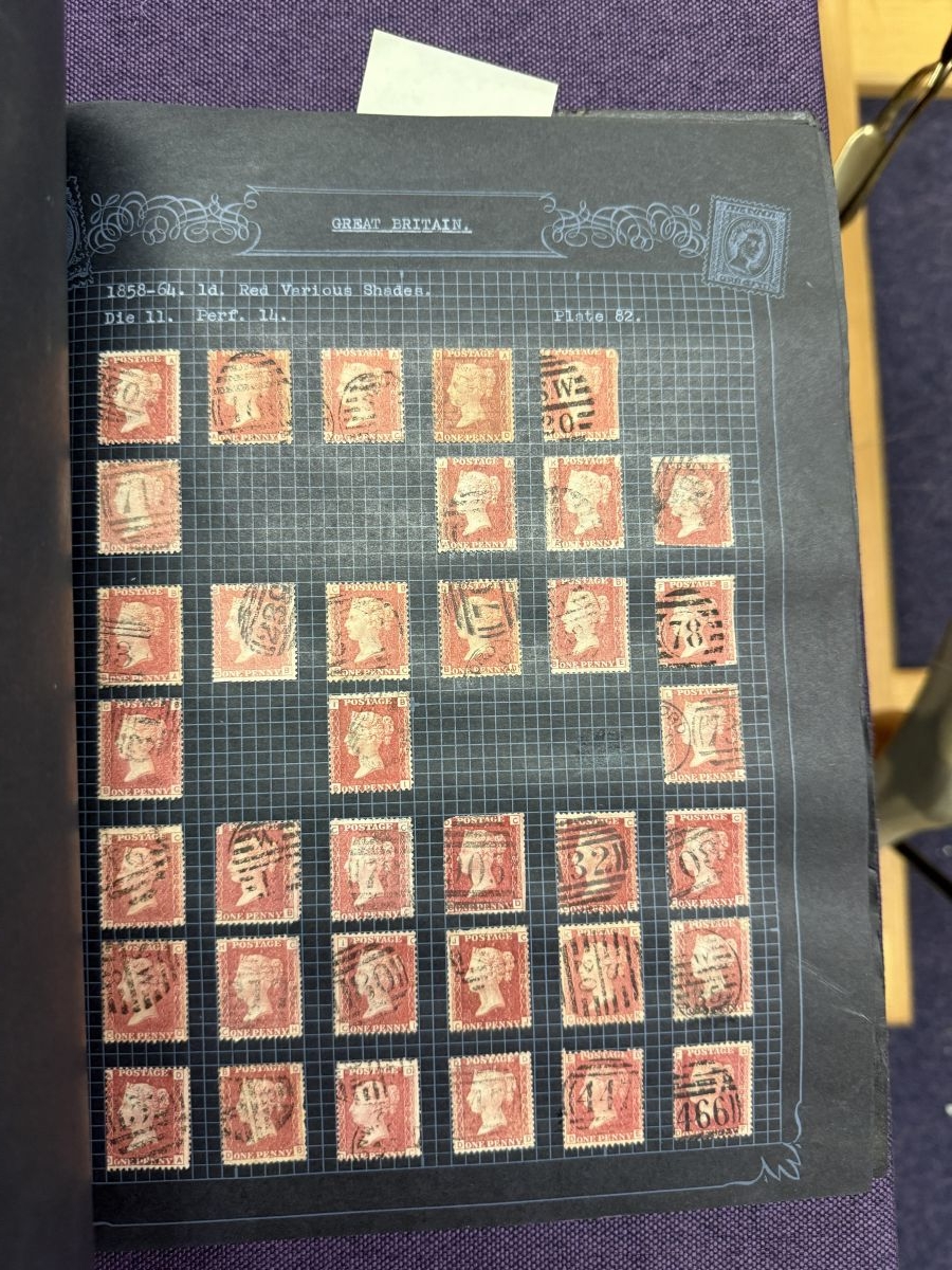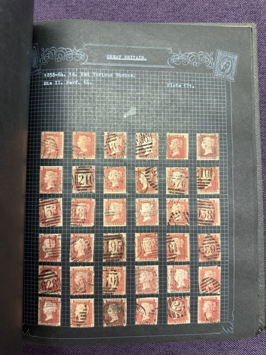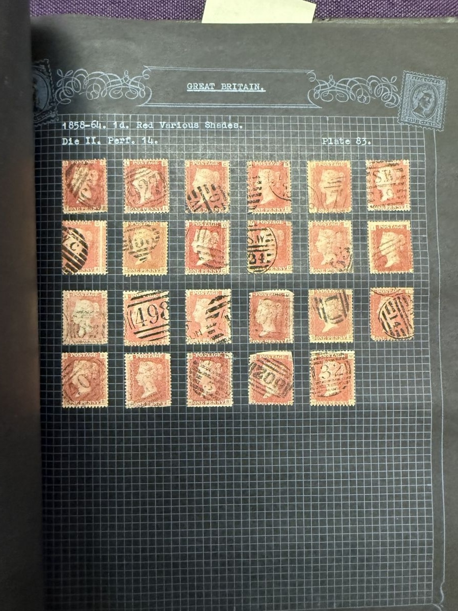 Great Britain. A valuable collection of 1d reds plates 71 to 225, in quantity, housed in four Barclay classic spring backs, and 2d blues. Including Plate 225 x 4.