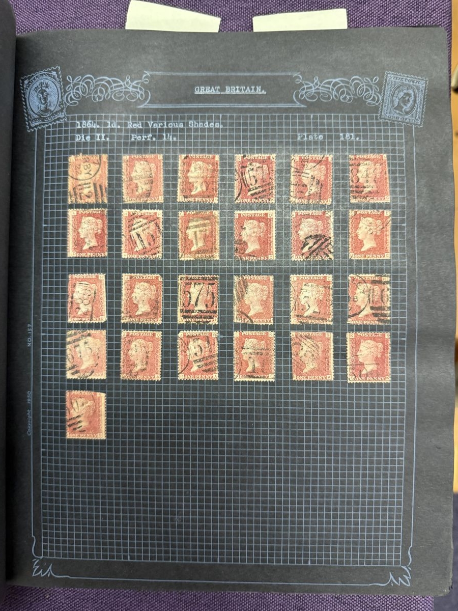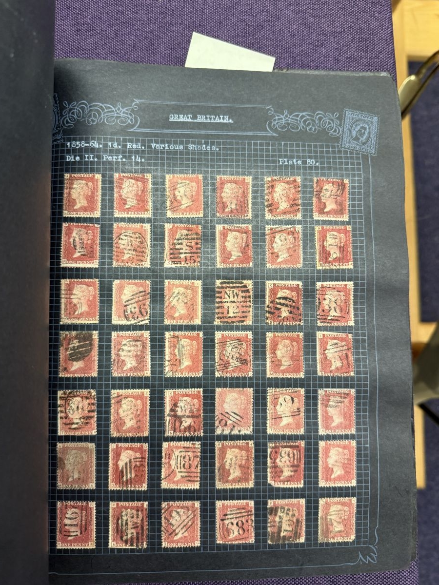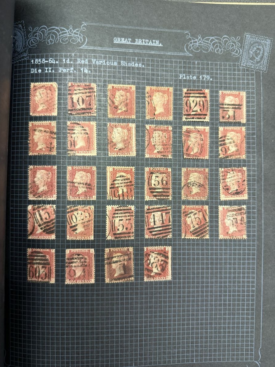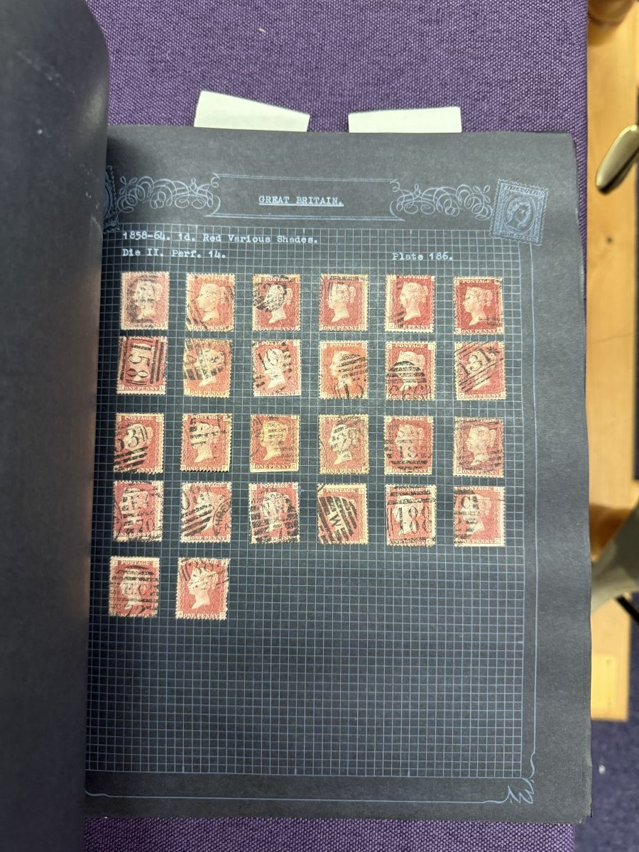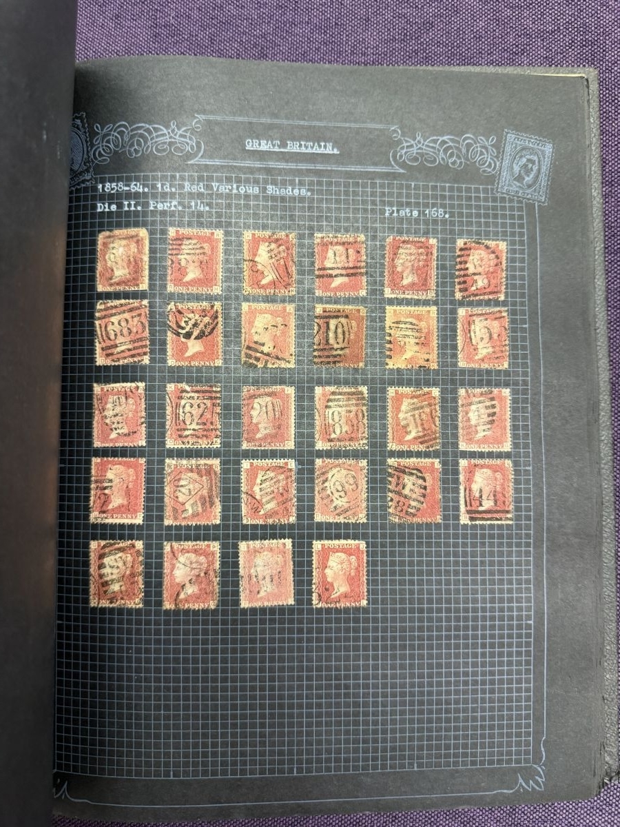 Great Britain. A valuable collection of 1d reds plates 71 to 225, in quantity, housed in four Barclay classic spring backs, and 2d blues. Including Plate 225 x 4.