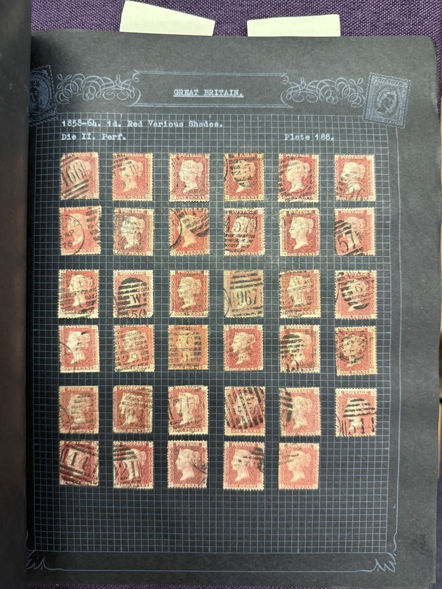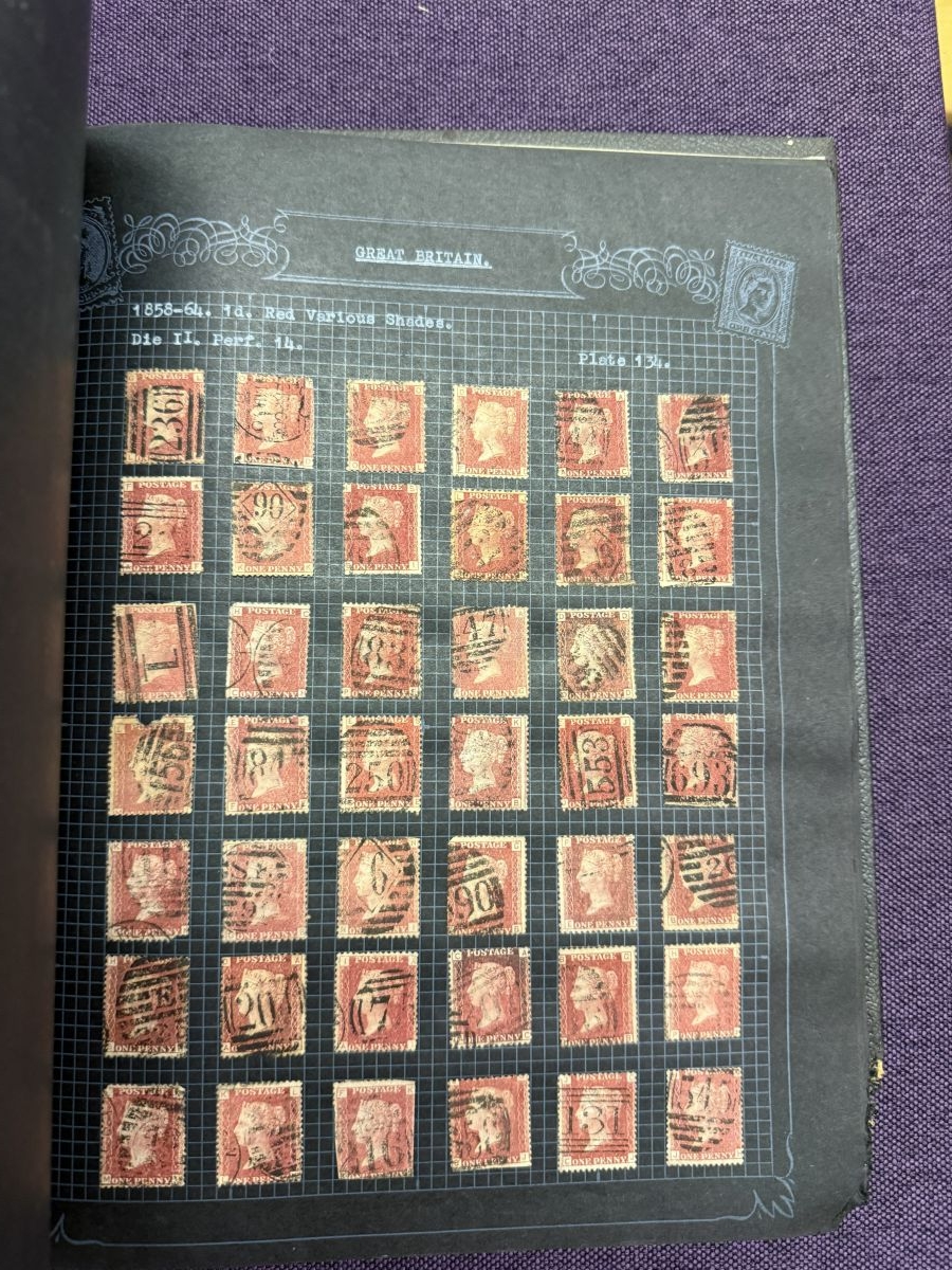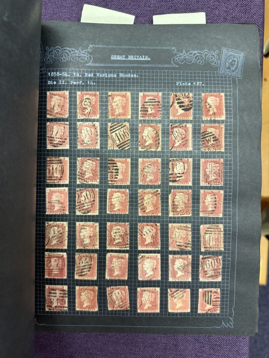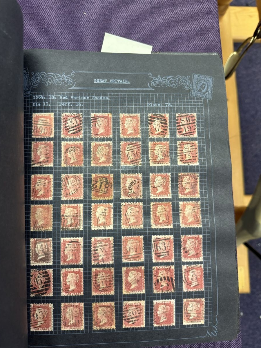 Great Britain. A valuable collection of 1d reds plates 71 to 225, in quantity, housed in four Barclay classic spring backs, and 2d blues. Including Plate 225 x 4.