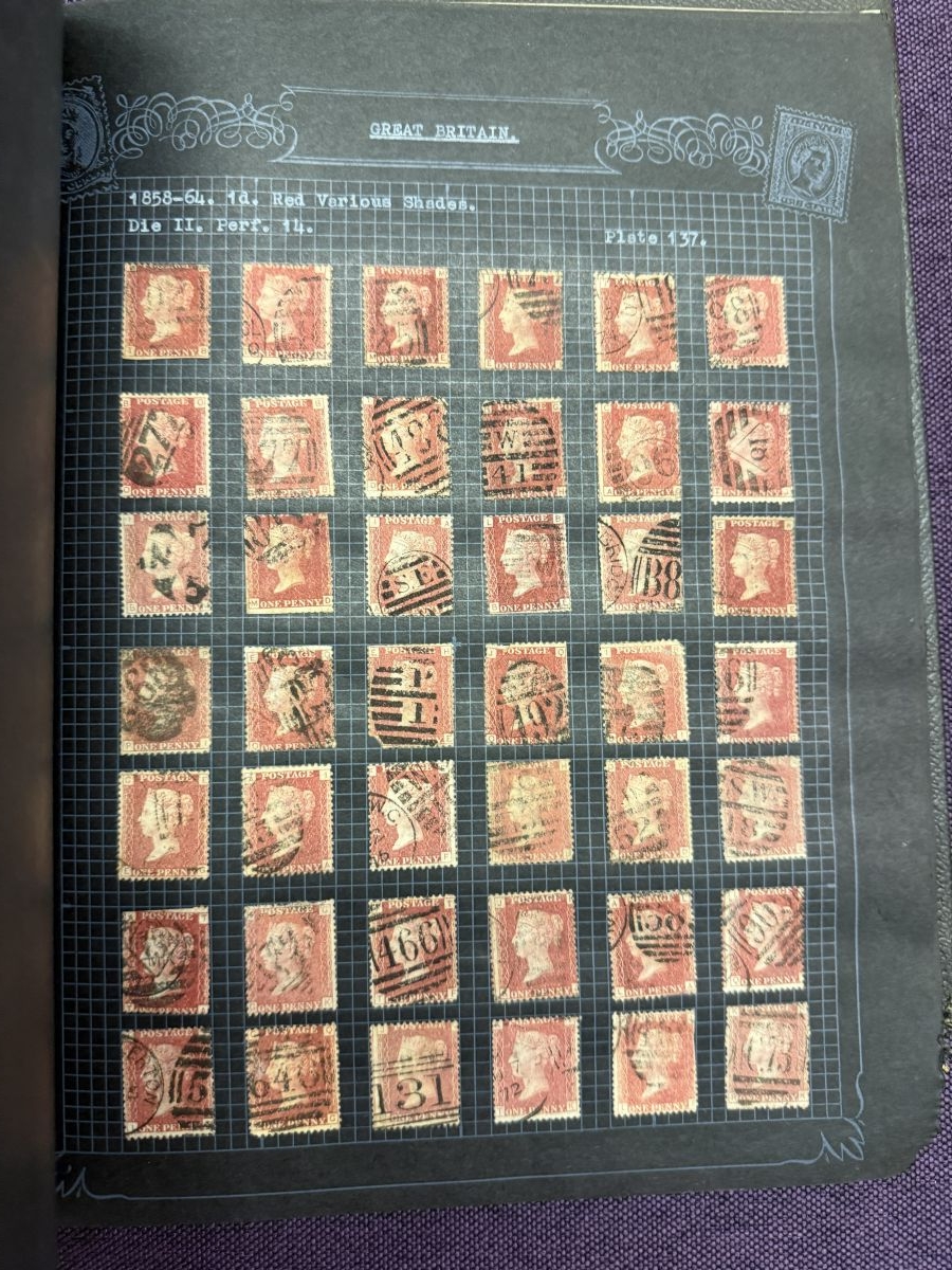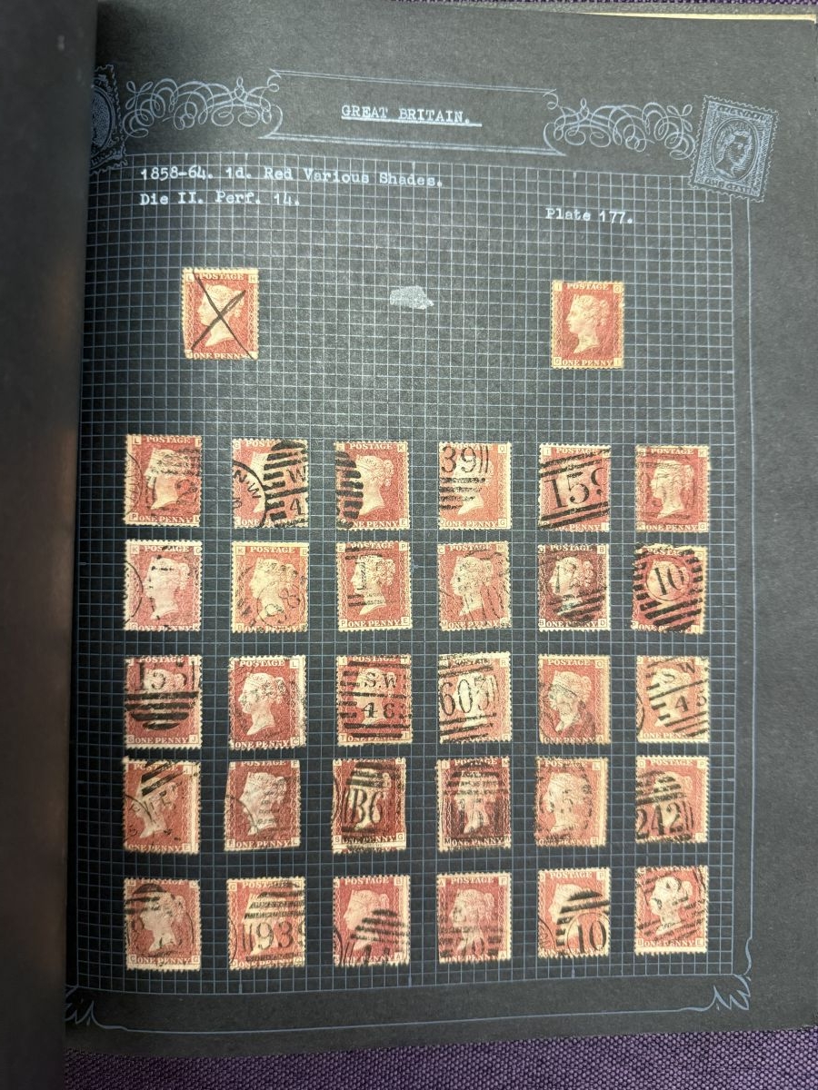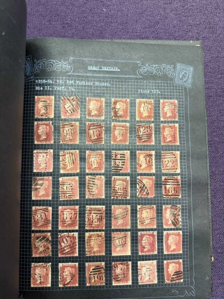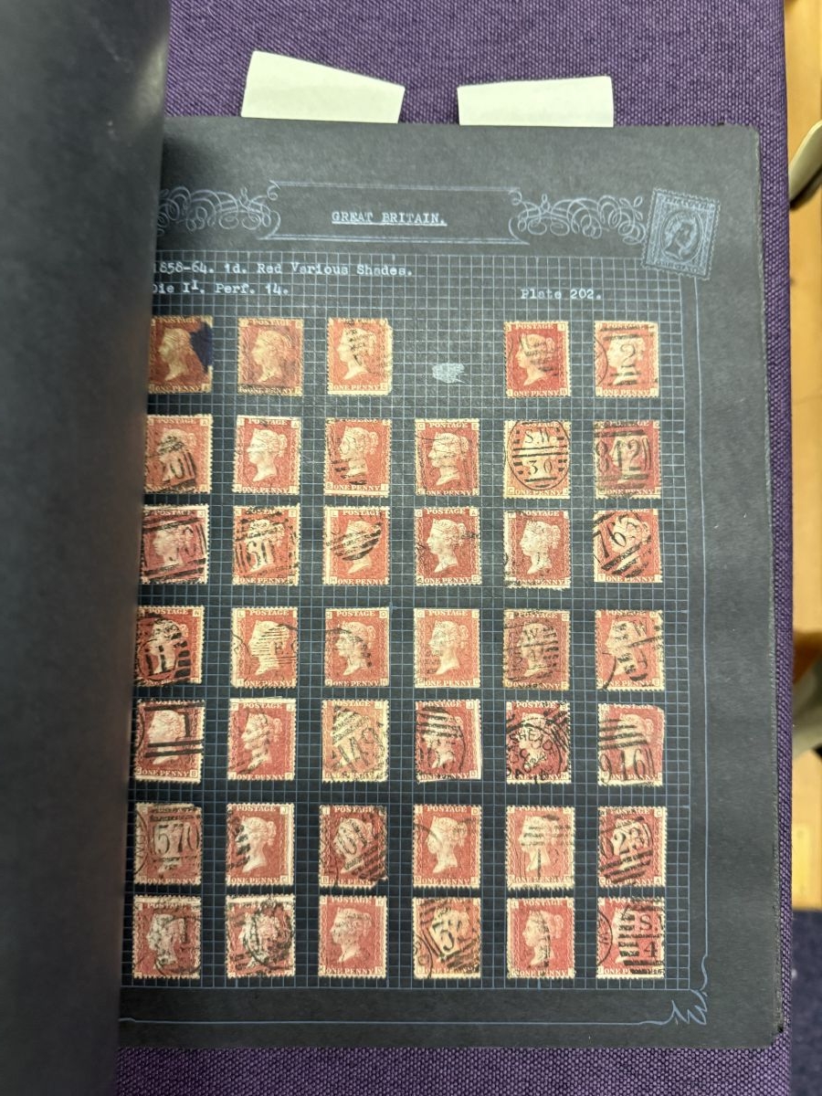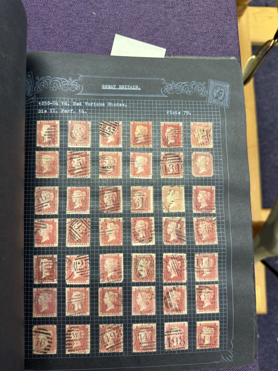 Great Britain. A valuable collection of 1d reds plates 71 to 225, in quantity, housed in four Barclay classic spring backs, and 2d blues. Including Plate 225 x 4.
