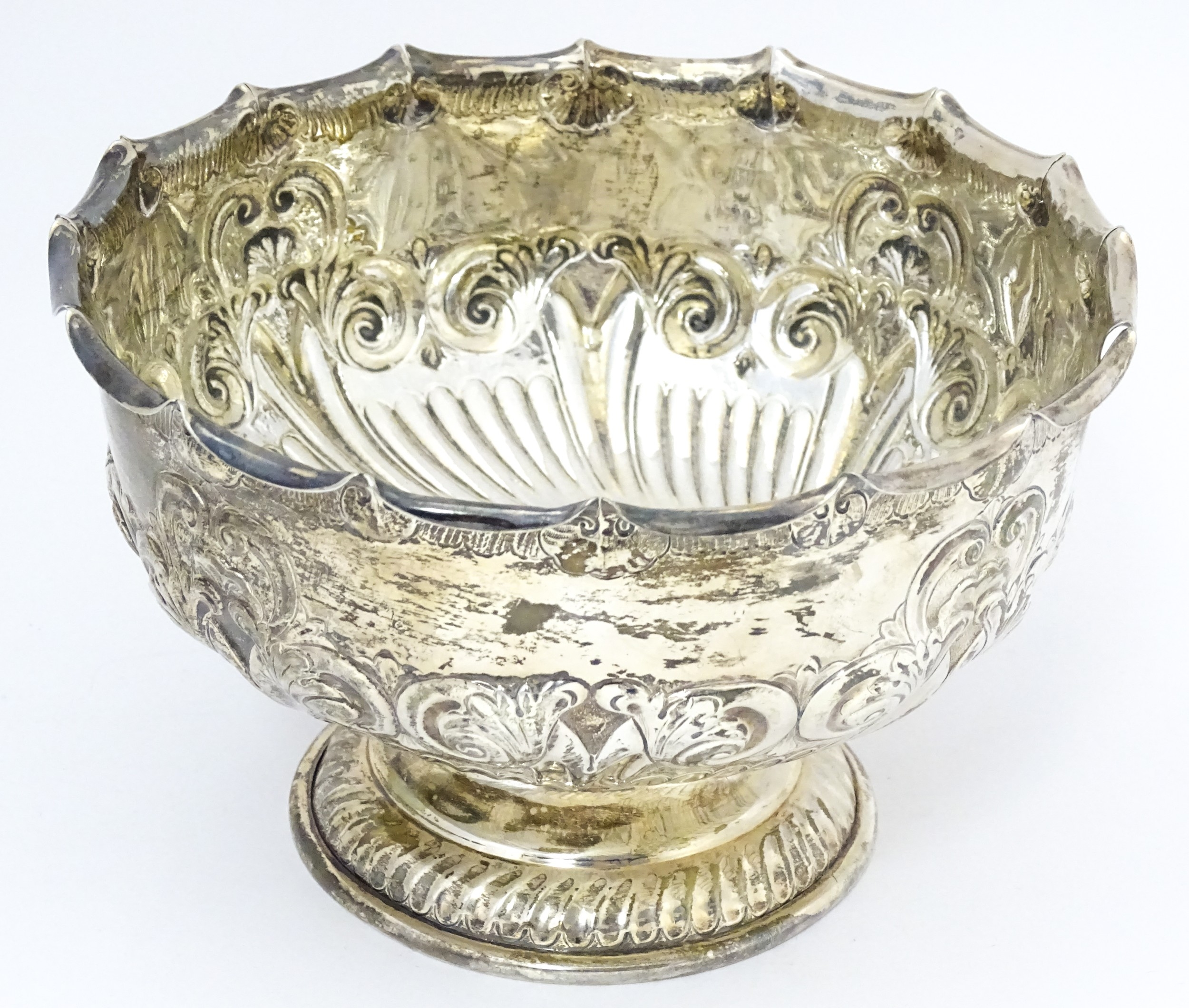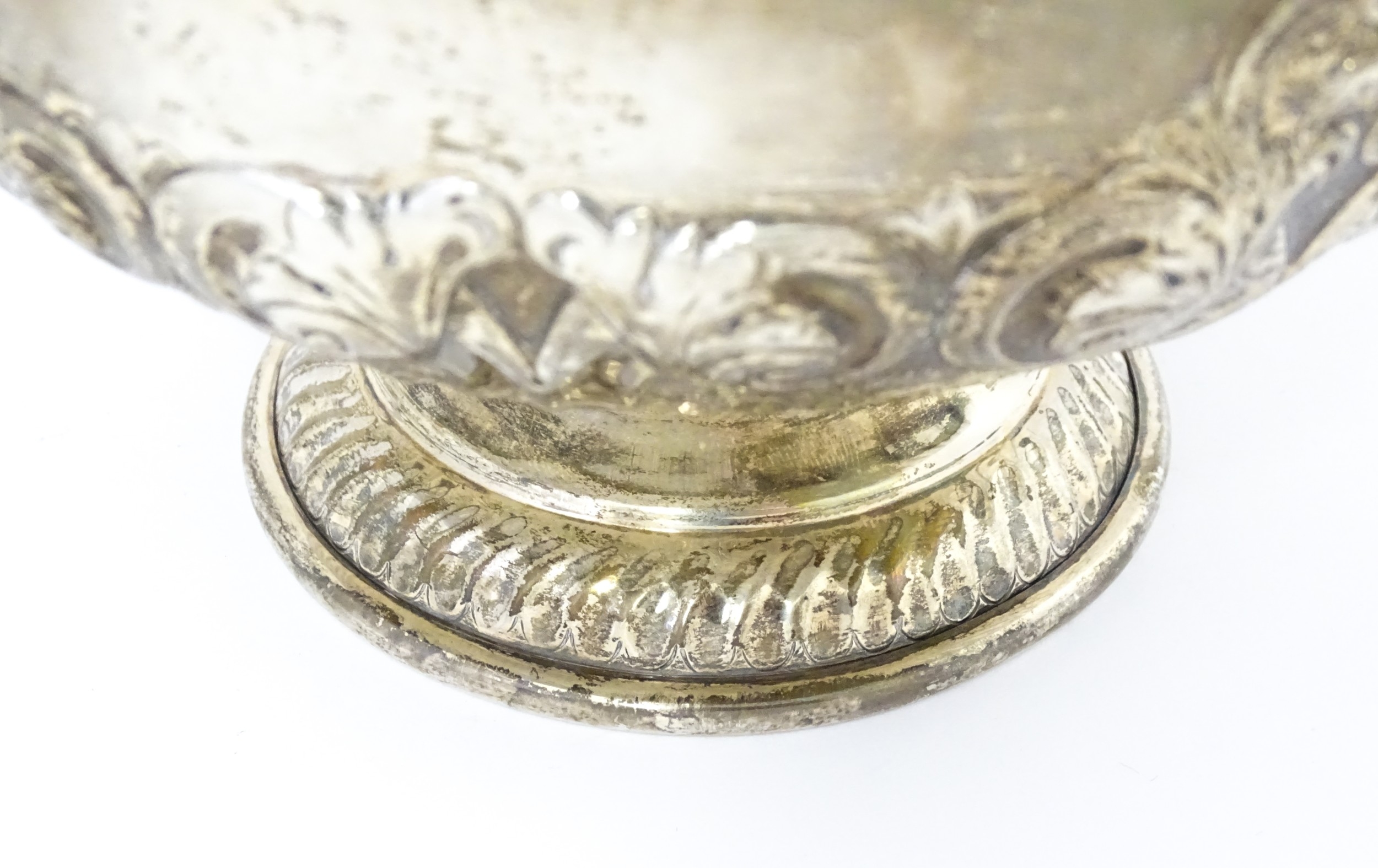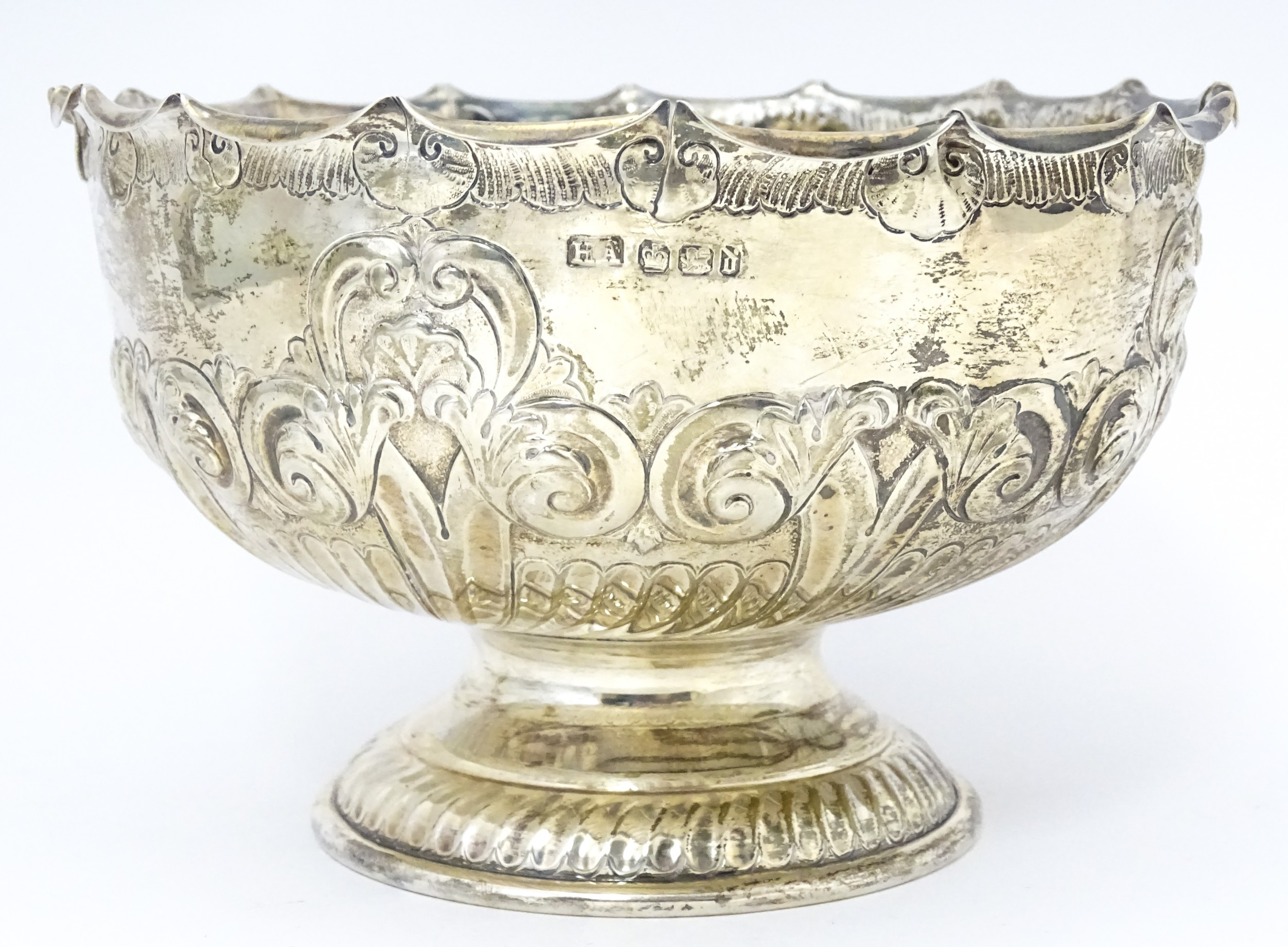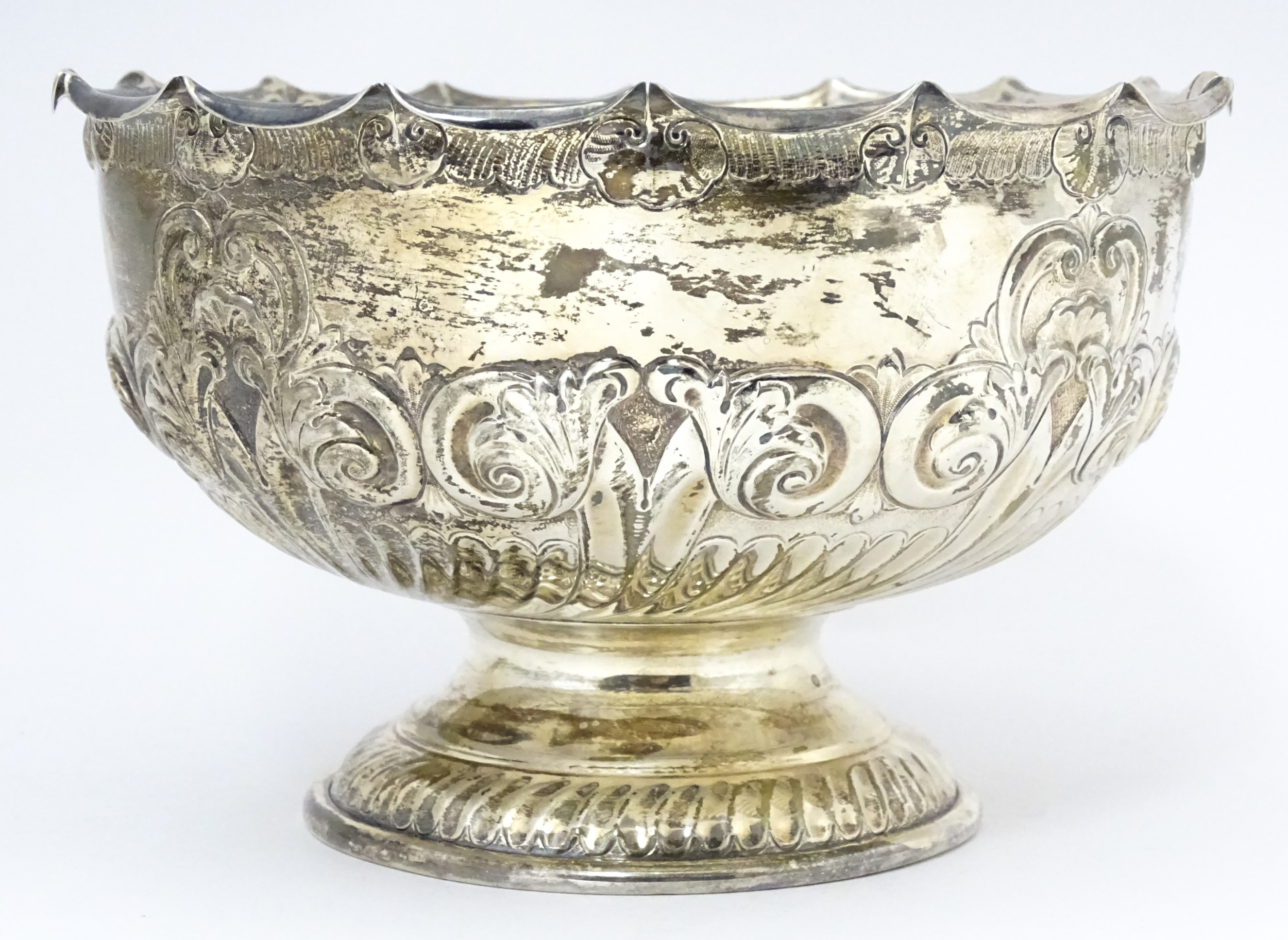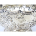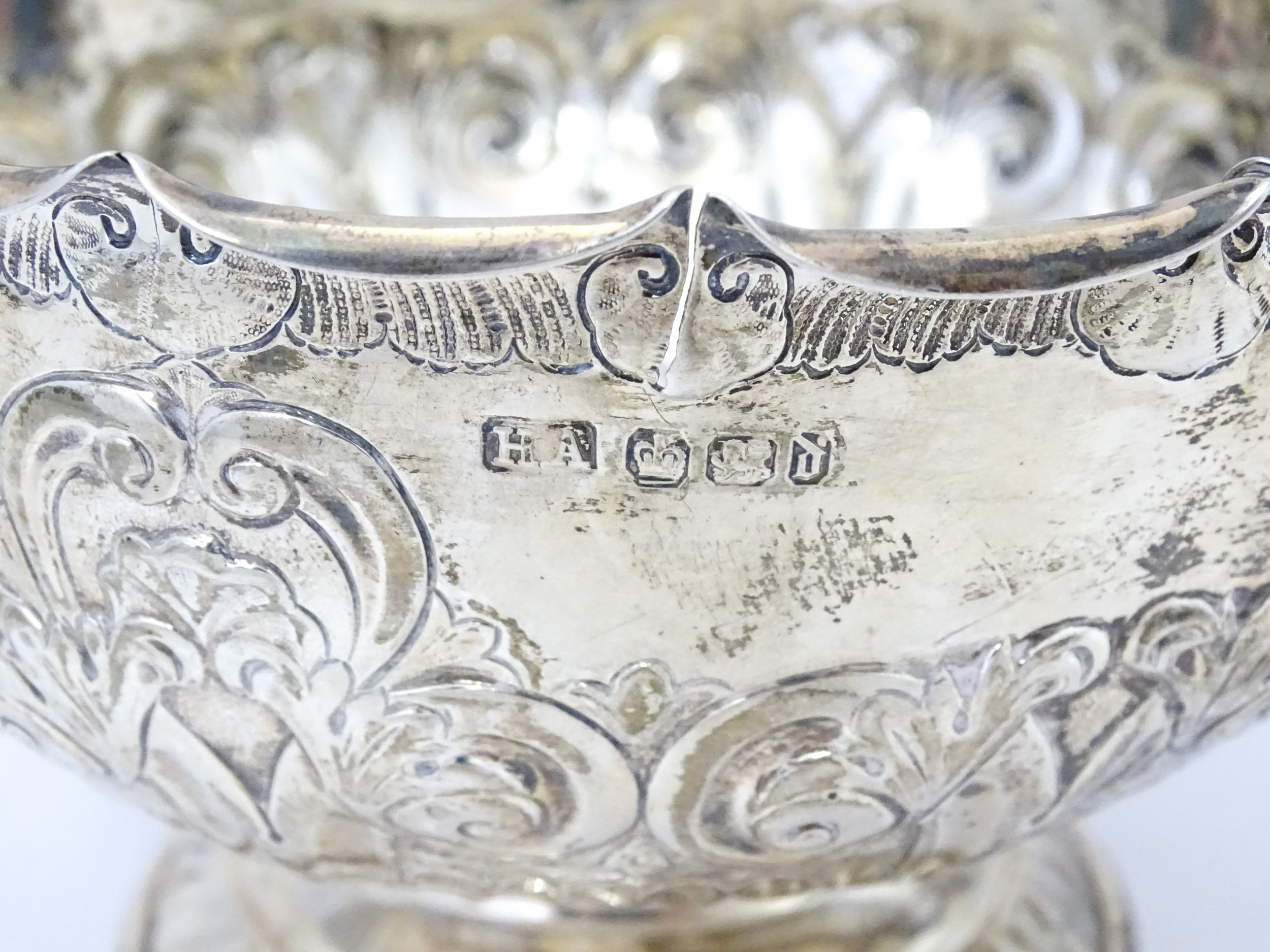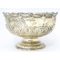 A Victorian silver pedestal bowl with embossed decoration, hallmarked Sheffield 1896, maker Atkin Brothers. Approx. 7" wide